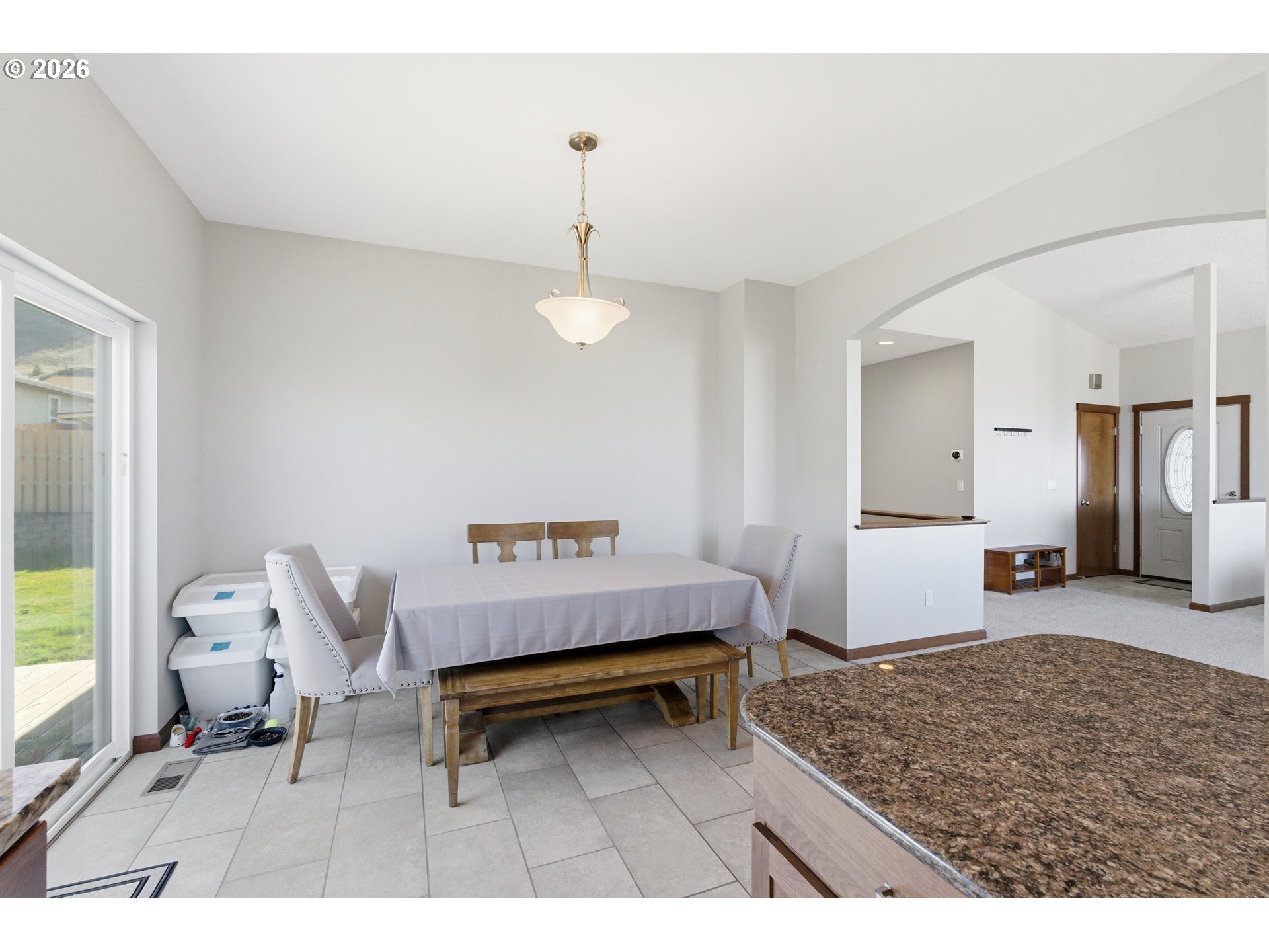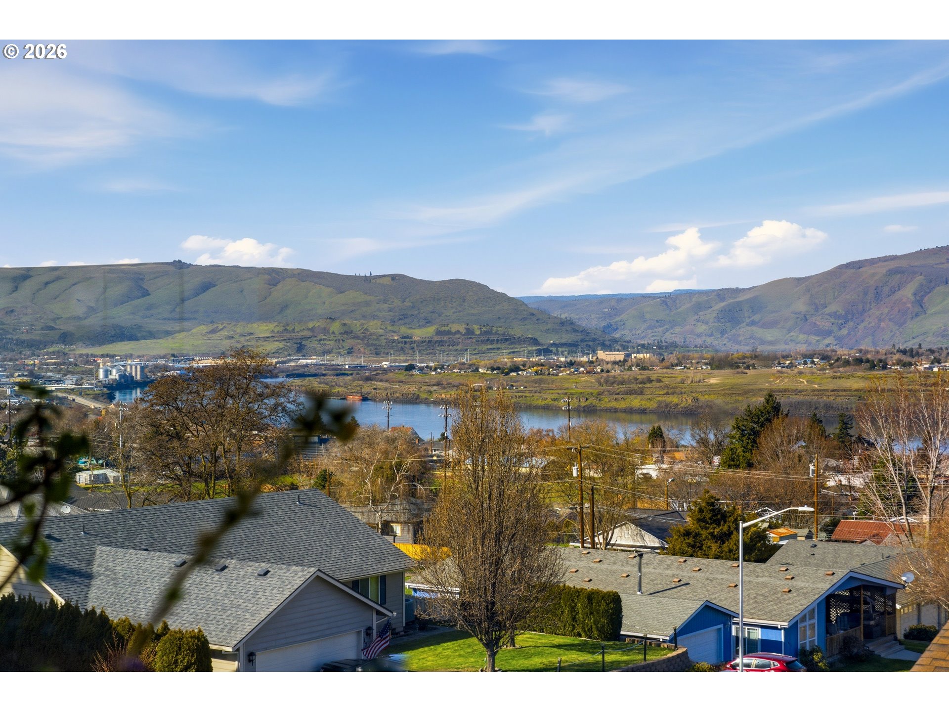 This thoughtfully designed 3-bedroom, 2.5-bath home offers elevated Columbia River and city light views from a quiet hillside setting in The Dalles. Built in 2019, the 2,202 square foot layout balances comfort and functionality, with a main-level living design that captures natural light and frames the surrounding landscape.Vaulted ceilings and expansive windows create an open, airy feel throughout the primary living spaces. The kitchen anchors the home with granite countertops, hickory cabinetry, pantry storage, and island seating — seamlessly connecting to the dining and living areas for both everyday living and effortless entertaining. The main-level primary suite provides a private retreat, complete with a walk-in closet and tiled bath.The daylight lower level expands the home’s versatility, offering a spacious bonus room and half bath ideal for a media space, home office, gym, or guest overflow. An oversized two-car garage provides additional storage and functionality.Outdoor living is equally inviting, with deck space positioned to take in river and valley views, along with a fenced backyard and irrigation for easy maintenance.Conveniently located near downtown amenities while maintaining a sense of elevation and privacy, this home blends scenic beauty, modern construction, and flexible living space in one of The Dalles’ most desirable settings.