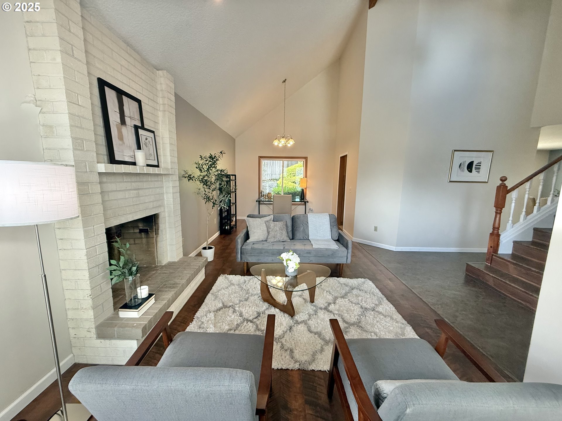 Nice 3-bedroom, 2.5-bath home offering 1,915 SQFT of comfortable living space. The inviting living room features soaring ceilings and a cozy fireplace, perfect for relaxing or entertaining. Enjoy cooking in the updated kitchen with Corian countertops. Upstairs, the spacious master suite features a vaulted ceiling and private bath with a double vanity. Two additional bedrooms are roomy and functional. Recent updates include a new roof, siding, and windows. Step outside to a nicely landscaped backyard—ideal for outdoor enjoyment. Move-in ready and full of charm!