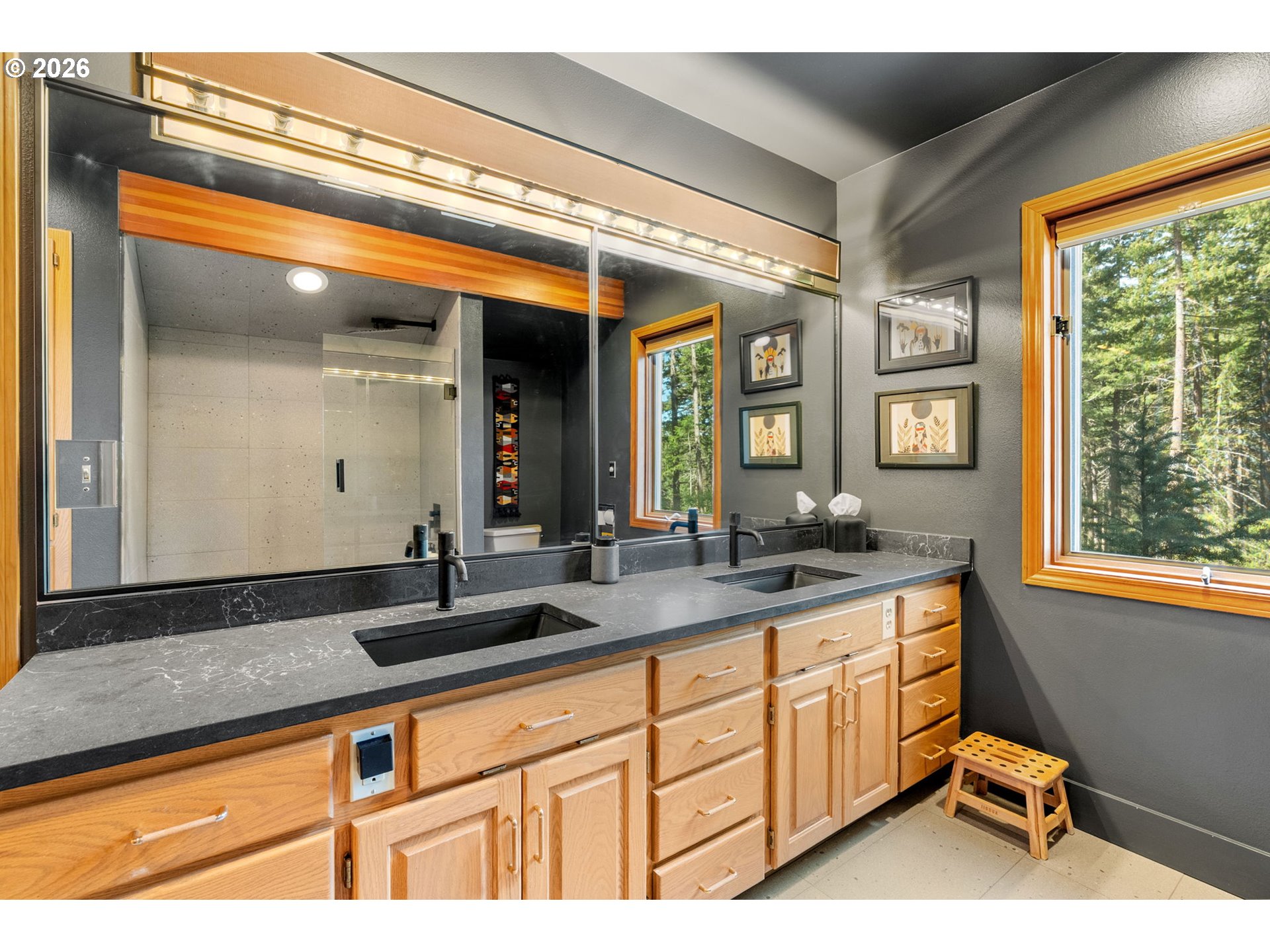 (503) 893-8874Indulge in nature, live in sophistication at this exceptional Paradise Ridge retreat. Set on a private, forested landscape with curated clearings and double mountain views of Mt. Adams and Mt. Hood, this 3,947 square foot residence offers 4 bedrooms and 2.5 bathrooms, blending refined design with the quiet beauty of the Columbia River Gorge. Extensive recent improvements elevate both form and function across the property. Inside, solid fir hardwood flooring creates warmth and continuity, complemented by custom wood accents and a fully reimagined interior. The kitchen has been thoughtfully opened and expanded, featuring premium surfaces including Dekton, honed granite, and quartz, along with high-end appliances designed for both performance and style. The main-level primary suite offers a spa-like experience with heated tile flooring and elevated finishes, while additional bathrooms and the laundry room have been tastefully updated. A custom fir and glass entry door makes a striking first impression, setting the tone for the craftsmanship found throughout. The indoor hot tub room is set within a light-filled solarium space, creating a unique year-round retreat. Outdoor living is equally intentional. The grounds have been enhanced with a resurfaced drive, expanded guest and RV parking, and improved drainage and landscaping. A private trail system winds through the property, leading to a peaceful fire pit setting and a newly installed pond, creating multiple spaces to relax, gather, and connect with the land. Extensive fire mitigation and forest stewardship work have been completed to improve long-term land health, while also opening up view corridors and enhancing the overall setting. This is a rare opportunity to own a meticulously improved property where natural beauty and thoughtful design come together seamlessly. Everyday living meets peaceful retreat here, with the option to purchase the neighboring 5-acre parcel for even more space and privacy (MLS 411556320).