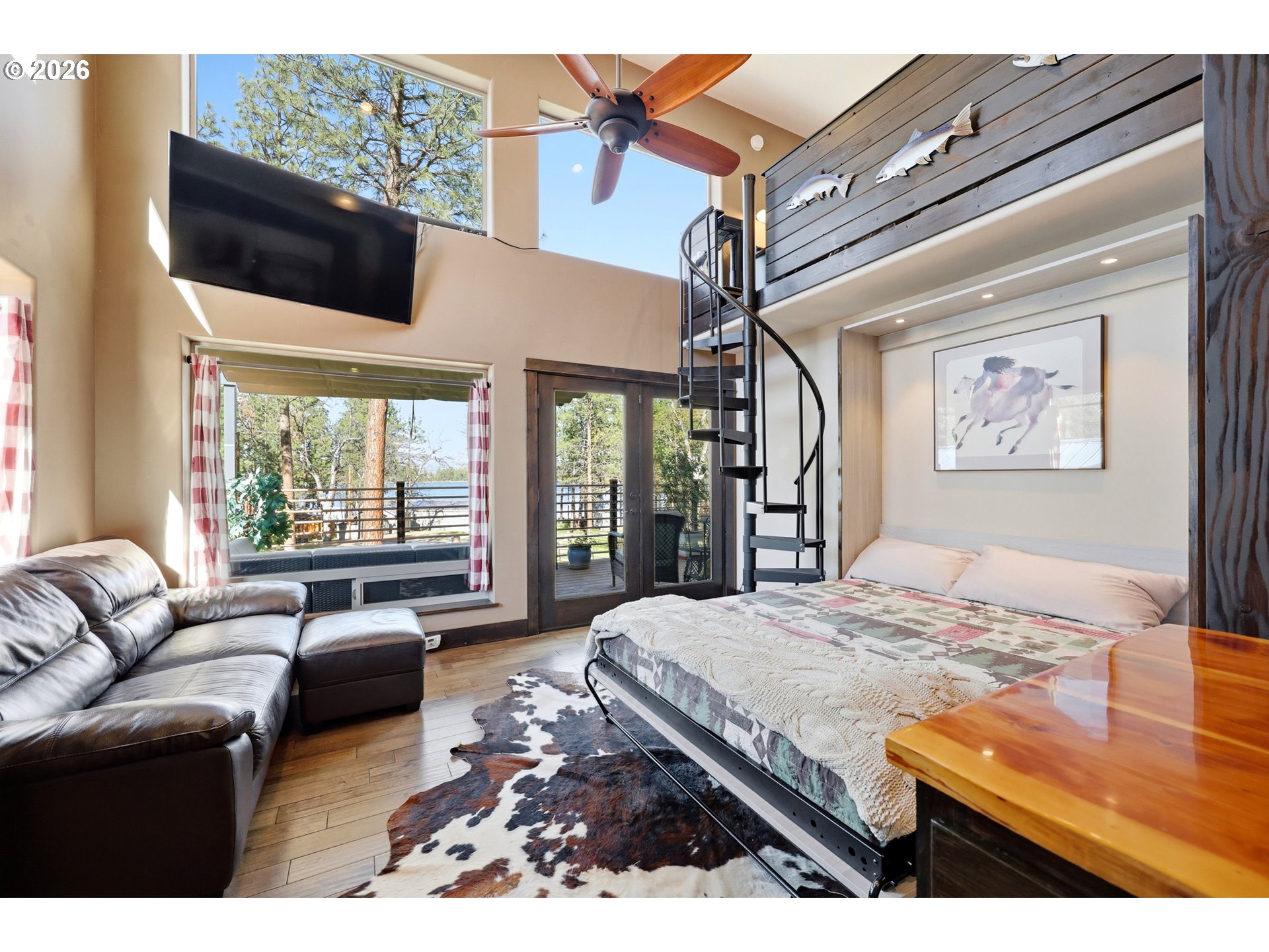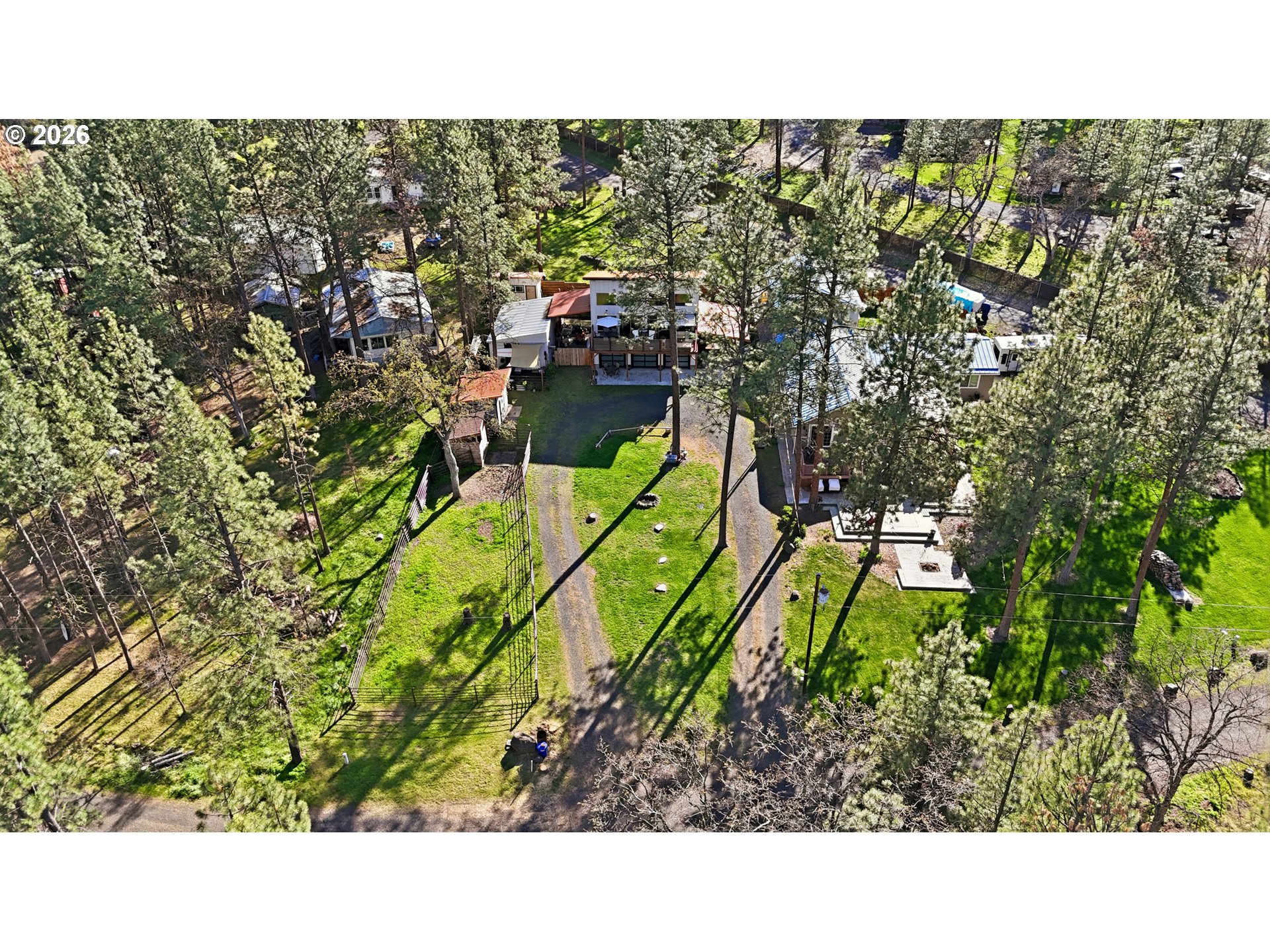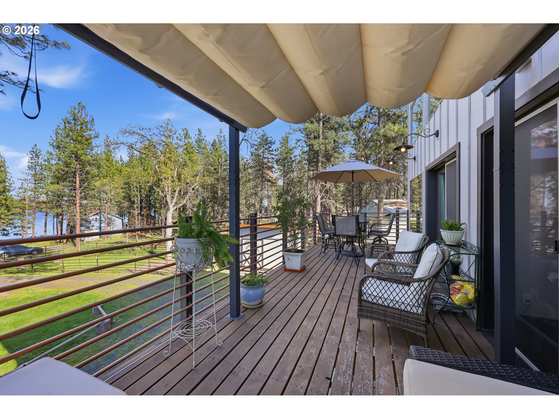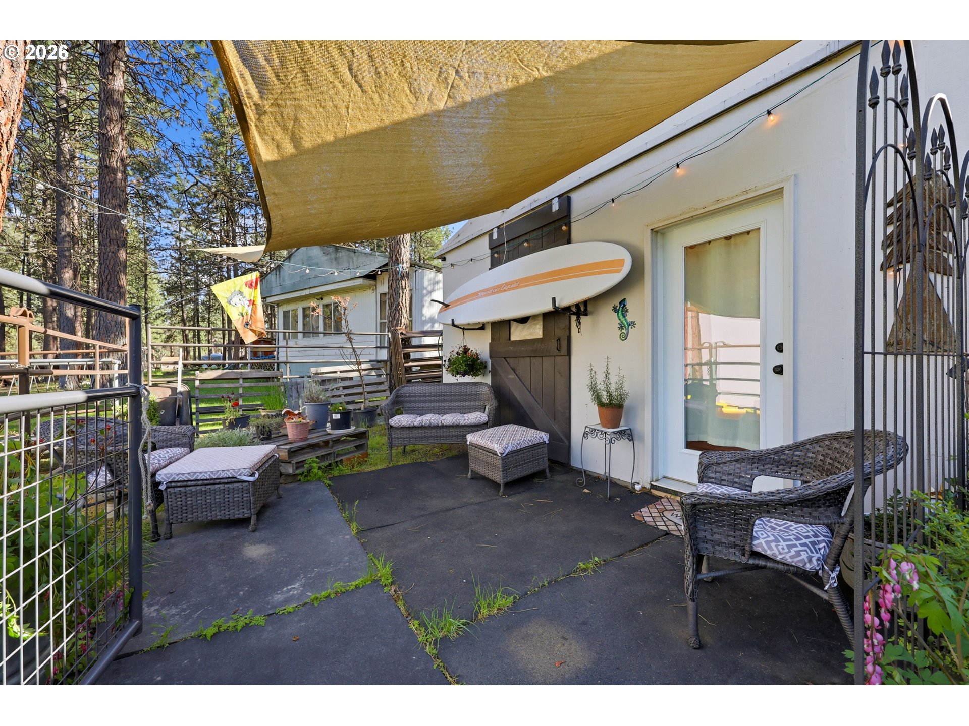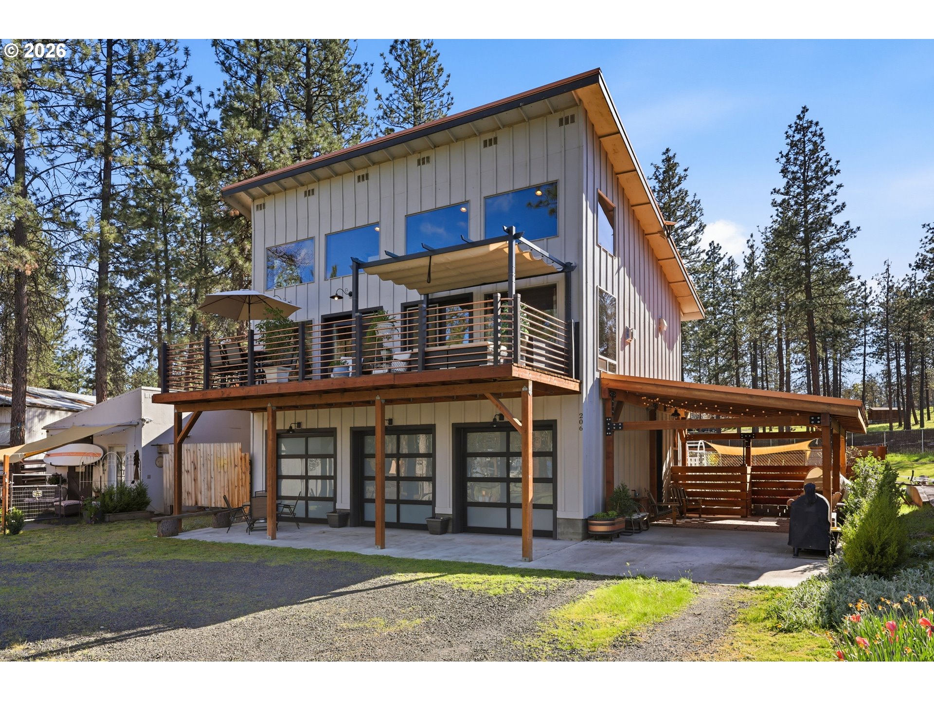 (503) 893-8874This unique property features a 2-bedroom (one is a loft style bedroom) home + smaller sleeping loft, along with a finished garage with a bedroom and a separate studio apartment, offering flexible living for guests or rental use. Not all bedrooms are conforming and/or legal. Your Pine Hollow retreat awaits! This could be your perfect full-time residence, vacation getaway, or income-producing dream property! Inside, you’ll find soaring 16-foot ceilings, expansive windows, and warm natural finishes that bring the outdoors in. Custom details include solid knotty alder doors and cabinetry, Douglas fir beams, juniper raw-edge countertops, and hammered copper sinks and soaking tub. The spacious bathroom features an oversized walk-in shower, and the loft bedrooms offer versatile spaces for an office, sleeping areas, or bonus rooms with views of the lake.French doors from both the living room and primary suite open to a 10' x 32' cedar deck balcony, perfect for morning coffee and evening stargazing. Outside, enjoy multiple covered sitting areas, a fenced yard with dog run, and established gardens with fruit trees, berries, herbs, and raised beds. There is also room for your horse with a paddock, covered stall, and nearby riding trails.The approximately 400 sq ft studio apartment includes a bathroom and adds great potential for guest space or income. Additional features include garage doors that open for indoor/outdoor entertaining, metal roofing, Hardie siding, Milgard windows, a new septic tank in 2021, updated appliances, and Starlink high-speed internet.Whether you're boating, fishing, hiking, or simply relaxing under the stars, this property delivers the Pine Hollow lifestyle. Live here year-round, enjoy it as a getaway, or generate income—this one has it all. ** Sq ft and room sizes include the main home, semi-finished garage, and detached studio, and were measured by a professional photographer **