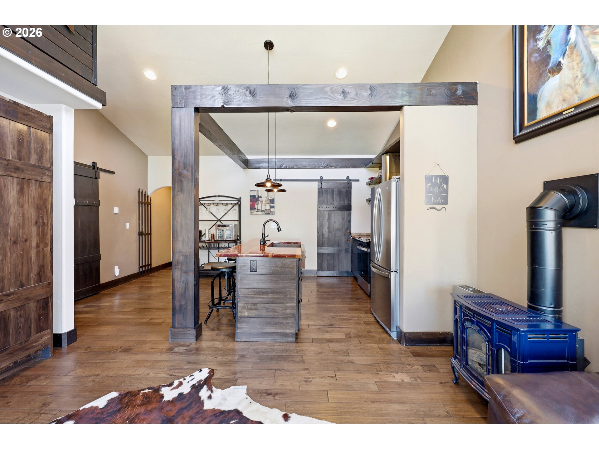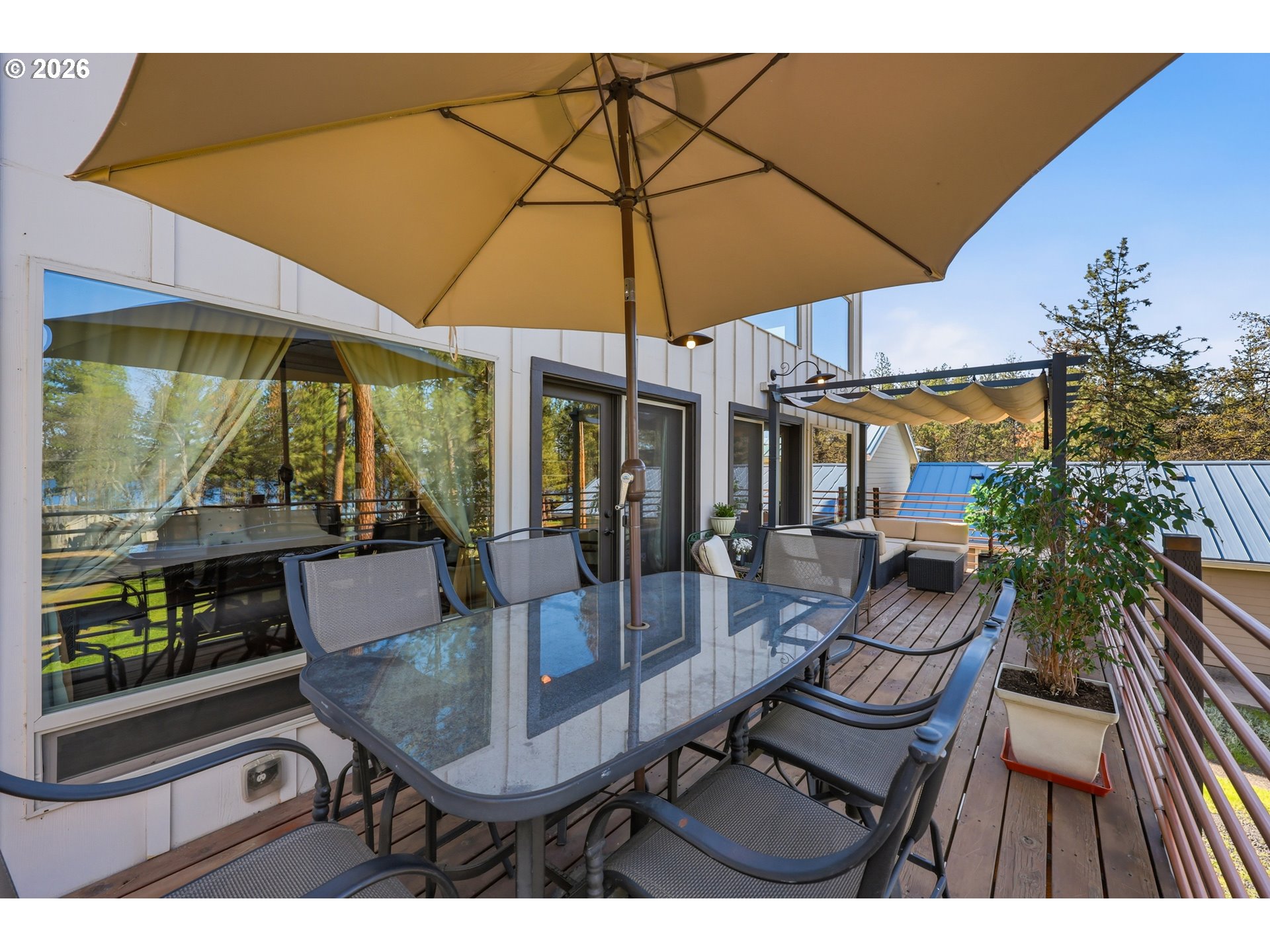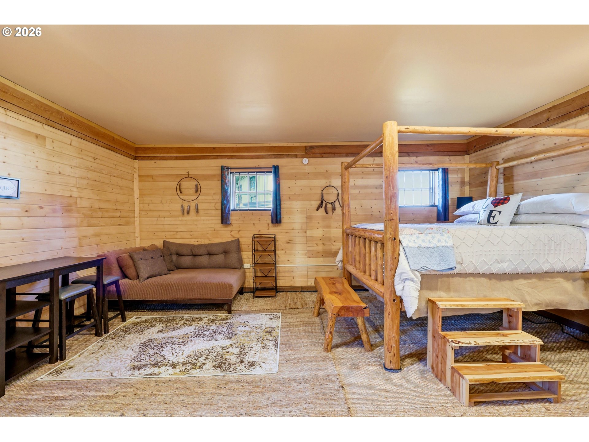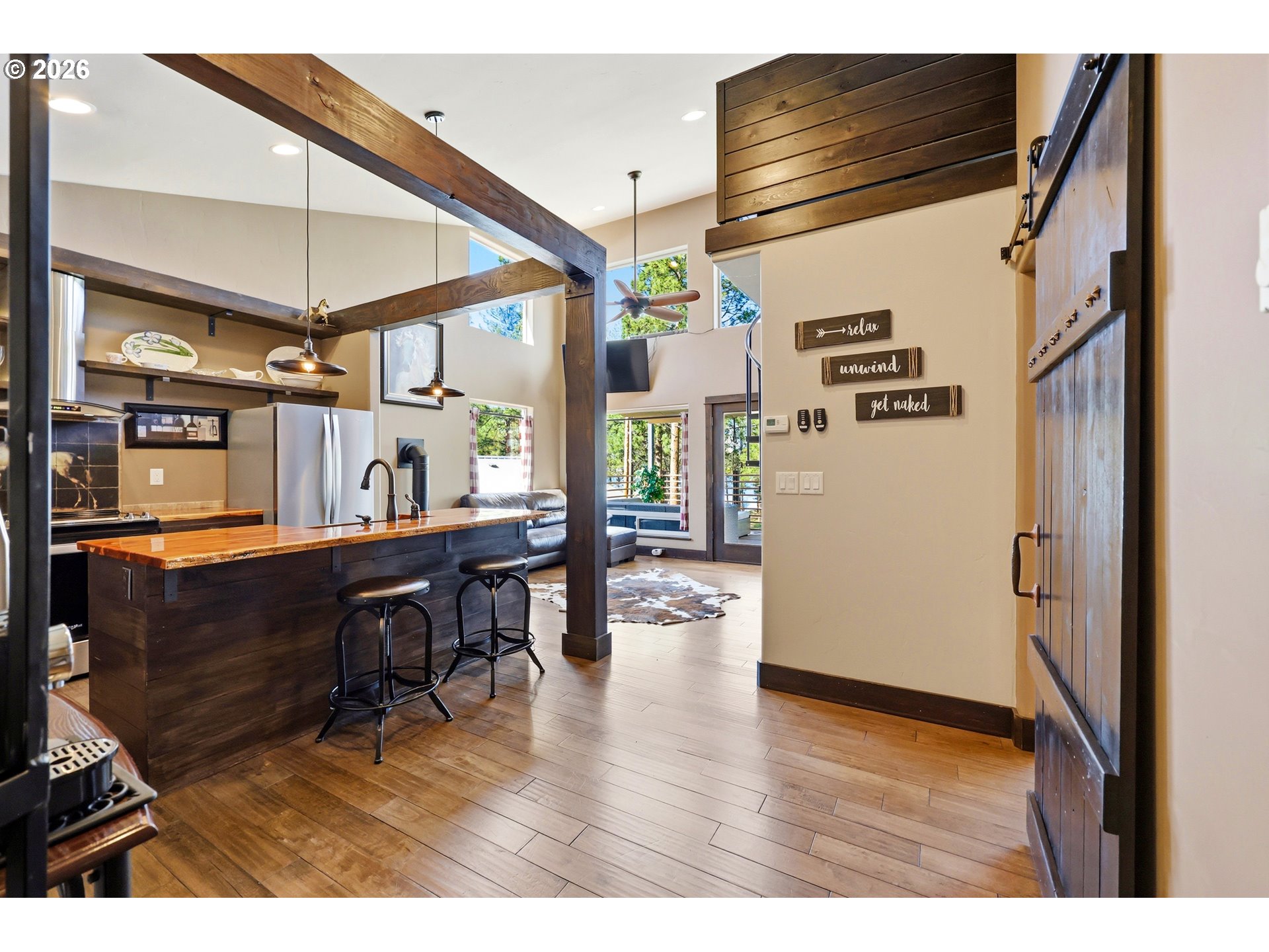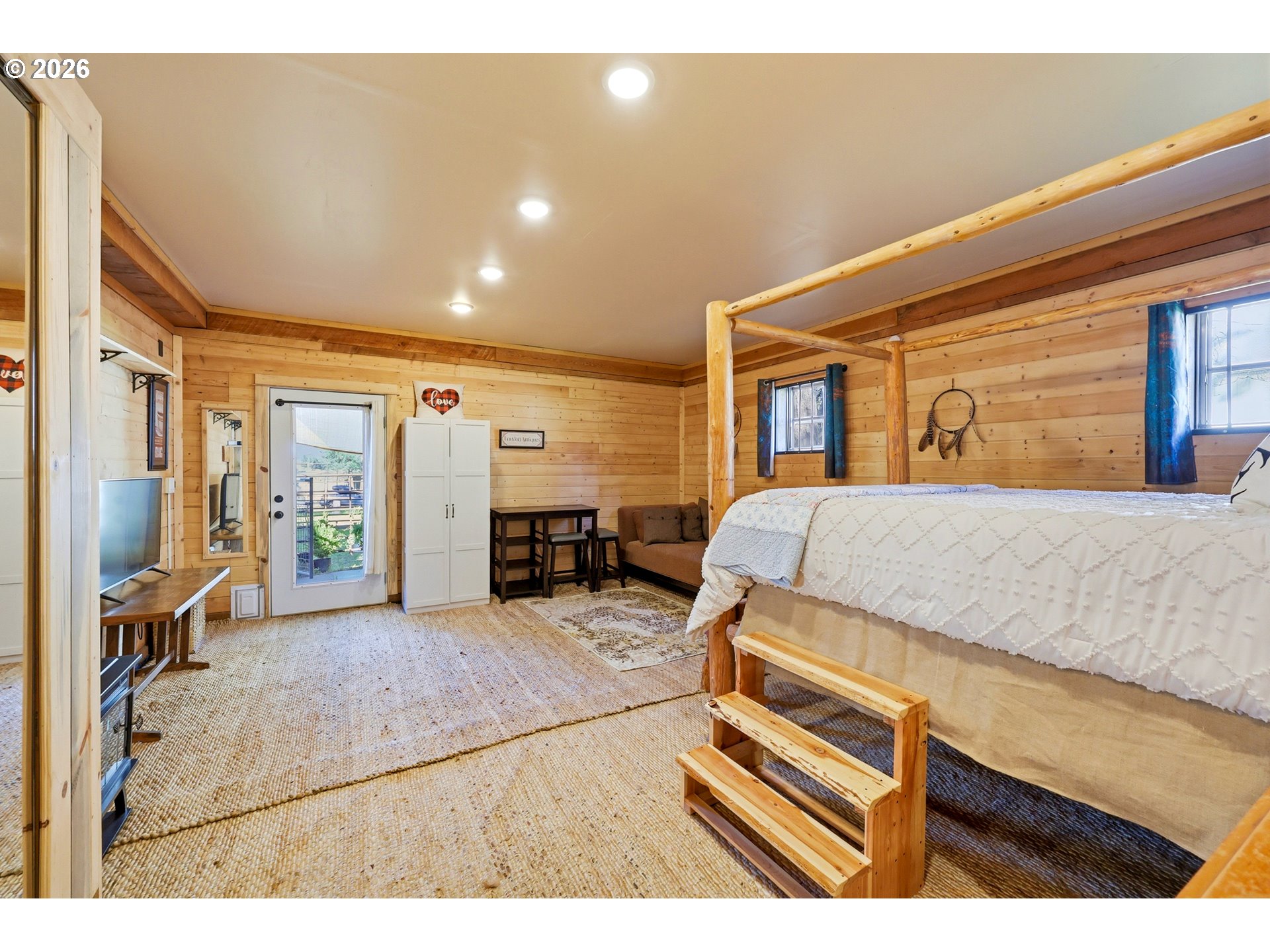 (503) 893-8874This unique property features a 2-bedroom (one is a loft style bedroom) home + smaller sleeping loft, along with a finished garage with a bedroom and a separate studio apartment, offering flexible living for guests or rental use. Not all bedrooms are conforming and/or legal. Your Pine Hollow retreat awaits! This could be your perfect full-time residence, vacation getaway, or income-producing dream property! Inside, you’ll find soaring 16-foot ceilings, expansive windows, and warm natural finishes that bring the outdoors in. Custom details include solid knotty alder doors and cabinetry, Douglas fir beams, juniper raw-edge countertops, and hammered copper sinks and soaking tub. The spacious bathroom features an oversized walk-in shower, and the loft bedrooms offer versatile spaces for an office, sleeping areas, or bonus rooms with views of the lake.French doors from both the living room and primary suite open to a 10' x 32' cedar deck balcony, perfect for morning coffee and evening stargazing. Outside, enjoy multiple covered sitting areas, a fenced yard with dog run, and established gardens with fruit trees, berries, herbs, and raised beds. There is also room for your horse with a paddock, covered stall, and nearby riding trails.The approximately 400 sq ft studio apartment includes a bathroom and adds great potential for guest space or income. Additional features include garage doors that open for indoor/outdoor entertaining, metal roofing, Hardie siding, Milgard windows, a new septic tank in 2021, updated appliances, and Starlink high-speed internet.Whether you're boating, fishing, hiking, or simply relaxing under the stars, this property delivers the Pine Hollow lifestyle. Live here year-round, enjoy it as a getaway, or generate income—this one has it all. ** Sq ft and room sizes include the main home, semi-finished garage, and detached studio, and were measured by a professional photographer **