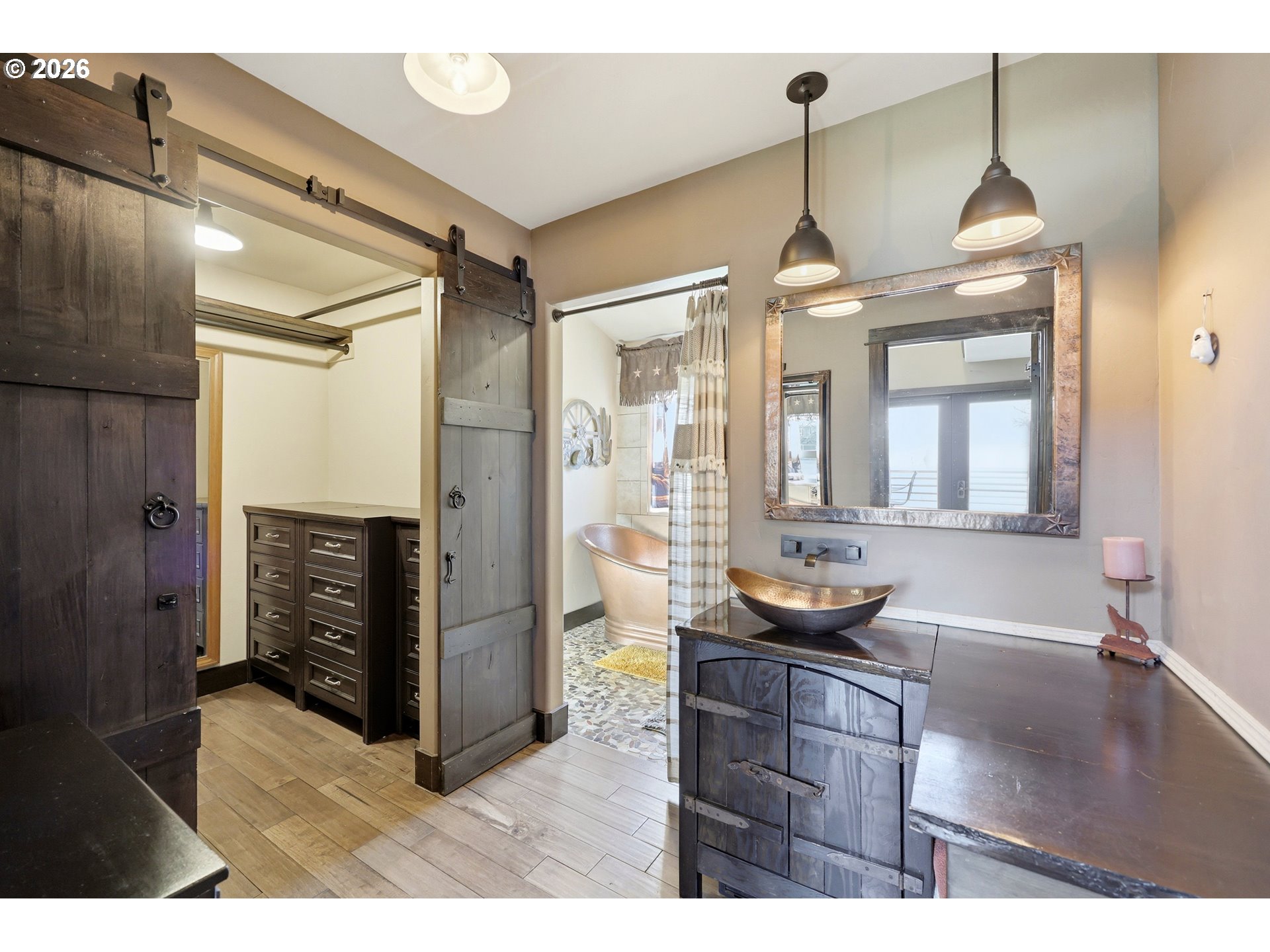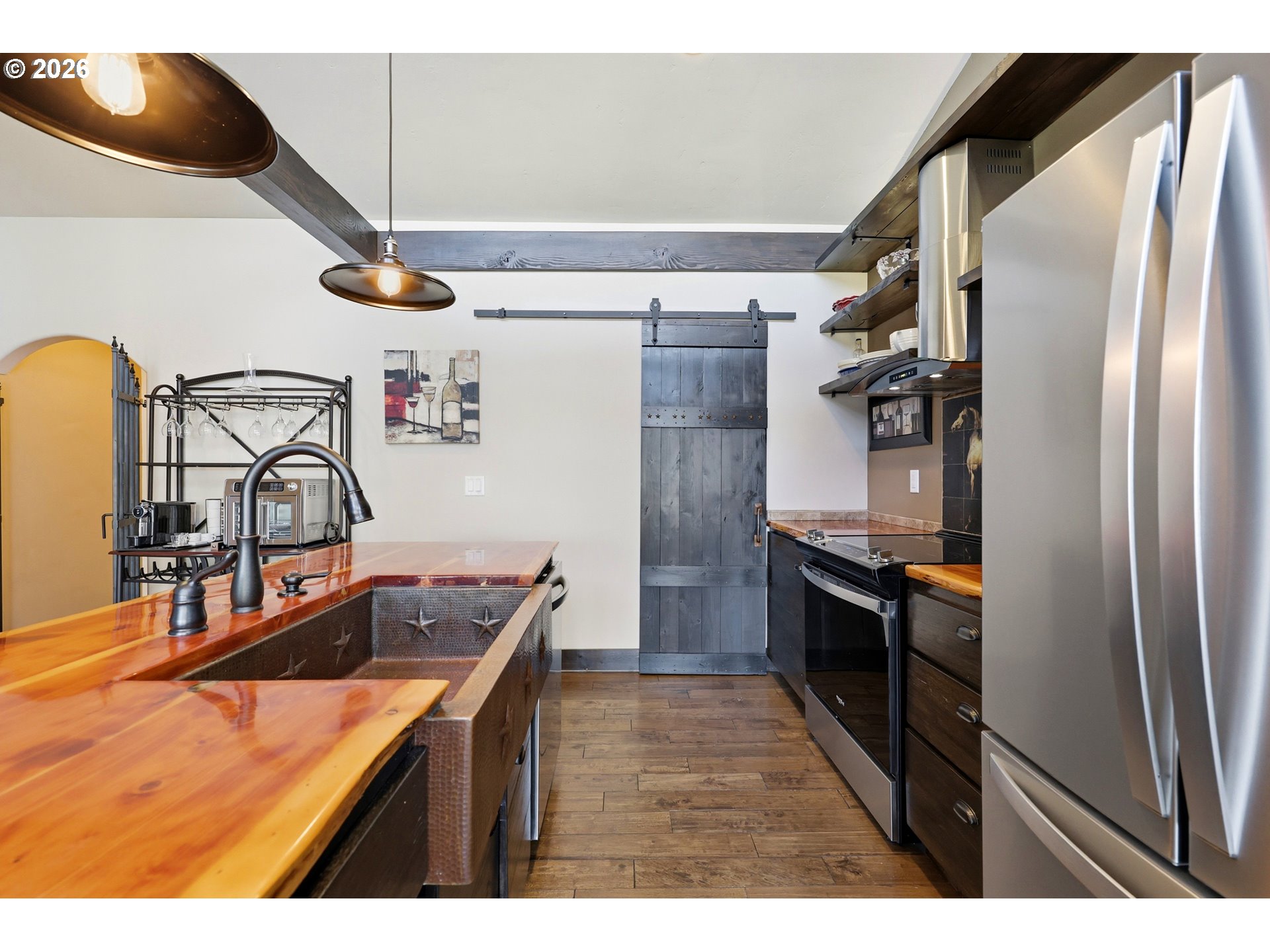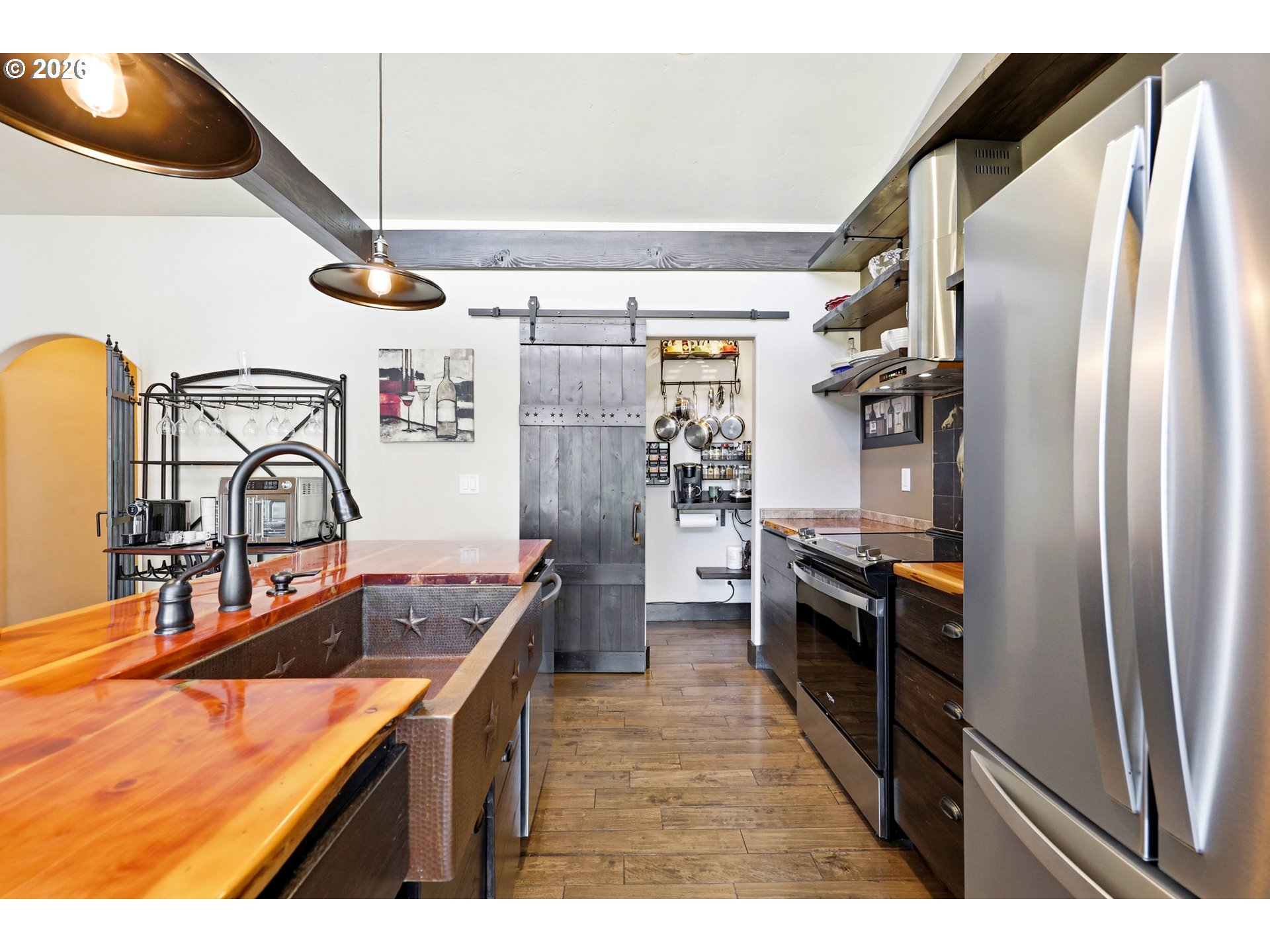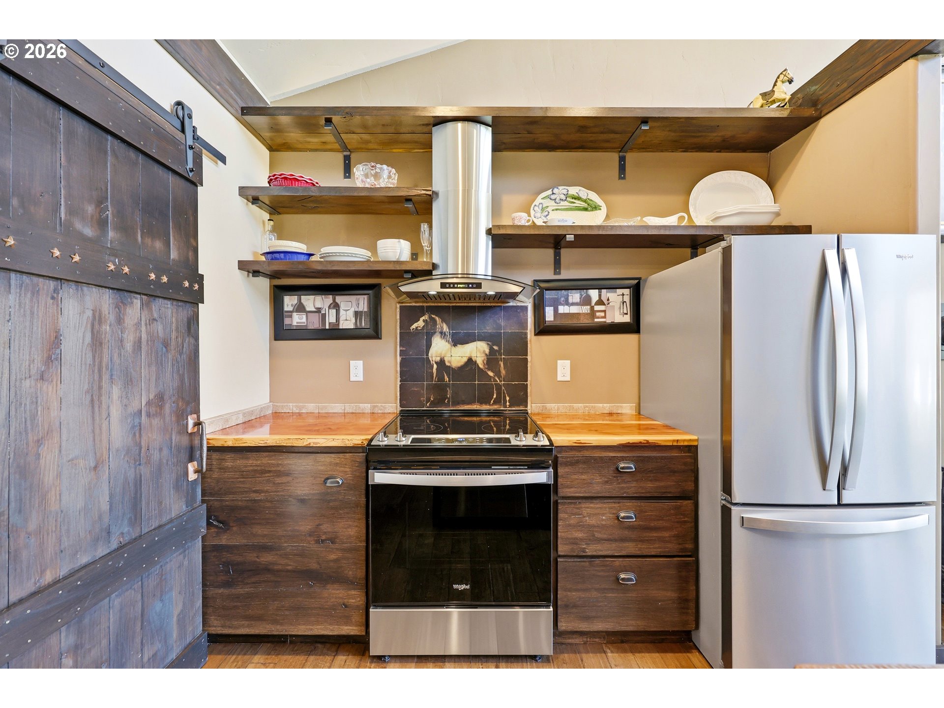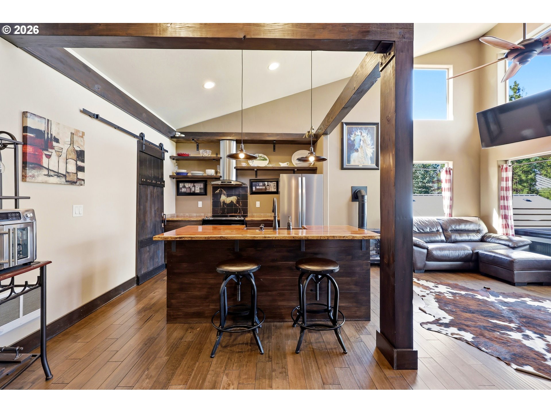 (503) 893-8874This unique property features a 2-bedroom (one is a loft style bedroom) home + smaller sleeping loft, along with a finished garage with a bedroom and a separate studio apartment, offering flexible living for guests or rental use. Not all bedrooms are conforming and/or legal. Your Pine Hollow retreat awaits! This could be your perfect full-time residence, vacation getaway, or income-producing dream property! Inside, you’ll find soaring 16-foot ceilings, expansive windows, and warm natural finishes that bring the outdoors in. Custom details include solid knotty alder doors and cabinetry, Douglas fir beams, juniper raw-edge countertops, and hammered copper sinks and soaking tub. The spacious bathroom features an oversized walk-in shower, and the loft bedrooms offer versatile spaces for an office, sleeping areas, or bonus rooms with views of the lake.French doors from both the living room and primary suite open to a 10' x 32' cedar deck balcony, perfect for morning coffee and evening stargazing. Outside, enjoy multiple covered sitting areas, a fenced yard with dog run, and established gardens with fruit trees, berries, herbs, and raised beds. There is also room for your horse with a paddock, covered stall, and nearby riding trails.The approximately 400 sq ft studio apartment includes a bathroom and adds great potential for guest space or income. Additional features include garage doors that open for indoor/outdoor entertaining, metal roofing, Hardie siding, Milgard windows, a new septic tank in 2021, updated appliances, and Starlink high-speed internet.Whether you're boating, fishing, hiking, or simply relaxing under the stars, this property delivers the Pine Hollow lifestyle. Live here year-round, enjoy it as a getaway, or generate income—this one has it all. ** Sq ft and room sizes include the main home, semi-finished garage, and detached studio, and were measured by a professional photographer **