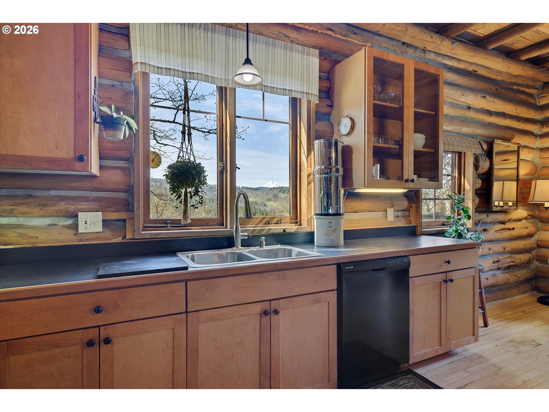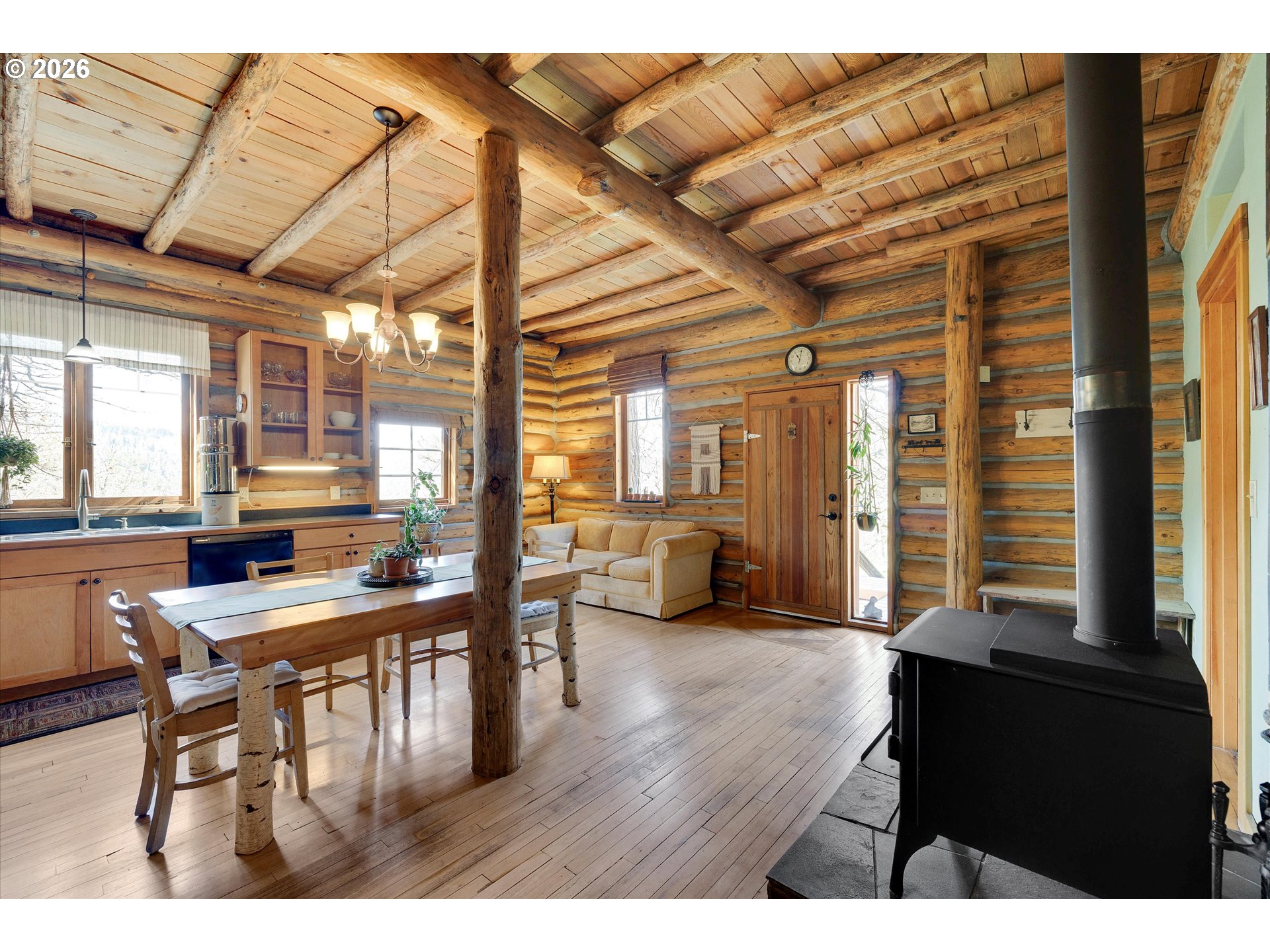 (503) 893-8874If you are looking for a private, lovingly built retreat just 10 minutes from Mosier town, with easy access, this full time or vacation home would be ideal! This charming log home features wood floors on the main, a 1/2 bath, laundry and storage with 3 bedrooms plus a full bath up. Beautiful Mt. Hood views from the kitchen window and decks! The near 10 acre parcel is in a split zone so taxes are low with timber deferral. Gorgeous mature evergreens and oaks make it a fairy tale setting and the spring flowers are thrilling. A wonderful barn, well/pump house and even a yurt for guests, an art or yoga studio or a "personal hideout cave" are all options. Plenty of room for chickens, a horse or a friendly rabbit... lots of options with the barn in place! Great well & solid septic on this one owner home are just the bonuses. Wander to your hearts content or relax in front of the cozy pellet and wood stoves. Central heat as well so easy in and out! Gravel bikers and wildflower enthusiasts welcome. You have to check this one out... all for well under the magic million!