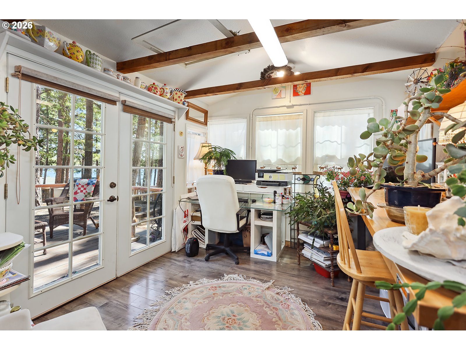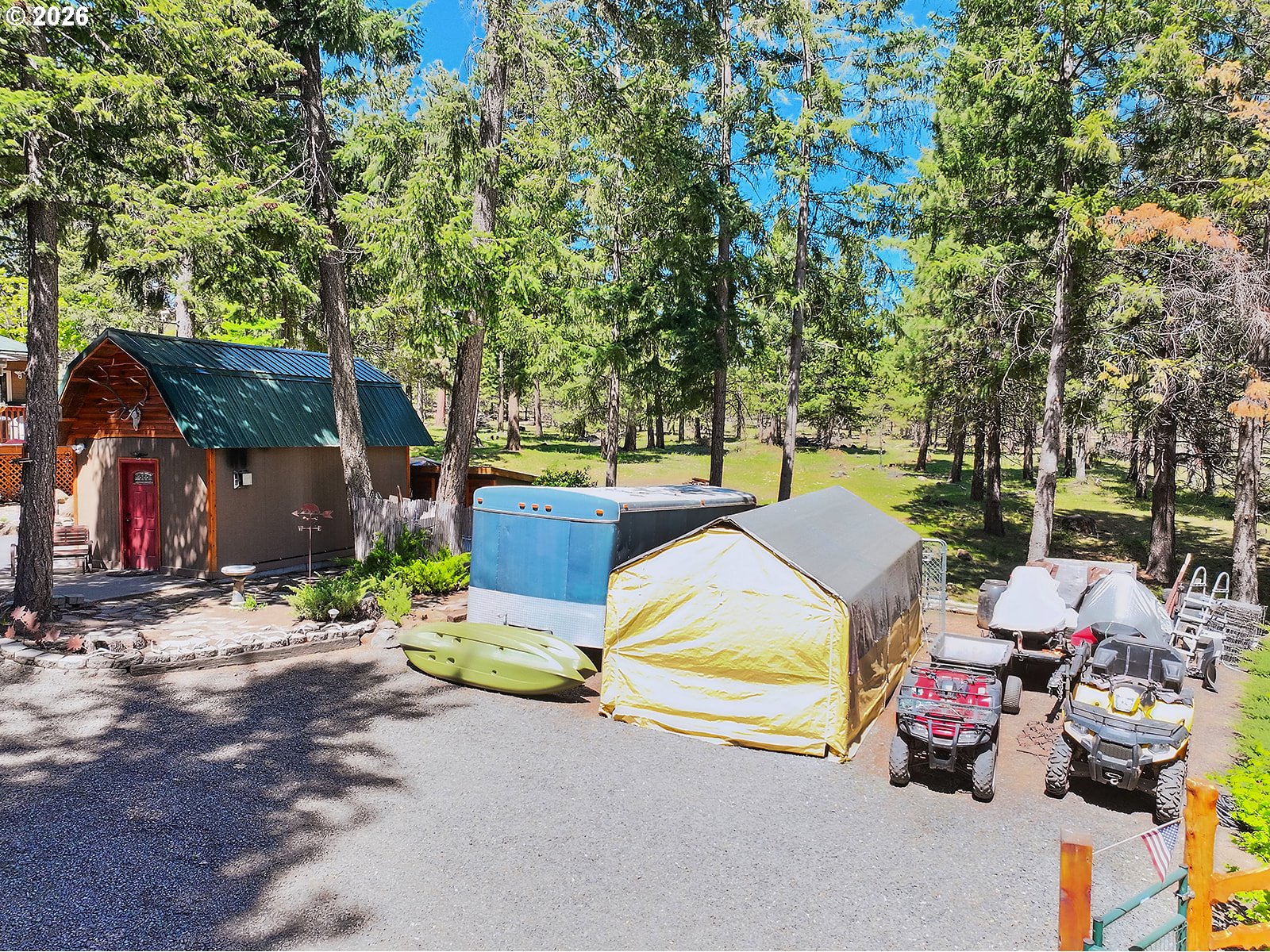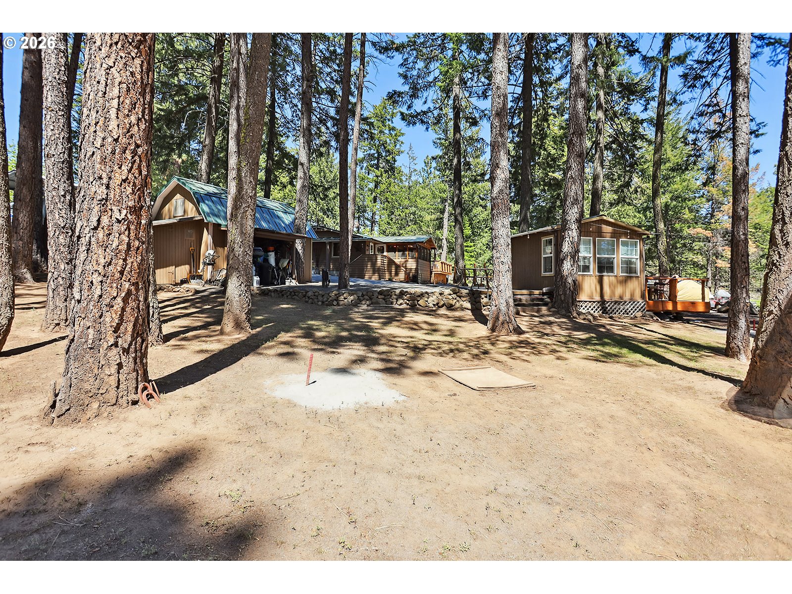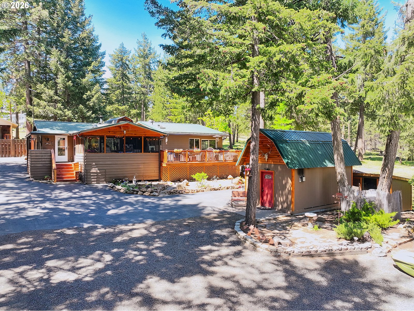 Welcome to 328 Ponderosa Way in Tygh Valley, a rare lake retreat in the private Sportsman’s Park community surrounded by Mt. Hood National Forest. This well-maintained 3 bed, 2 bath home sits on .51 acres across two tax lots at the end of a quiet road, offering privacy and stunning 180° views of Rock Creek Reservoir with frequent wildlife sightings.Ideal as a full-time home, vacation getaway, or turnkey rental (VRBO allowed), the property features updated windows, kitchen, and baths, plus a spacious primary suite with dual walk-in closets. Enjoy year-round comfort with forced air heat and a heat pump with central air (2018). A large wraparound deck showcases the lake and forest setting.Property borders national forest so outdoor recreation is right outside your door, with access to fishing, hiking, hunting, OHV trails, and private lake access, plus community amenities. Outbuildings include a garage, studio, workshop, and more—all with newer metal roofs. Additional highlights: full RV hookups, gated entry, security system, solar tubes, surround sound wiring, dog kennel, fire pit, and a second buildable lot. Your private mountain and lake retreat awaits!