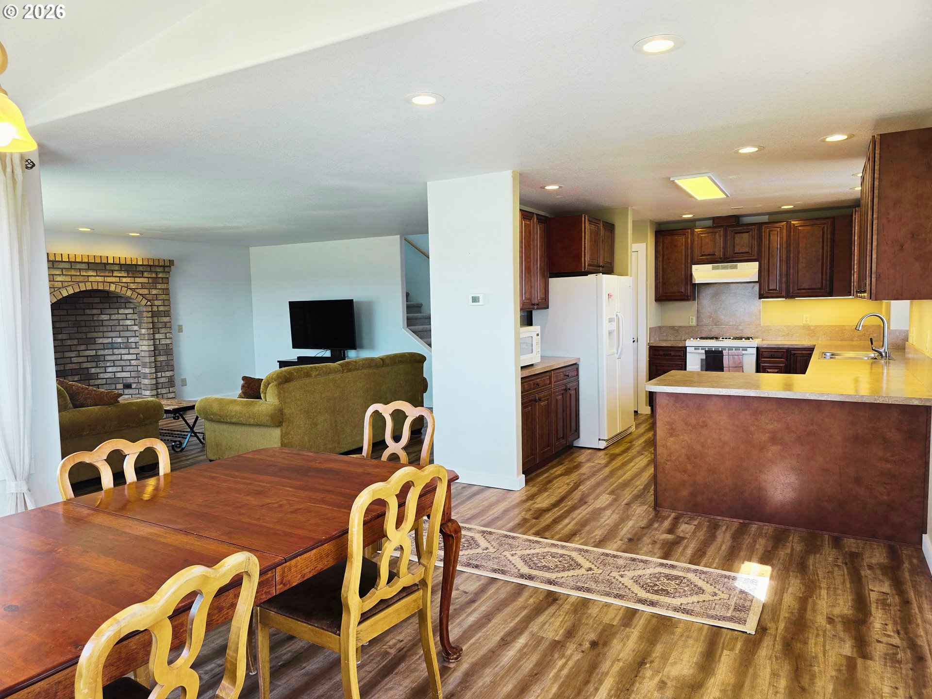 Welcome to the ultimate recreational retreat. Situated on over a half-acre lot next to the Pine Meadows Golf Course, this stunning property offers breathtaking views of Mount Hood and is just a half-mile down the road from the Pine Hollow boat launch. Whether you are looking for an expansive retreat for a large family or a highly attractive short-term rental opportunity, this thoughtfully designed home delivers on all fronts. Step inside to discover a property lovingly built and impeccably maintained, with most updates and projects completed within the last five years. The heart of the home features a beautiful cook’s kitchen that flows seamlessly into the main living and entertaining areas. Retreat to the primary suite, complete with a spa-like bathroom featuring a soaking tub and a walk-in shower. Upstairs, a massive family room provides the perfect secondary gathering area, game room, or bunk space to easily accommodate a crowd.The outdoor spaces are a true entertainer's dream. A covered breezeway, elegantly lined with a tongue-and-groove ceiling, connects the home to a spacious detached garage. Spend your evenings gathered around the custom rock-work firepit, swapping stories after a day on the water or the links. Practicality meets peace of mind with ultra-low-maintenance vinyl siding, a durable metal roof, and an efficient heat pump. Plus, the expansive layout offers abundant parking for boats, RVs, and all your lake toys.