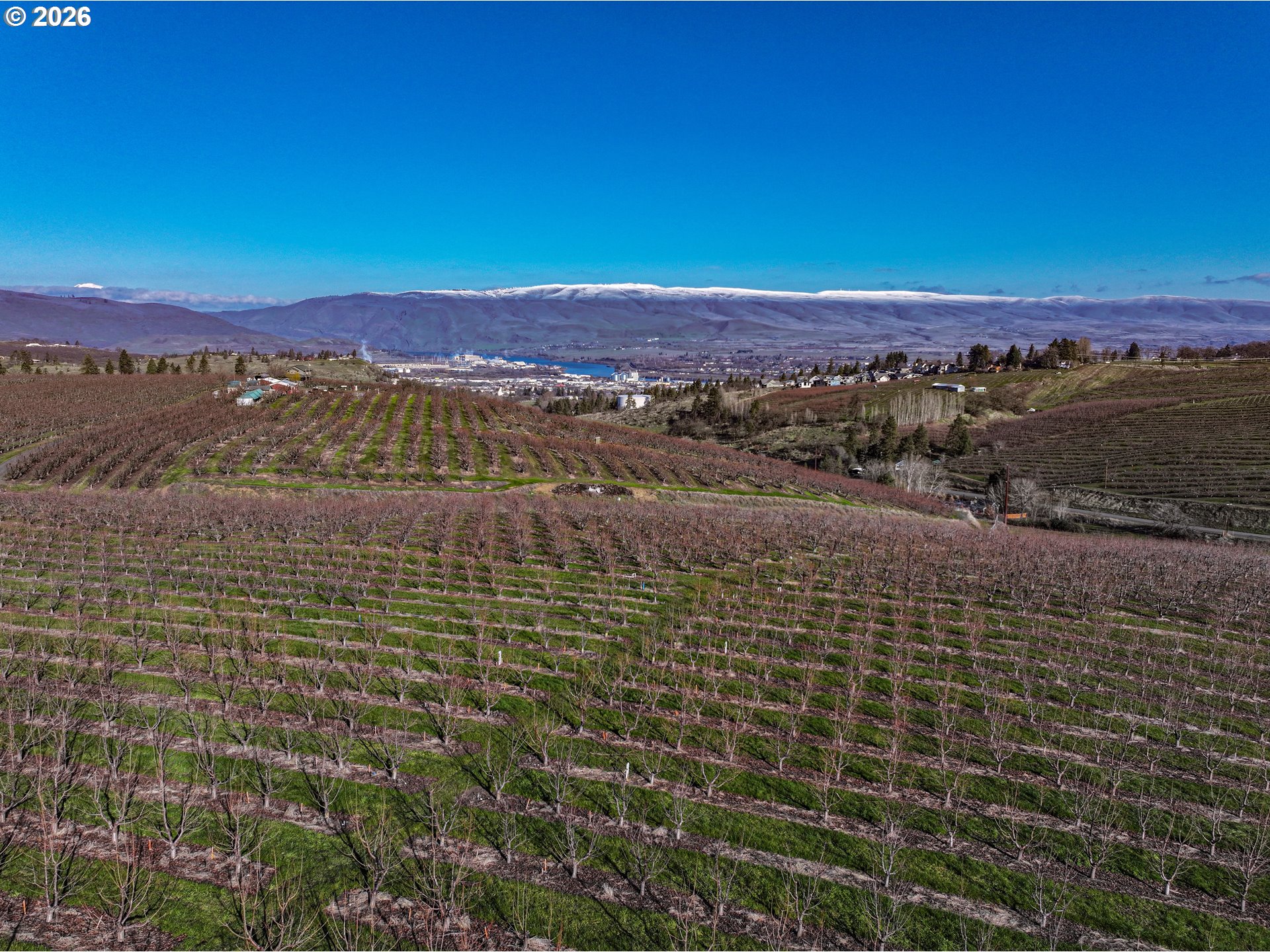 Exceptional opportunity to own 2 parcels of 14+ acres just minutes from The Dalles. This scenic property features approximately 12 acres of productive cherry orchard with views of the Columbia River, Mt. Adams, and the City of The Dalles. The orchard includes roughly 6 acres of Bing Cherry trees and 6 acres of Black Pearl Cherry trees, which began producing last season. Annual costs to get to harvest averaged approximately $14,000–$16,000/year. The property includes a charming 2-bedroom, 1-bath residence with key updates in recent years, including a new septic system, durable metal roof, and concrete foundation. Would make for easy living, or improve or for worker housing. Enjoy the rare combination of privacy, income and development potential and close proximity to town. This versatile property offers excellent investment potential—continue operating the orchard, expand the existing home, or explore the option to build new. The orchard parcel may also have development potential subject to setback, farm income, and county planning requirements. Buyer to verify all information with County Planning.
