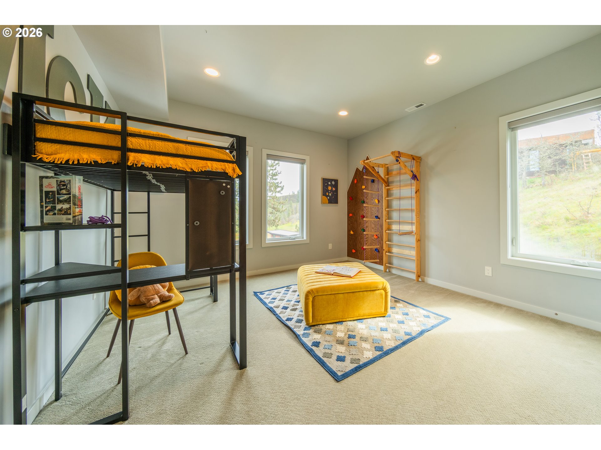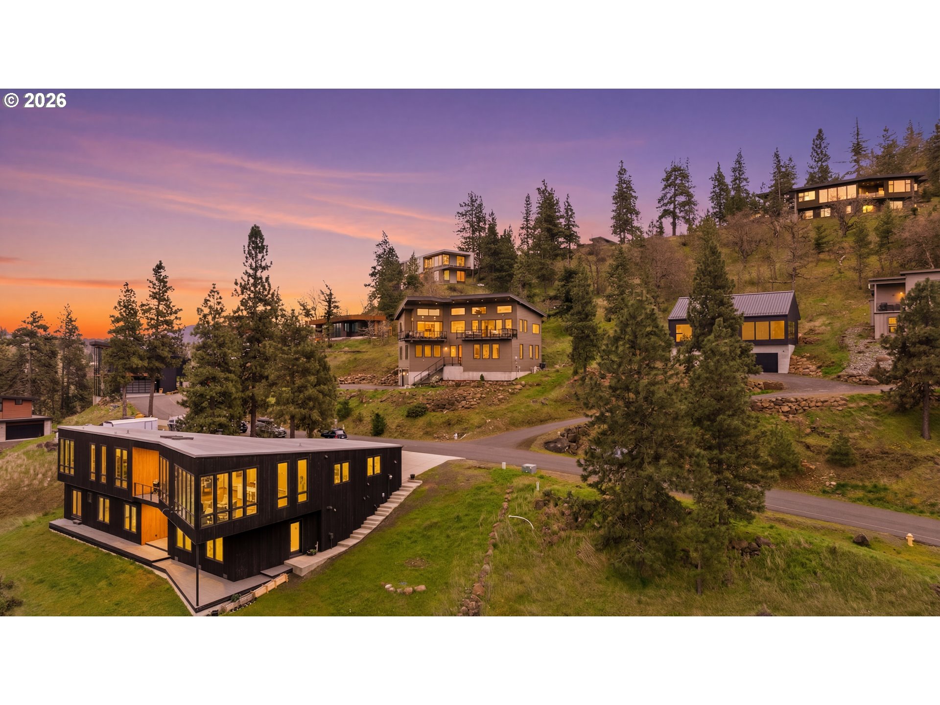 Perched above the Columbia River, this extraordinary Mosier Bluffs residence, built in 2017, offers 180° of world-class views, spanning the iconic Coyote Wall, Syncline, and Mosier Plateau. From the luxury bath, gaze upon the striking Button Bridge as the natural beauty of the Gorge unfolds before you—sunrise to sunset. Set on a coveted 0.39 acre lot, this 4,000-square-foot home exudes refined elegance and thoughtful design. The interior combines dramatic architectural lines with warm, inviting elements highlighted by tongue-and-groove ceilings, creating light-filled spaces that feel both grand and welcoming. The home features 4 bedrooms and 5 bathrooms, including 2 private primary ensuites, offering comfort and privacy for family and guests. At the heart of the home, a gourmet granite kitchen flows seamlessly into expansive living areas, perfect for entertaining or savoring quiet moments with unparalleled views. Modern luxury meets sustainability with 50 integrated solar panels, two Franklin battery backups, a SMART SPAN electrical panel, a Tesla EV charger, and a custom oversized two-car garage that provides ample workspace and gear storage. Every detail has been designed to combine style, function, and energy efficiency.Whether enjoying morning coffee or evening sunsets, the scenery is simply breathtaking. Just minutes from downtown Mosier, the home offers effortless access to riverfront recreation, scenic trails, award-winning wineries, delightful dining, and a charming local coffee shop. Opportunities to own a home of this caliber in Mosier Bluffs are exceptionally rare—an extraordinary lifestyle awaits.