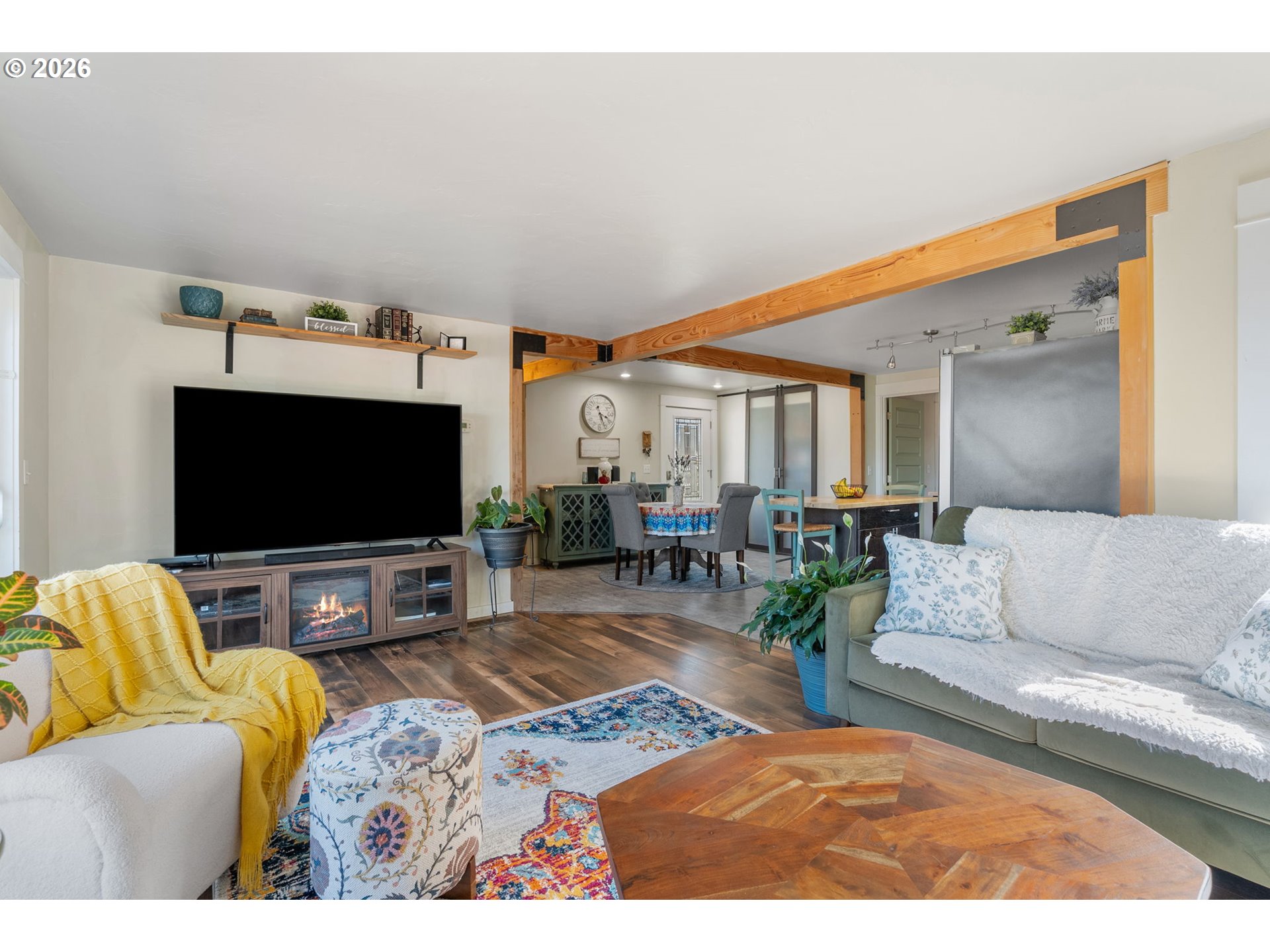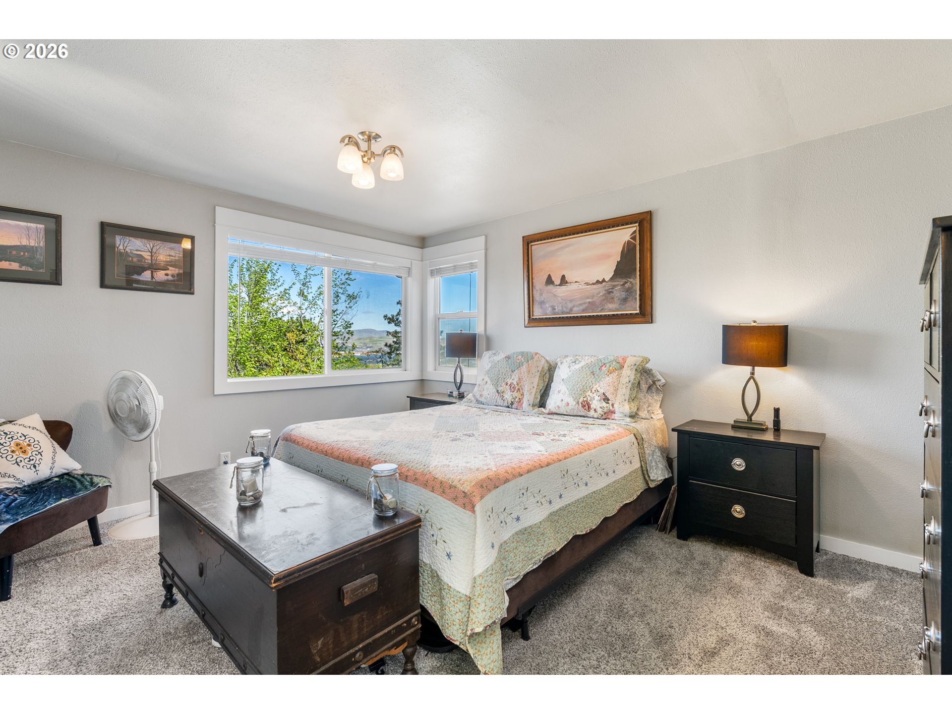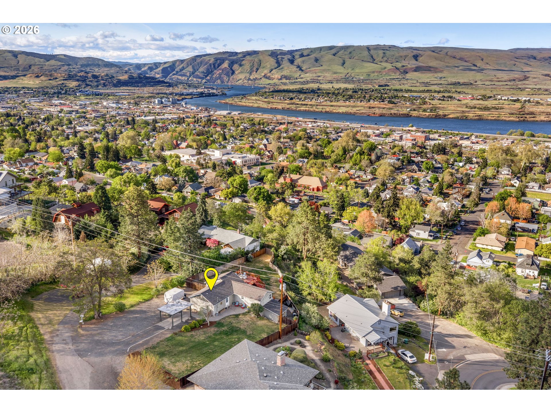 Big views, major upgrades, and flexible living space—this one delivers. This 3 bedroom, 2 bath single level home captures sweeping views of the Columbia River, The Dalles Dam, and The Dalles Bridge, creating a backdrop that’s hard to beat. Inside, the home has been thoughtfully refreshed with brand new flooring throughout, updated kitchen surfaces and sink, and fresh interior paint, all coming together in a clean, modern feel. A new roof installed in 2024 adds peace of mind, while the heat pump (2021), water heater, and recently serviced furnace provide added efficiency and comfort. The layout is comfortable and functional, with easy access to the deck and backyard for everyday living or entertaining. A separate daylight room with its own entrance, heating, and cooling offers ideal flexibility for a home office, gym, guest space, or creative studio. Outside, the oversized lot provides room to spread out with covered parking, additional storage, a large attached shed, fenced yard space, and ample graveled parking for RVs, boats, or extra vehicles. Tucked near the end of a quiet street with minimal traffic, this property combines views, updates, and usable space in a way that’s hard to find—move-in ready and built for real life.
