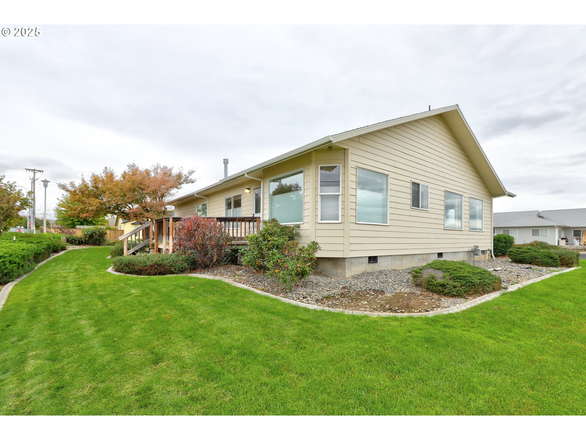 This package includes two lots, one the single level three bedroom home sets on and the other .54 acre lot to the north. Perched at the edge of E. Knoll and Summit Ridge Dr. this model home from 1992 has all the bells and whistle from back in the day, even the theatrical draperies to frame the windows featuring the gorgeous view of the Columbia River looking east and west of the Dam and the bridge. The home has minimal steps to enter and spacious layout including a kitchen/great room with a gas fireplace. The dining nook featuring tile flooring, lots of windows to absorb the views and a formal living/dining room. There is an alarm system, hard wired audio system, built in central vacuum, and a double door primary suite with a large ensuite bathroom. Recent updates include a new roof and siding in 2017. Gas furnace and AC unit in 2024. New garage door openers and garbage disposal in 2025. Again, This price includes the adjacent 0.54 lot to the north, adjacent to the home.