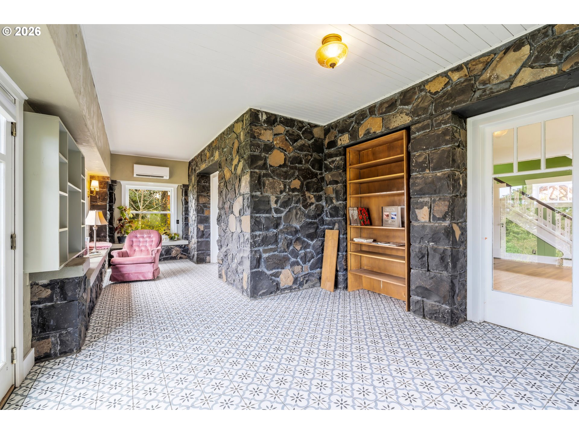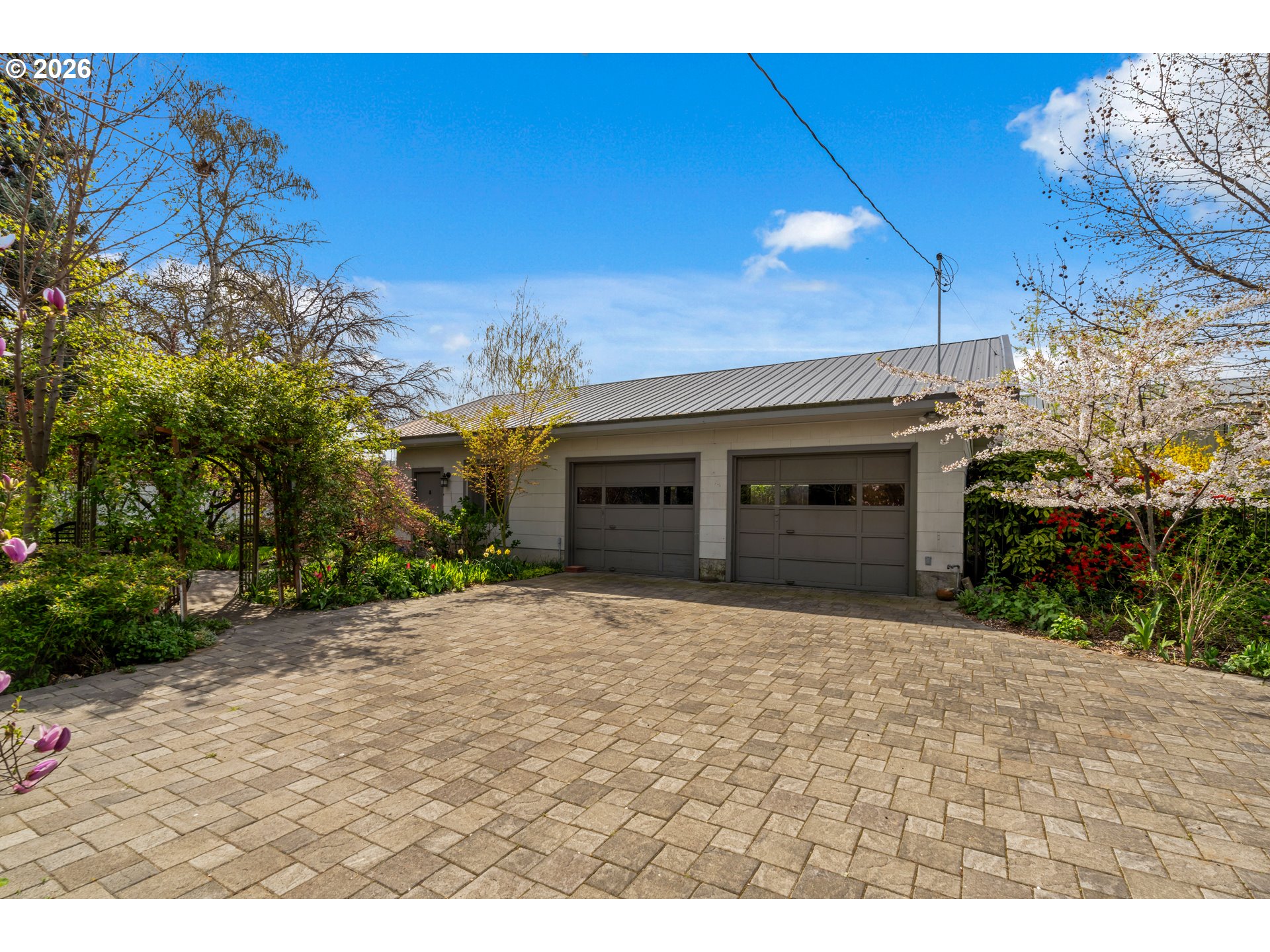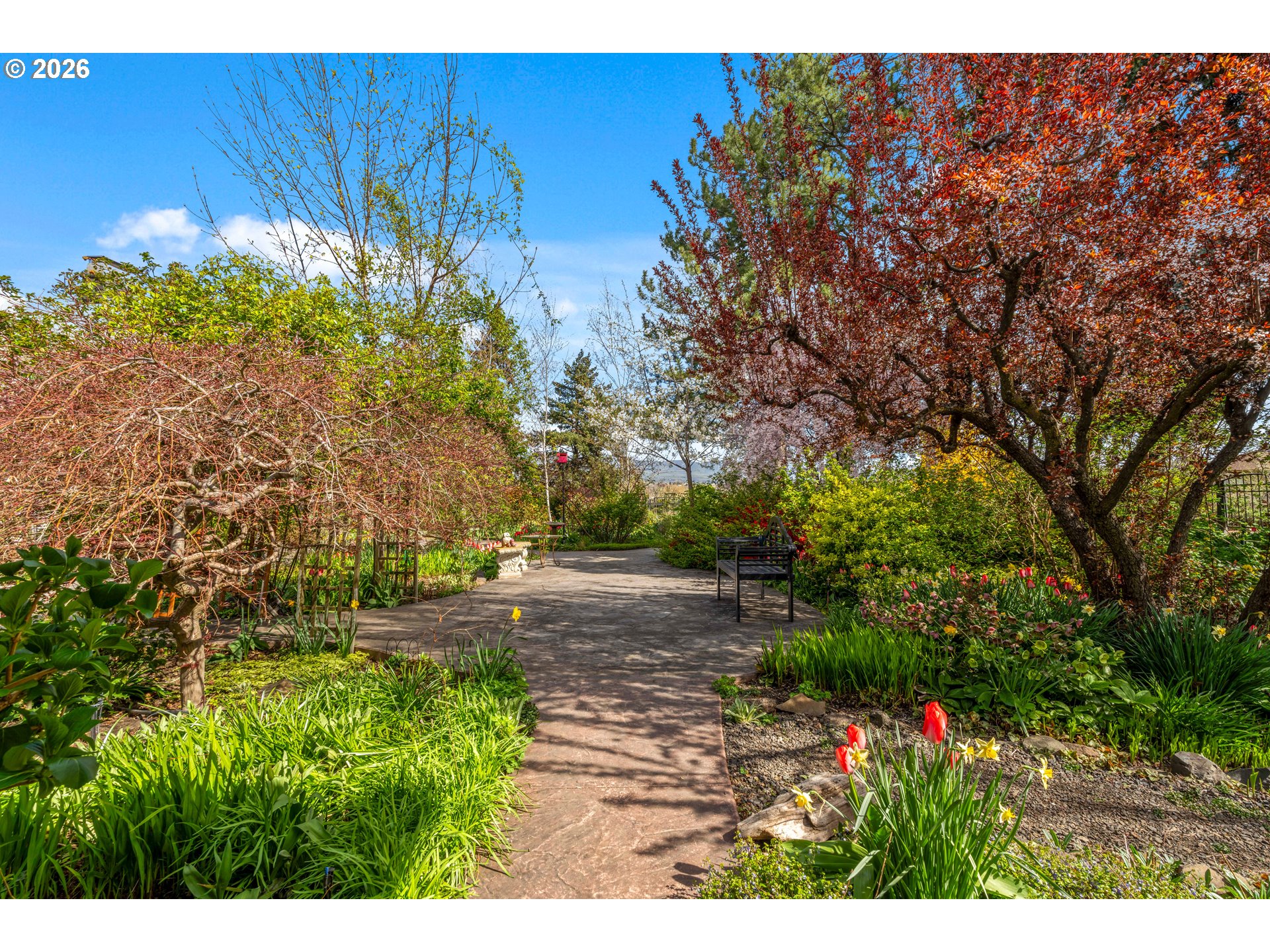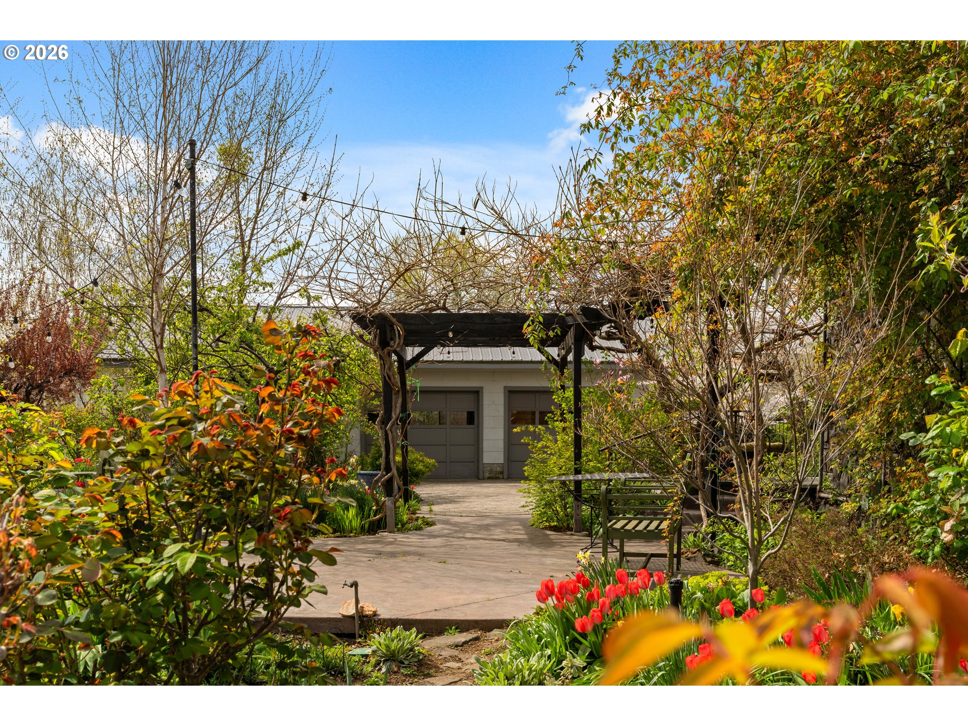 Perched high above town, this is a truly rare offering — an in-town sanctuary that feels worlds away. Set among mature Ponderosa Pines and Douglas Firs, the property unfolds like a private garden estate, with curated landscaping, winding paths, and intimate seating areas framed by sweeping views of the Columbia River, Mt. Adams, the Klickitat Hills, and St. Peter's Landmark. That dramatic backdrop doesn't stop at the door — it carries through the home itself. Rich in history and craftsmanship, the property features a signature basalt arch and a stone stairway connecting the garden to 3rd Street — details originally crafted by the Tronzano Bros. that speak to the enduring quality woven into every corner of this home.Inside, thoughtful updates honor the home's character rather than erase it. The kitchen has been reimagined with custom cabinetry, quartz countertops, and premium appliances including an induction cooktop. Original quarter-sawn oak floors on the main level and maple upstairs add warmth and authenticity, while the living room is anchored by a striking basalt gas fireplace. Modern comfort is well covered with radiant heat in the upper bath, mini-splits throughout, and a gas furnace. Upstairs, light-filled bedrooms and a tucked-away bonus space offer flexibility for guests, a home office, or creative use. The detached two-car garage includes an additional ~360 sq ft of flex space with real potential for a studio or ADU (buyer to verify). A gated entry provides privacy, with ample off-street parking for an RV or boat. Whether you're drawn by the views, the history, the gardens, or the lifestyle — this is Pacific Northwest living at its finest, with the added possibility of short-term rental income.