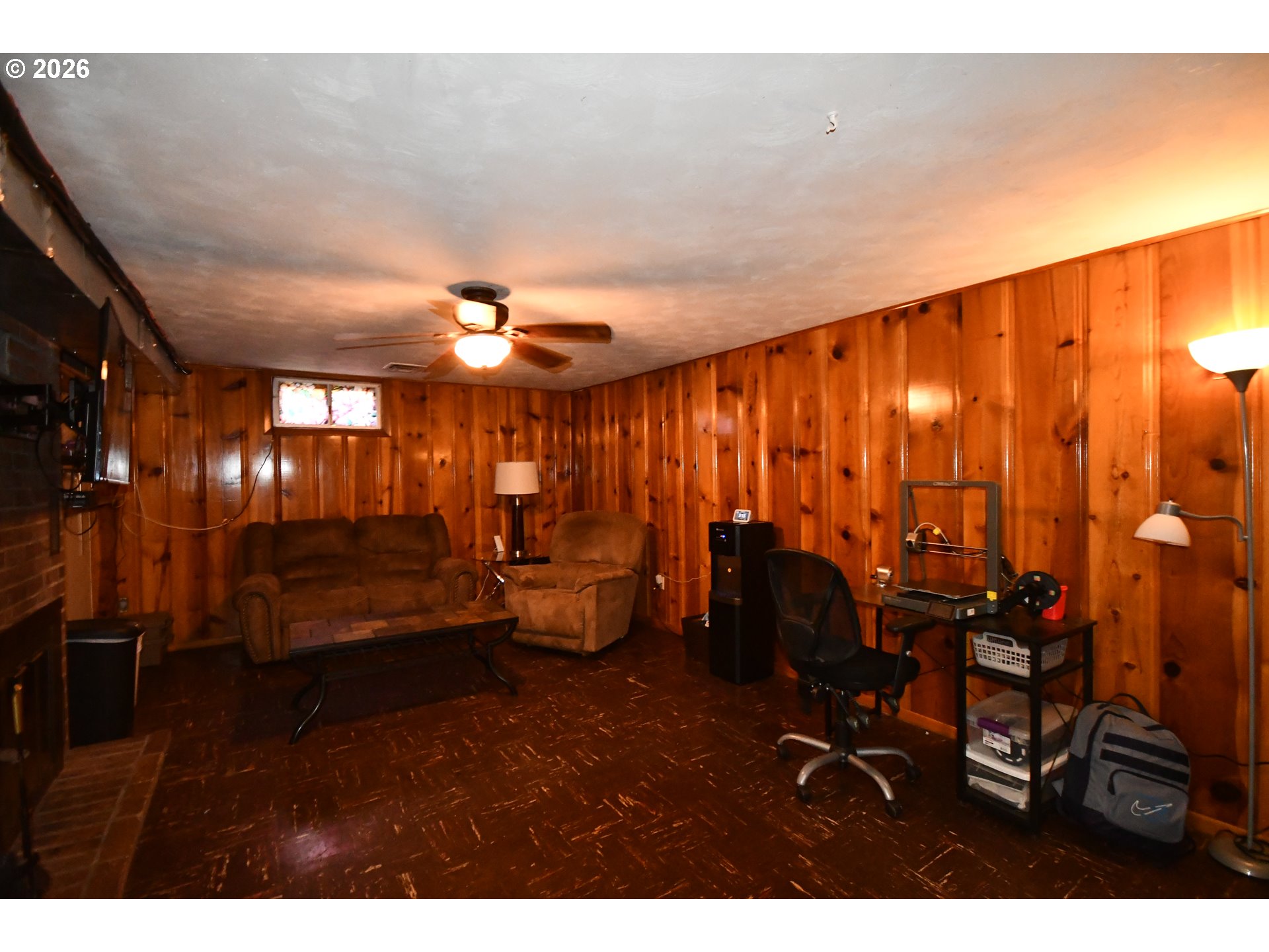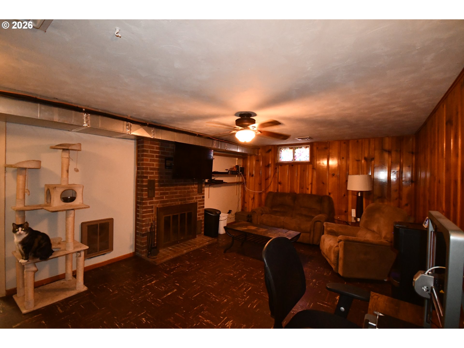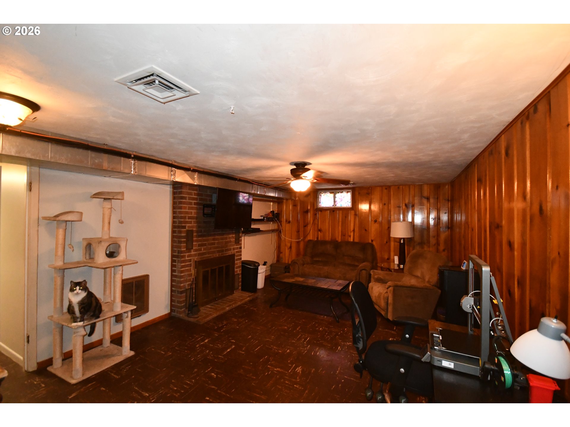 (503) 893-8874Nicely updated mid-century modern home with hardwood floors, 2 fireplaces, beautiful accent wall in the living room, 2 updated bathrooms, one with step in tile shower and the other with huge jetted tub, double sinks and great finishes. County calls room in basement 3rd bedroom and all it needs is an egress window to make it meet current code. Basement has its own separate entrance. Knotty pine walls in basement family room, with workshop and large storage area. All of this with energy efficient windows and central heat and air and a detached double garage.