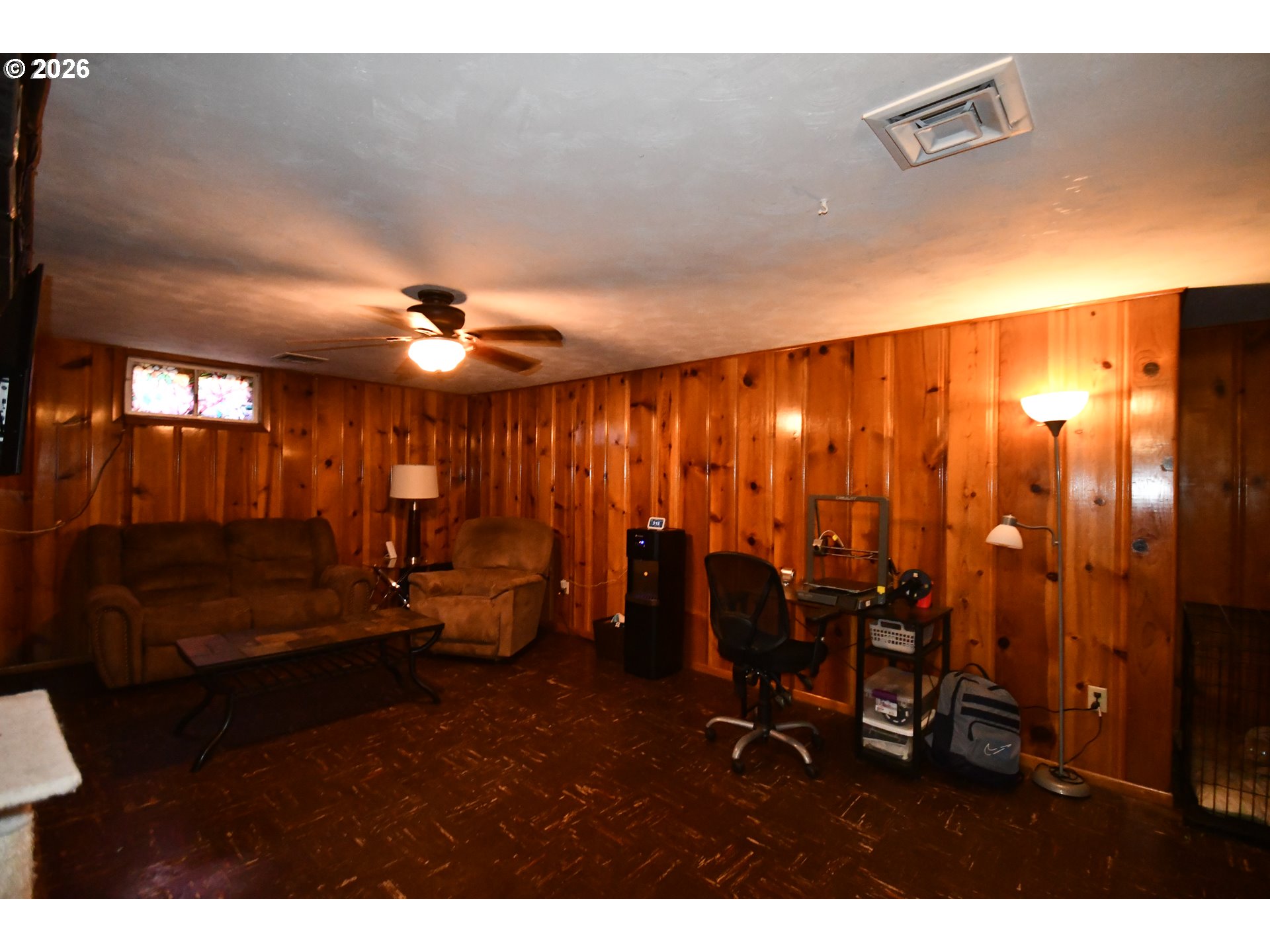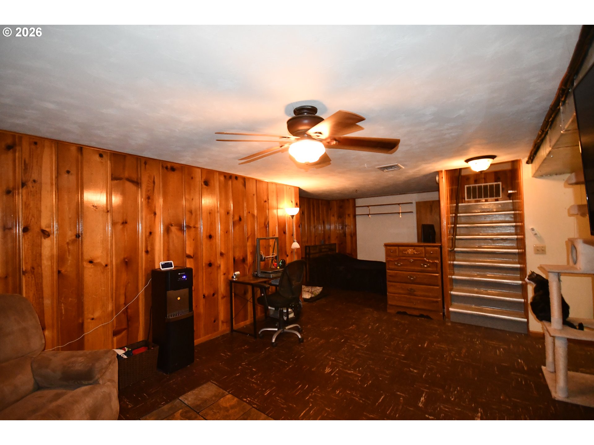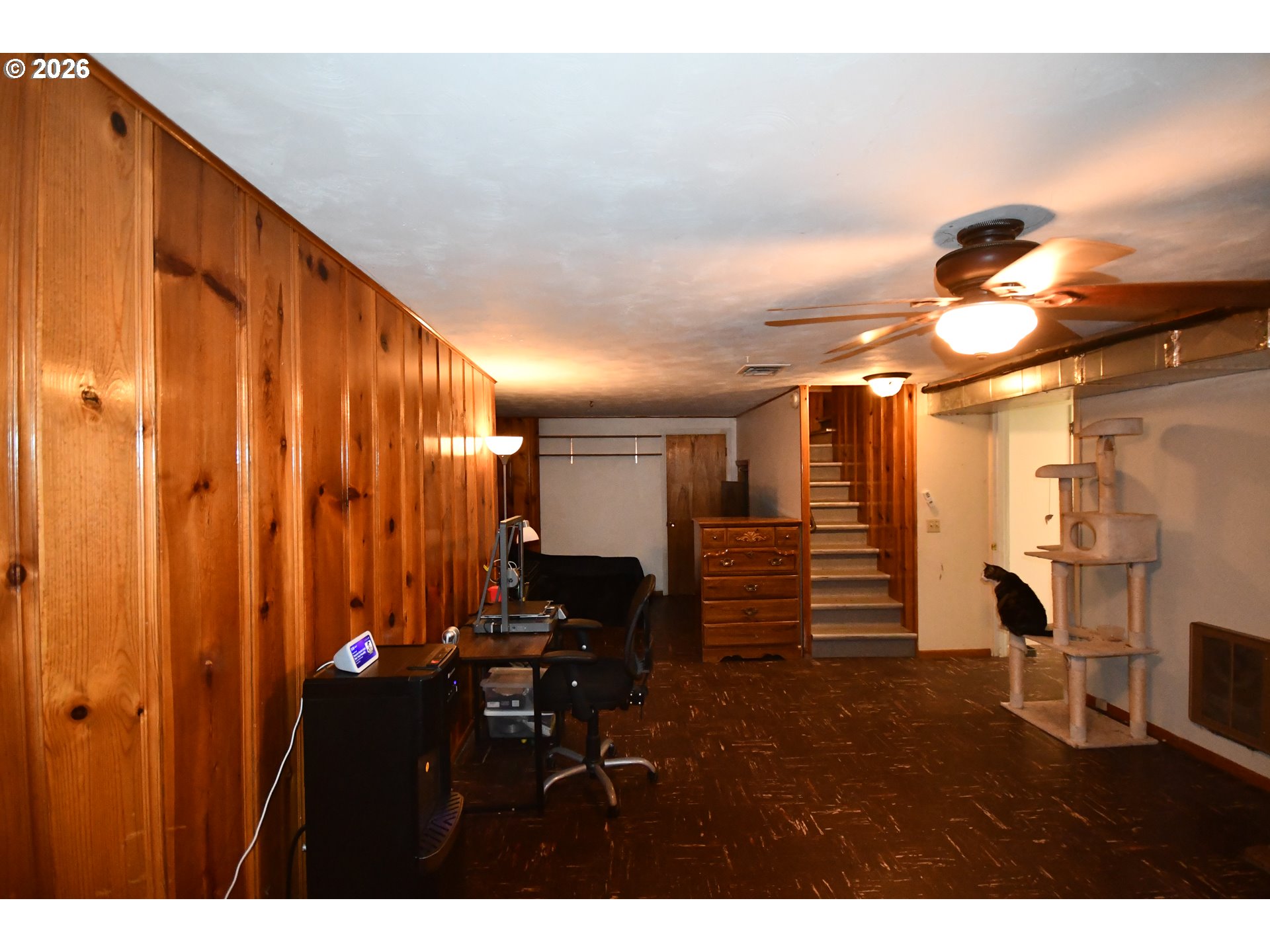 (503) 893-8874Nicely updated mid-century modern home with hardwood floors, 2 fireplaces, beautiful accent wall in the living room, 2 updated bathrooms, one with step in tile shower and the other with huge jetted tub, double sinks and great finishes. County calls room in basement 3rd bedroom and all it needs is an egress window to make it meet current code. Basement has its own separate entrance. Knotty pine walls in basement family room, with workshop and large storage area. All of this with energy efficient windows and central heat and air and a detached double garage.