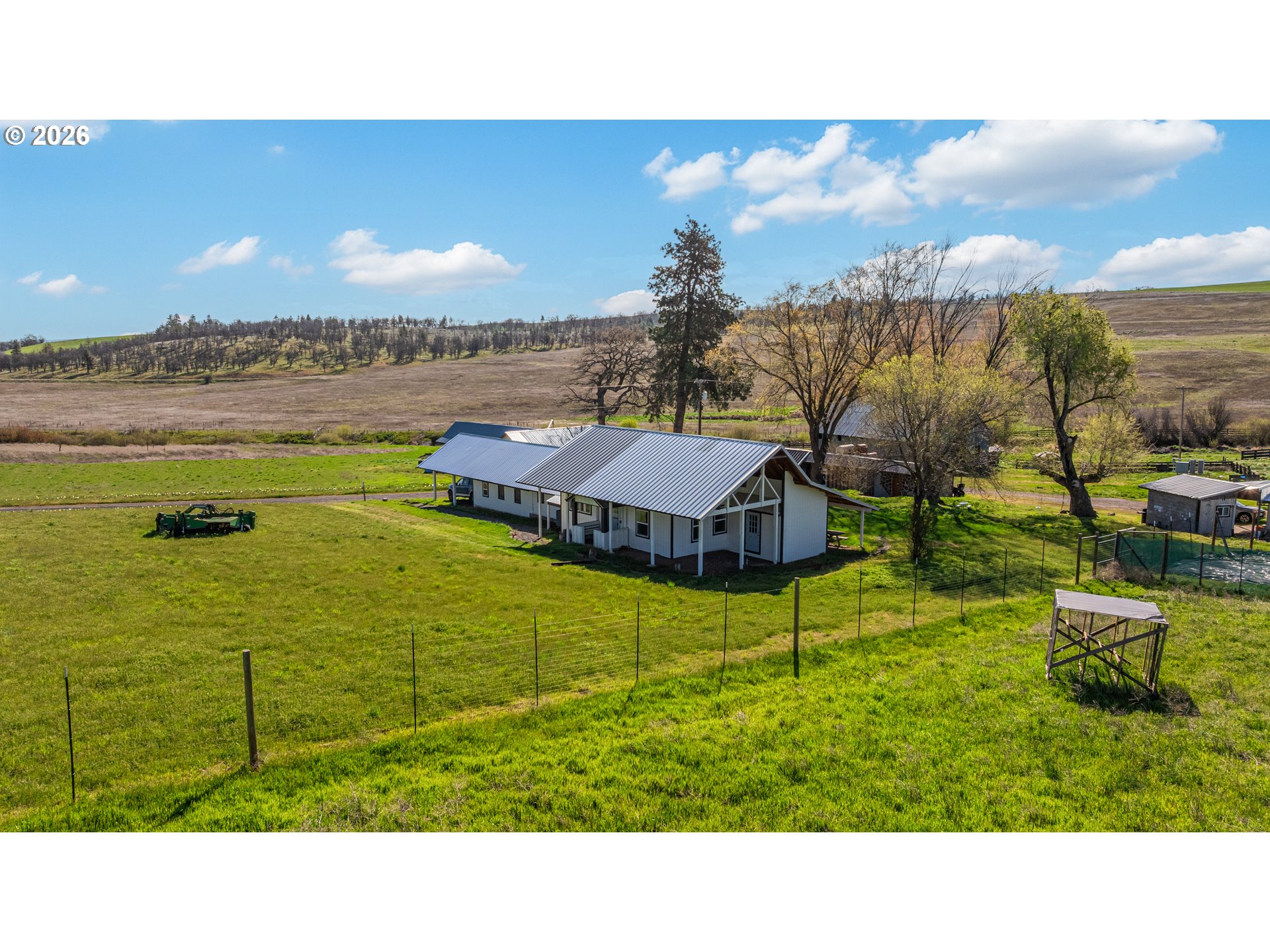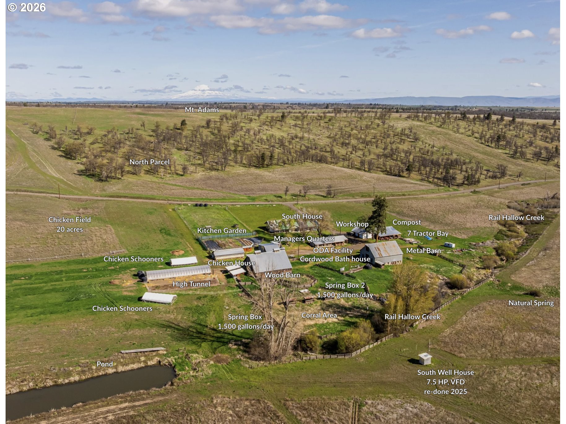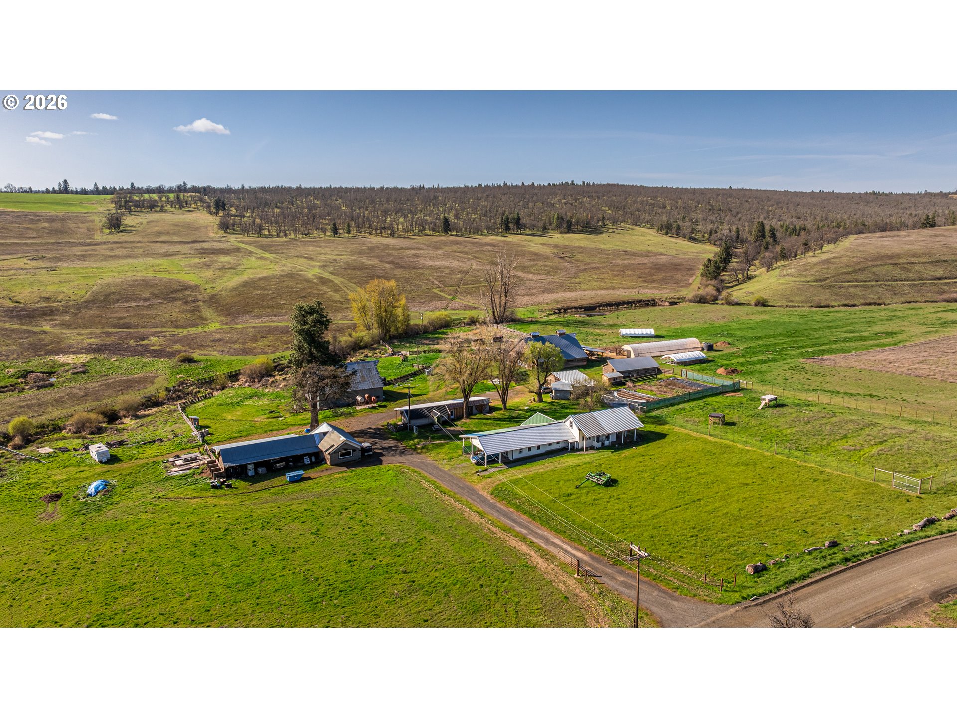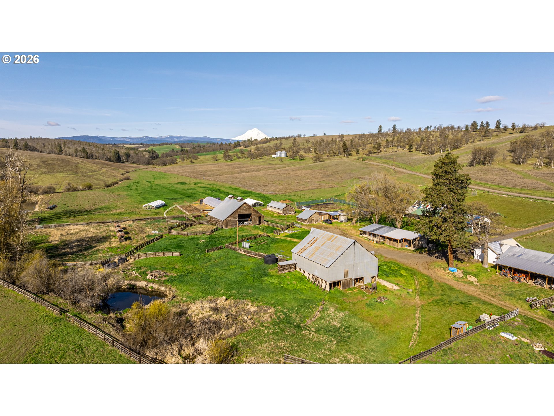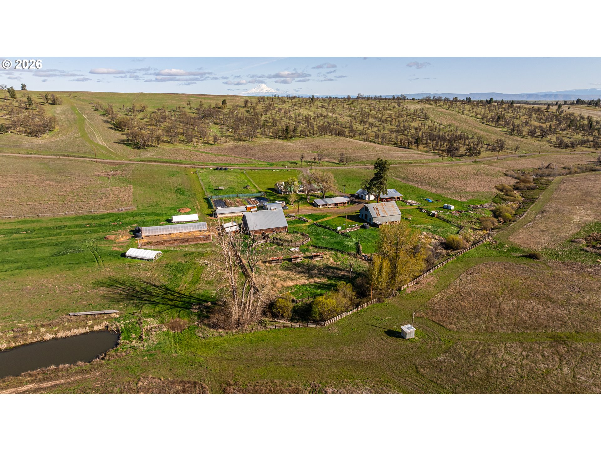 (503) 893-8874A once-in-a-generation opportunity to acquire one of Oregon's most extraordinary working farms — one already doing the work.Situated between the eastern slopes of Mt. Hood and the Columbia River Gorge, Carbon Farm spans 1,462 acres of rolling hills, native oak savannahs, open pasture, and managed forest. Farmed continuously for over 100 years and actively converted from conventional wheat production into a functioning regenerative operation built around a single idea: farming carbon back into the soil. Carbon Farm was purpose-built around regenerative practices that sequester carbon, rebuild soil biology, and integrate animals with crops to create natural fertility cycles. This isn't a vision — it's an active, multi-enterprise farm producing beyond-organic pastured poultry and cattle, market garden crops, and microgreens, with a licensed ODA poultry processing facility on site. The land is the foundation: 700+ acres of pasture, 700+ acres of native oak woodland and savannah, 616 acres of water rights, seasonal ponds, and irrigation canals. Thriving elk, deer, and wild turkey populations make this equally compelling for the serious hunter or conservation-minded buyer, with established archery and rifle seasons and a strong harvest history. Infrastructure is in place and fully operational. The historic farmstead includes a farmhouse, multiple barns, outbuildings, bunkhouses, and greenhouses. Full electric and high-speed internet on site. A 3-bed, 2-bath manufactured home on the north end offers additional living quarters or employee housing. Existing guest accommodations — farm stays, bunkhouses, and event infrastructure provide a natural foundation for agritourism, corporate retreats, or experiential programs already in motion. 22 miles from Mt. Hood, 20 miles from the Columbia River. A compelling impact investment, conservation acquisition, or generational land holding — with a regenerative operation already underway.