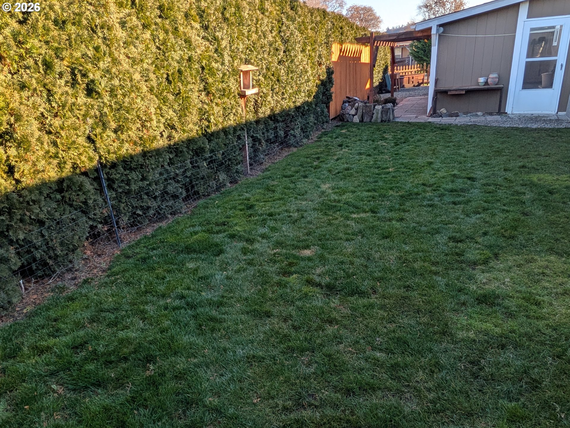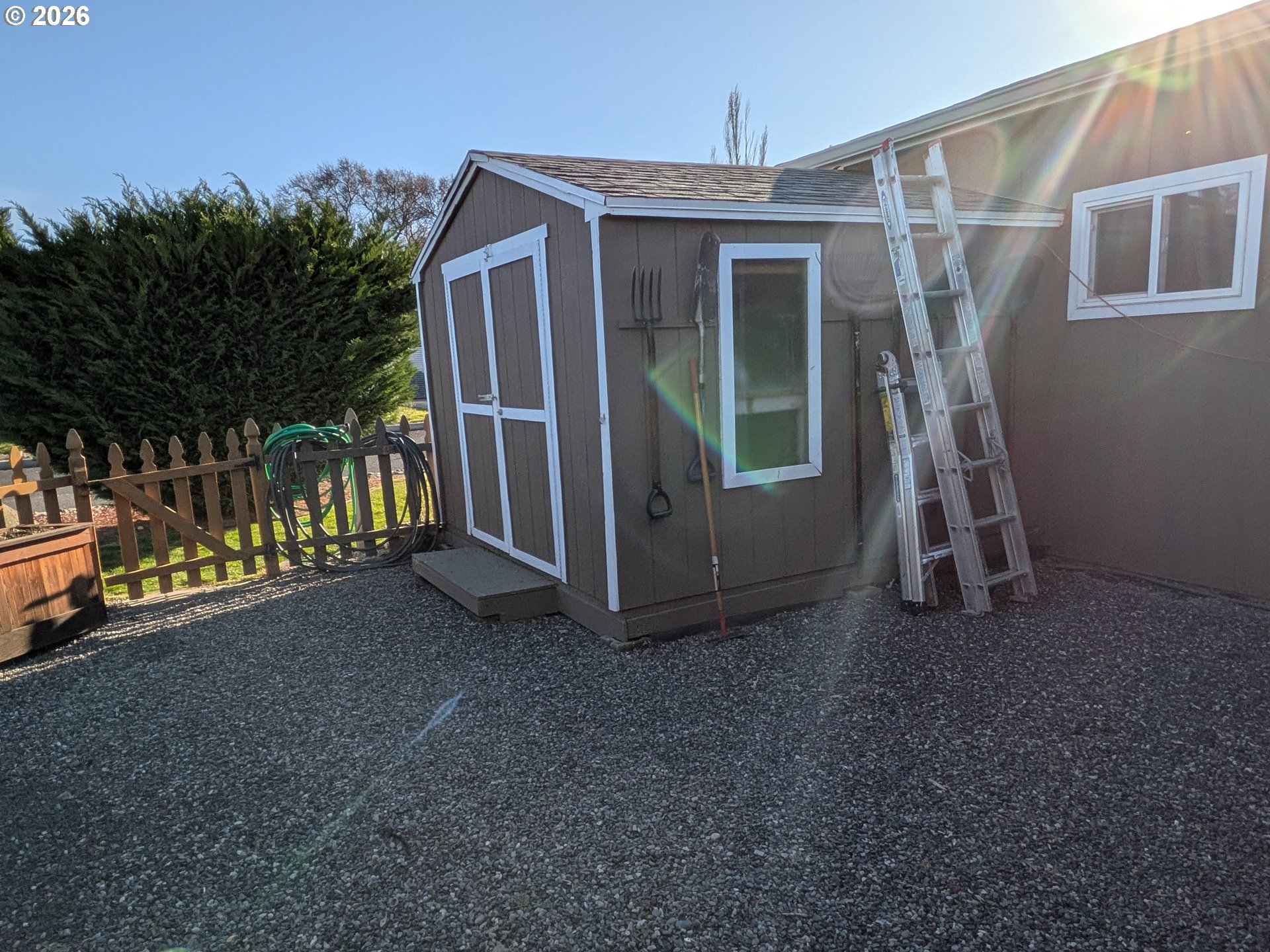 Quiet and comfortable living in the desirable Pomona Meadows 55+ community. A pleasing floor plan that separates the living room and primary suite from a family room, additional bedrooms, and 2nd bathroom. The kitchen has solid-surface countertops, stainless steel appliances, raised cabinets, a pantry, and opens to a bright dining area. Enjoy the covered patio and bubbling water feature in the private fenced backyard. An attached 2-car garage, a 10 x 10 utility shed, and several raised garden beds in the colorful landscaped yard. This home has been very well maintained and has many thoughtful updates. The HOA dues cover water, sewer, garbage, and road maintenance.