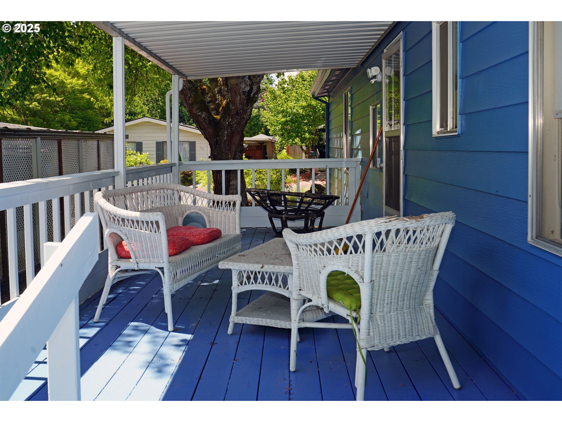 Beautiful 1344 sq ft home in one of the finest 55+ approved parks in town. Gated entrance, swimming pool, gym and recreation facilities. This home comes partially furnished! Newer roof. Heat pump cooled. Updated laminate hardwood flooring throughout. Large living room with vaulted ceiling. Built-in glass display hutch. Family room with slider and huge skylight. Circular kitchen with eating bar. Primary bedroom suite with handicap stall shower and soaker tub. 2nd bedroom has an attached bathroom too. Bedroom sized utility room with washer/dryer, built-in desk and room for 2nd refrigerator or freezer. Relaxing private covered deck and easy care yard.