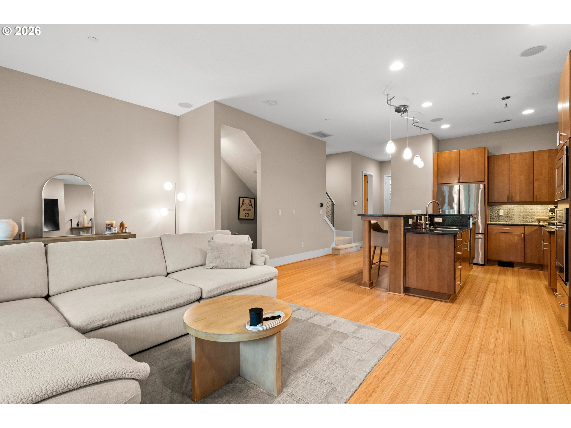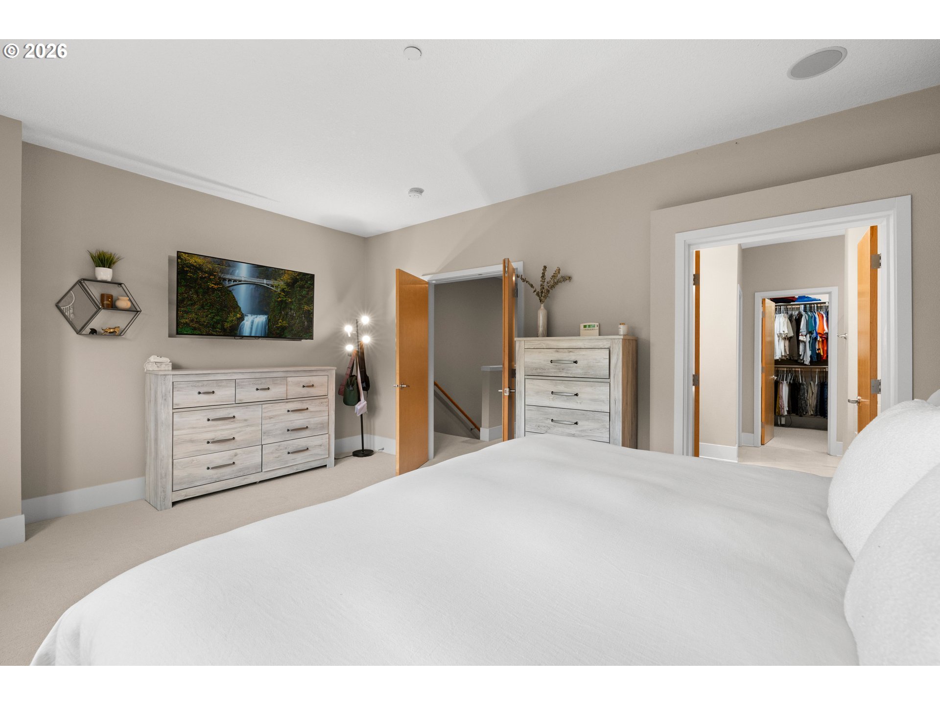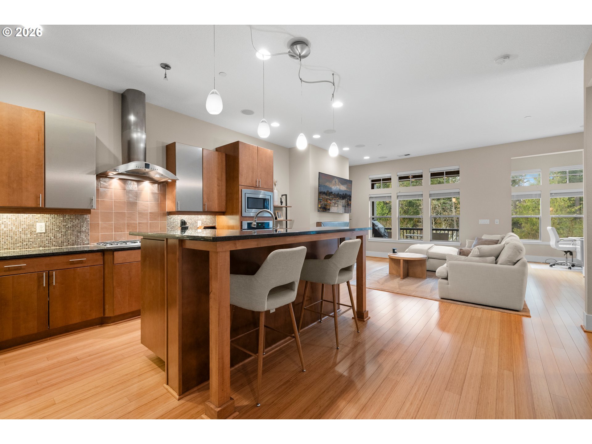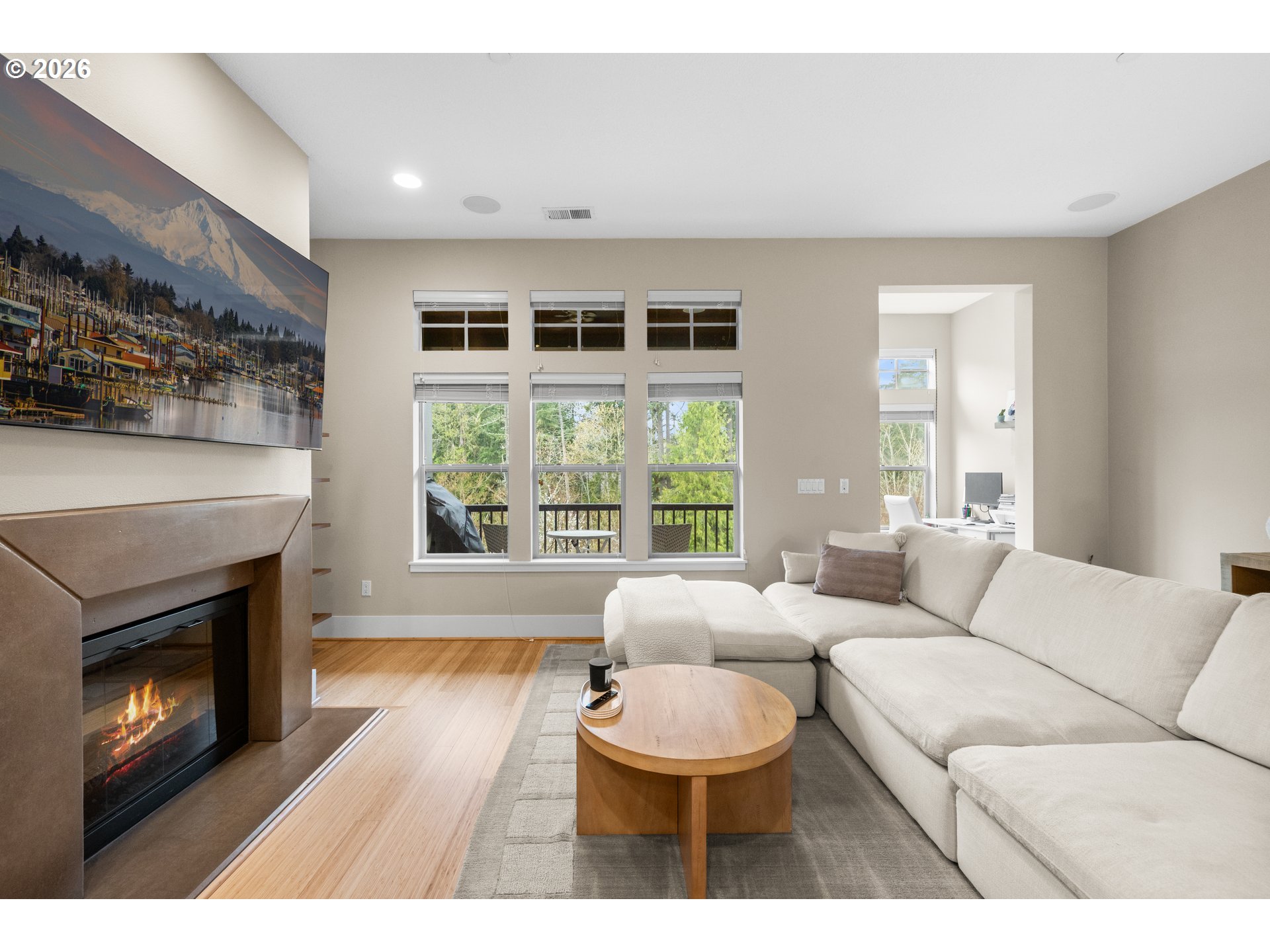 Discover refined living at Renaissance at Peterkort Woods, where contemporary style meets inviting comfort. This beautifully designed townhome offers standout features such as an extended driveway, a newly installed roof, peaceful park views from the deck, and access to a community pool. It’s a perfect blend of elegance, functionality, and everyday convenience.Step inside to find beautiful bamboo style hardwood flooring and a bright, open layout that’s ideal for both daily living and entertaining. The kitchen is equipped with stainless steel appliances, generous counter space with quartz counters and flows seamlessly into the living area with modern fireplace. Nearby is a cozy office space overlooking the trees. Tall 10-foot ceilings and large windows bring in natural light while showcasing tranquil views of the surrounding greenery.Upstairs, two generously sized bedroom suites provide privacy and comfort, making them perfect for guests or personal retreats. The lower level adds versatility with a flexible space suited for a home office, gym, or media room, along with extra storage options. A built-in central vacuum system adds an extra layer of convenience throughout the home.Built with quality craftsmanship, the home features durable 2x6 double-wall construction and Owens Corning acoustic insulation for a quiet atmosphere. Additional features include a dedicated laundry room with a sink, cabinetry, and added storage, plus a spacious two-car garage. Recent upgrades include a new furnace and A/C.Situated in a highly desirable community, residents enjoy amenities like a clubhouse, pool, nearby shopping, and access to the Merritt Park trail system. The location also offers quick access to major employers, healthcare facilities, and public transit, all within Washington County.