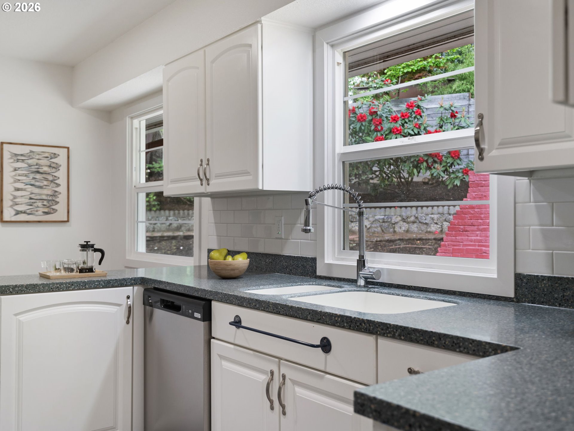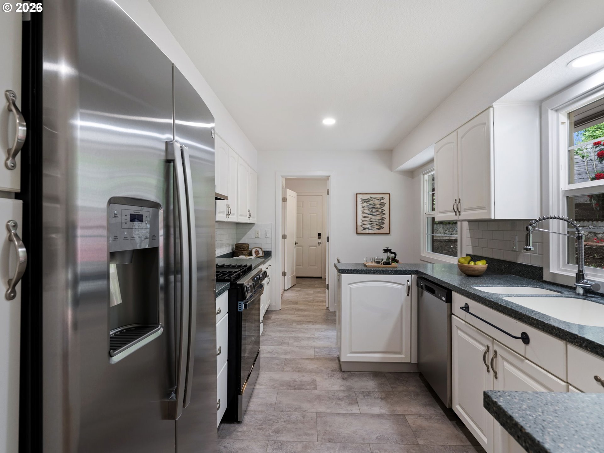 Beautifully Updated Ranch on a Private 0.35-Acre Lot! Nestled in one of Portland’s most desirable neighborhoods, this beautifully maintained home blends classic character with modern updates, comfort and functionality on a spacious, private lot. Fully updated and move-in ready, this 3 bed/1.1 bath home offers 2,626 sq ft with hardwood floors, abundant natural light, fresh interior paint and trim, fresh exterior paint, new solid-core interior doors, new front door and thoughtful upgrades throughout. Formal living and dining rooms feature built-ins and a gas fireplace. Updated kitchen includes granite counters, tile backsplash, ample cabinetry, breakfast nook, new stainless steel appliances including refrigerator, range, range hood and dishwasher, plus new recessed lighting. Sunken family room offers flexible living space with new carpet. Renovated bathrooms feature new vanities, toilets, shower glass and fixtures, with new LVT flooring extending through bathrooms, kitchen, laundry and basement. Convenient laundry room includes washer/dryer and sink. Basement offers two bonus rooms with new windows, recessed lighting and versatile space for storage, workshop or extra living. Fenced backyard retreat includes deck, multiple patios, raised beds, greenhouse, outdoor fireplace and nice landscaping surrounded by mature trees. Designated as a registered bird habitat sanctuary, this peaceful outdoor oasis invites nature lovers to enjoy birdwatching, gardening and serene year-round living. Perfect for hosting parties, BBQ, entertainment or relaxation. Enjoy the added benefit of owned solar panels for low energy costs, with panels to be paid off by seller at closing for added value and efficiency. Prime location, close to trails, schools, shopping and dining. Easy access to downtown West Slope and major commuting routes. Rare opportunity!