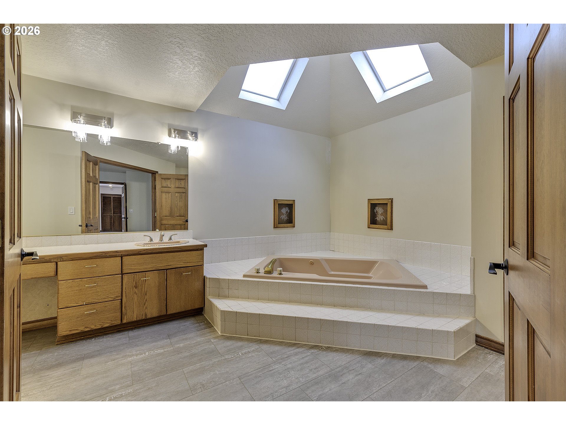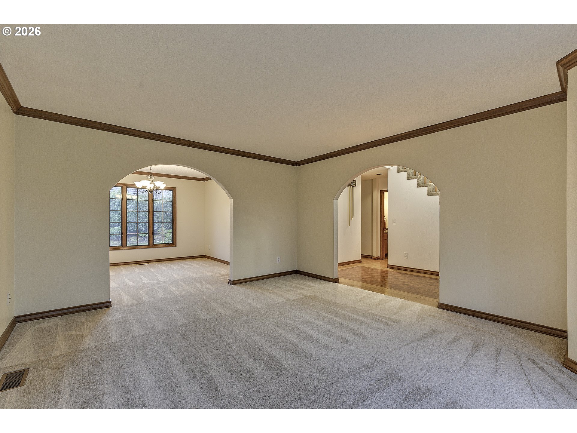 ** OPEN HOUSE SATURDAY, 1/10 from 12:00-4:00 ** Brand new roof, new exterior paint & new carpet throughout! This beautiful 4 bdrm home has versatile living & outdoor spaces. With classic architectural details & a floor plan made for gathering, this former Street of Dreams home offers a comfortable place to make your own. Large windows & thoughtful features like a wet bar, 2 fireplaces & a spacious backyard patio. The foyer has vaulted beamed ceiling & hardwood floor w/parquet inlay. Formal living room w/bay window opens to the dining room, both have crown molding. Spacious kitchen features slab granite, eating island w/gas cooktop (2024), double convection ovens & snack counter w/beverage fridge. Family room has fireplace, blt-in bookcases, wet bar & brand new sliding door to the patio. Primary suite has fireplace, 2 closets (one is w-in), dual sinks, jetted tub & skylights. Manicured & fenced backyard w/ extended paver patio, built-in fire pit, tiered pond & lawn. 2-car oversized garage w/built-in shelves. Auto sprinklers. Ring doorbell. Gas water heater (2022). A/C. Refrigerator, washer & dryer included. Whether you are entertaining or relaxing, there is plenty of room to spread out, settle in & enjoy all this home has to offer.