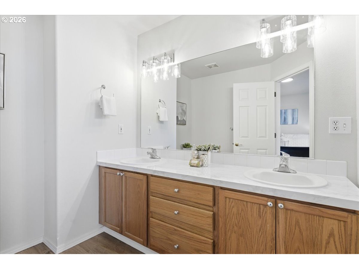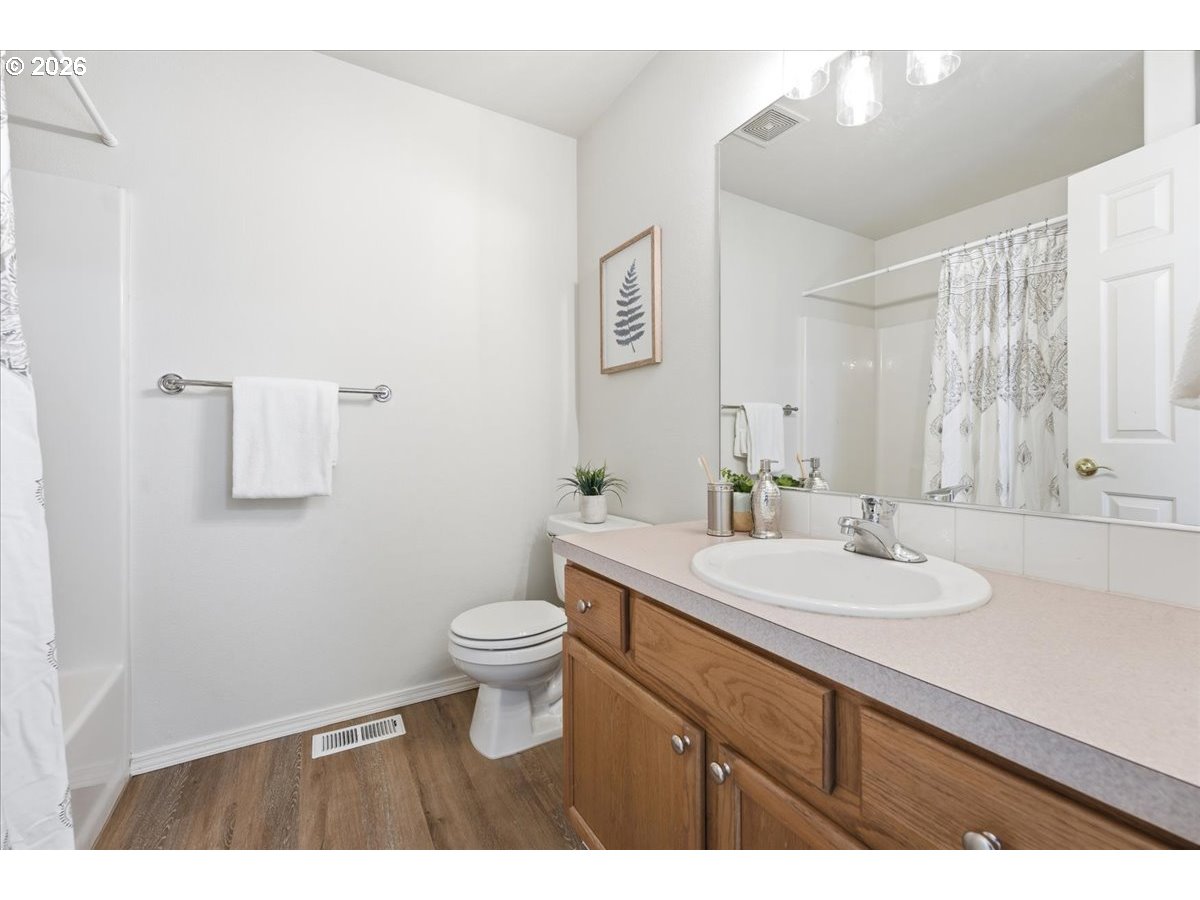 Beautifully updated townhouse offers stylish upgrades, major system improvements, and an unbeatable location. Fresh interior paint, new LVP flooring, brand-new carpet, and updated light fixtures create a clean, modern feel throughout. The kitchen features a newer range, microwave and a brand-new dishwasher.The main level includes a bright office with French doors and a bay window, along with the living room, kitchen, dining area, and a convenient half bath. Upstairs are two spacious bedroom suites, each with a walk-in closet, plus a laundry room on the same level. The lower level offers a large flex room perfect for a home gym, media room, guest space, or additional living area.Major updates include a high-end furnace and central A/C system and a durable 50-year roof, providing peace of mind for years to come.Enjoy outdoor living with flagstone hardscaping, a spacious Trex deck, and a private fenced backyard. Updated front steps add curb appeal and a welcoming entry.Conveniently located just minutes from Nike, the scenic Fanno Creek Trail, shops and dining.Buyer to verify all information to their satisfaction.
