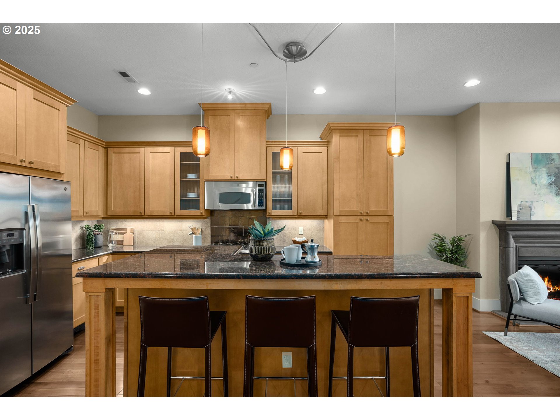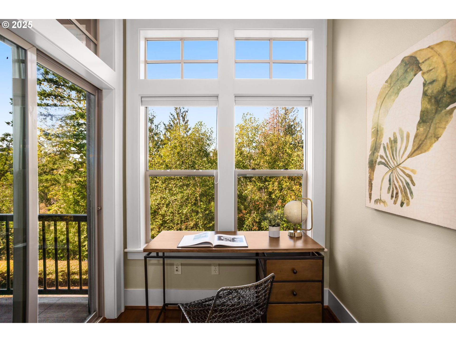 Open Sun 12/14 2-4pm! NEW PRICE! Luxury Townhome in Renaissance at Peterkort Woods. Home features Great Room open concept floor plan w/gas fireplace, hi-ceiling, hardwood floors, high end finishes and details and enjoys view to green space and woods. Built-in vac system. Office/Den area on Main. Kitchen offers SS appliances, island, granite counters, hardwood floors. Primary bedroom with built-in feature, en-suite w/soaking tub, walk-in shower & walk-in closet. 2nd bedroom en-suite w/bath. Covered Deck w/gas barbecue and enjoys view to green space, wooded area. Home updates include 2024 new hot water heater, 2021 furnace and a/c replaced. 2025 New Roof. Bonus Room lower level offers space to create work-out area, media room. Community enjoys clubhouse, pool, nearby shopping, and the Merritt Park trail system. The home is just minutes from Nike, Intel, Providence Health, and the MAX light rail—with the added benefit of Washington County Taxes.
