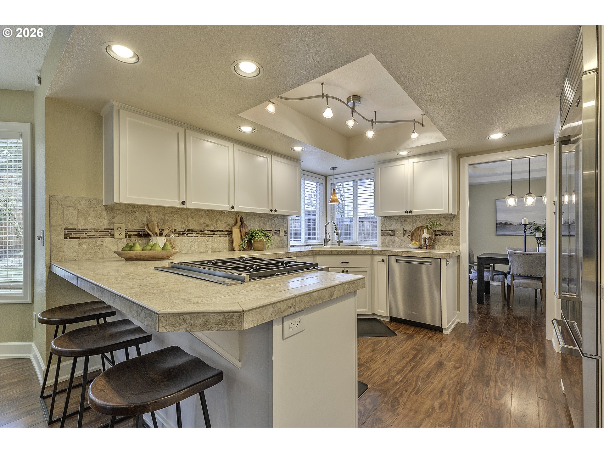 ** TWO OPEN HOUSES! SAT, 2/28 & SUN, 3/1, both days from 11:00-4:00 ** This beautiful 4-bdrm home is located on a cul-de-sac, in a sought-after neighborhood. Traditional floor plan features vaulted ceilings, large windows & architectural details. Thoughtful updates, an oversized garage & spacious backyard provide comfort & functionality. Living room w/fireplace opens to formal dining room. Kitchen w/eating bar & walk-in pantry is updated w/premium applcs including Sub-Zero refrigerator (2022), Wolf gas range (2021) & Miele dishwasher (2024). Dining nook has bay window & opens to family room w/brick fireplace & slider to backyard. Primary suite features double closets, (one is walk-in), & updated bathroom w/quartz cntrtps, dual sinks, tiled shower & free-standing tub. Fenced backyard has covered patio (2023), raised beds & sprinklers. 3-car garage. Ring doorbell. Simply safe alarm. Washer & dryer included. Gas water heater & gas furnace (2024). AC (2022). Located near schools, Jurgens park, shopping, dining & commuter transportation.