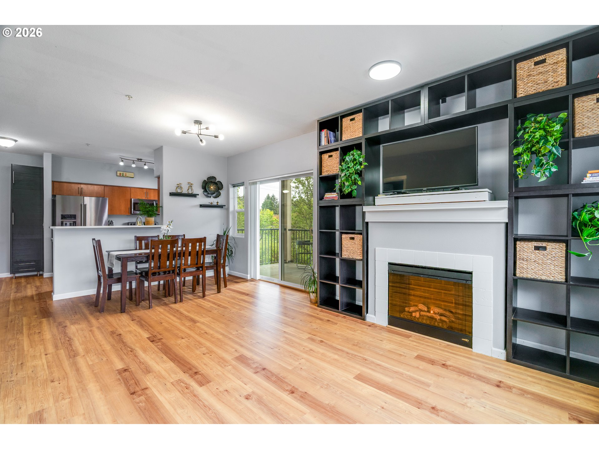 Private nature views and a garage highlight this updated 2 bed, 2 bath Hillsboro condo, backing to a quiet, tree-lined green space that offers peaceful surroundings and added privacy. Inside, you will find upgraded hardwood flooring, newer appliances installed in 2023, and a functional layout with ample storage throughout, including living room cubbies and a tall kitchen cabinet that are included for built-in organization and added value. Enjoy everyday living with serene views in a calm setting that feels tucked away while still being conveniently located. The attached garage is a standout feature with added shelving for storage and flexibility, and the building features a brand new roof installed in 2025 with the full assessment already paid, offering peace of mind for the next owner. All appliances are included in addition to the shelves. Ideally situated, this condo offers an excellent location close to shopping, great dining, and grocery options, and is just minutes to Tanasbourne Mall.
