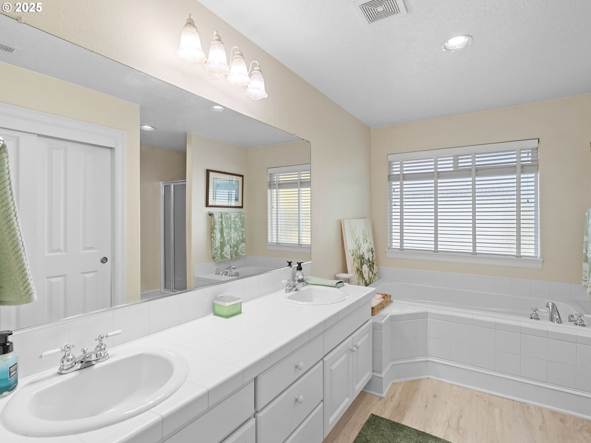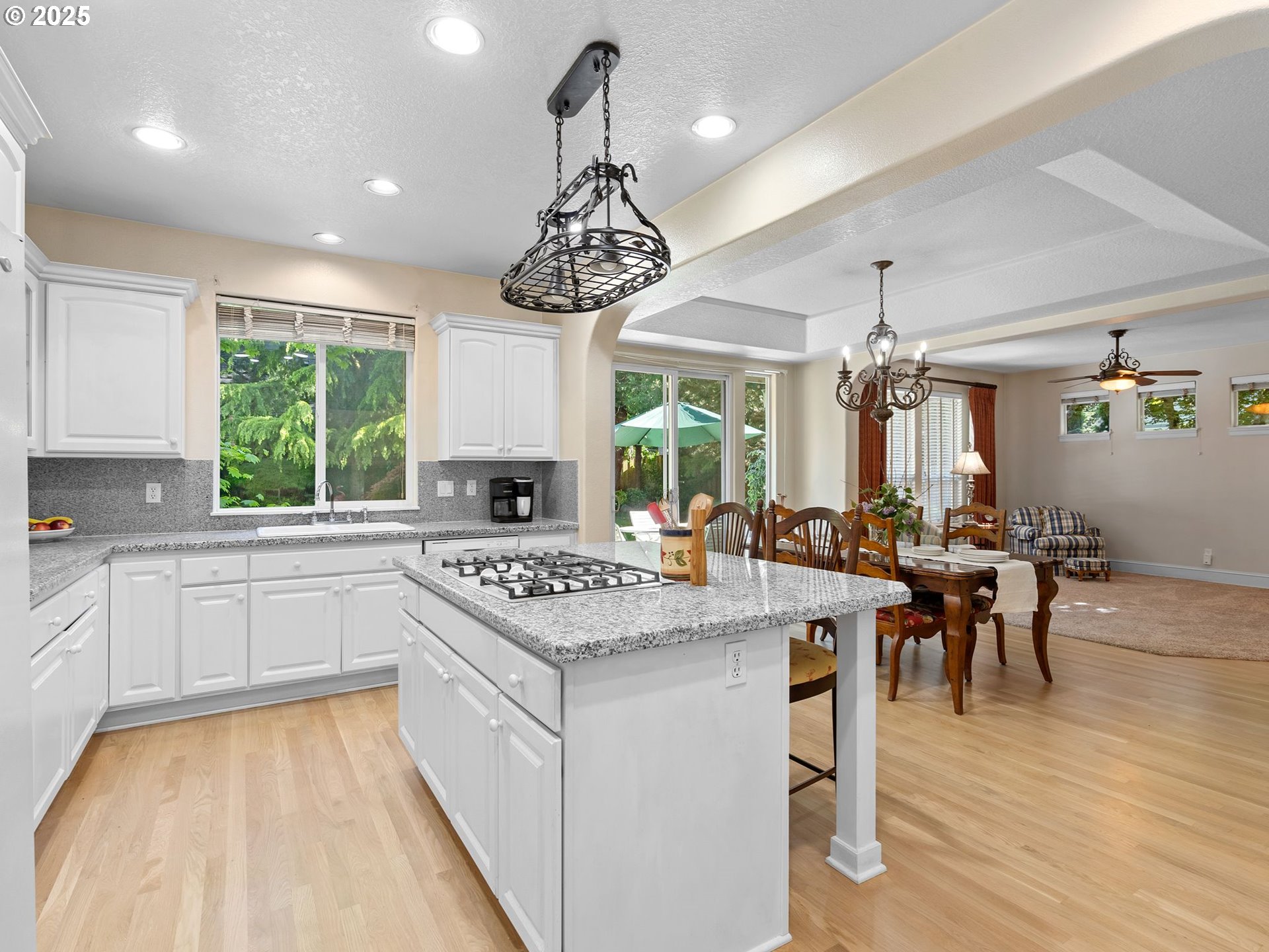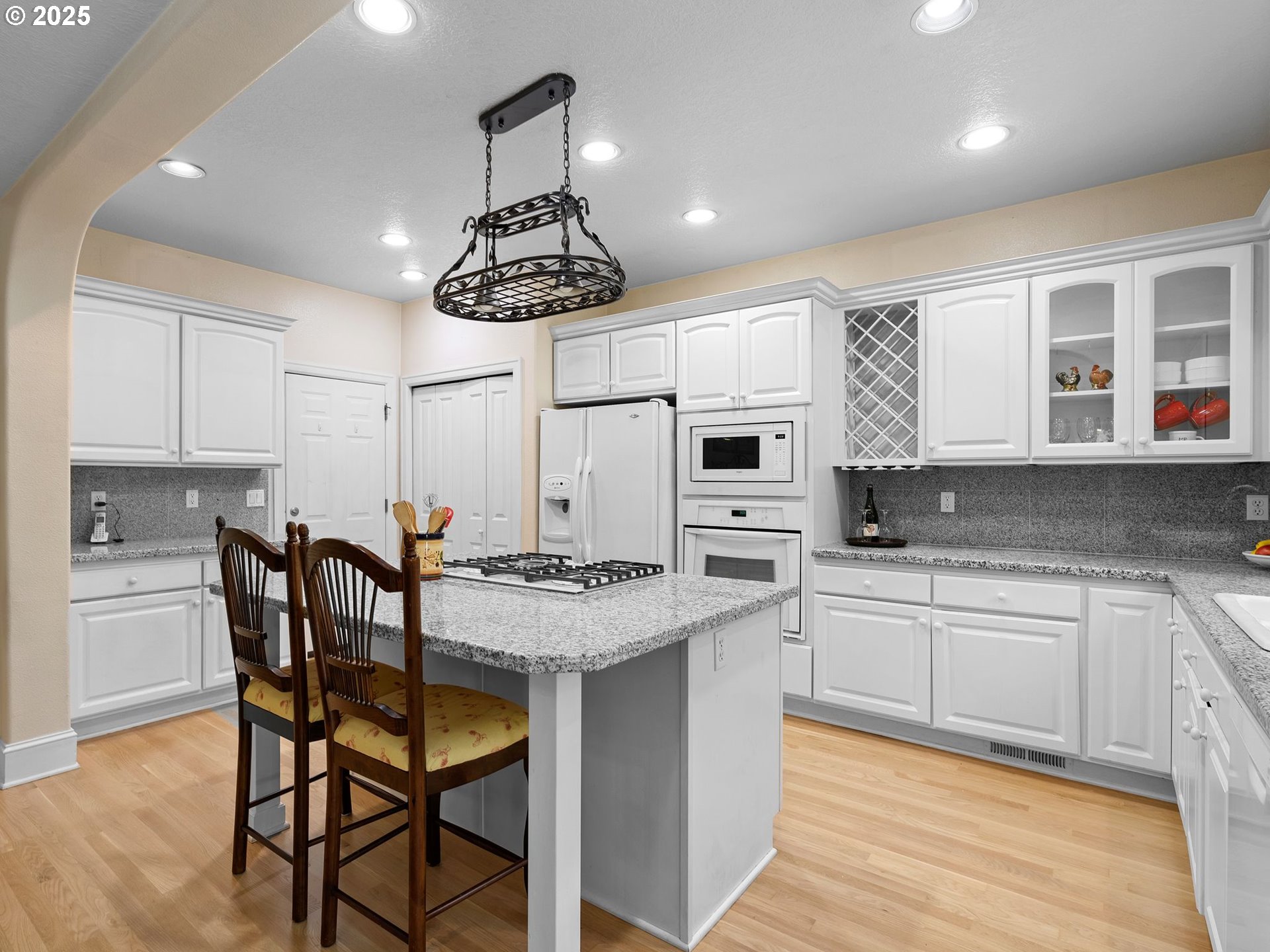 (503) 893-8874Located in desirable Lake Forest Community, The Barret Floor Plan features 3 car oversized garage, 4 bedrooms, den/family, 2 full baths, 1 half bath, 2216 square feet. Fall in love when opening the front door to the stunning larger rotunda foyer with soaring ceilings and newly refinished hardwood floors. Main level: great room concept with living, dining, den/family rm. and gourmet kitchen. Living room features a gas fireplace, high ceiling, ceiling fan, and built-in TV cabinet. Living room opens to the dining with stunning hardwood floors, coffered ceiling and access to the outside patio, perfect for outdoor entertaining. Step into the Chef’s kitchen with an abundance of cabinets, granite countertops and large pantry. Gas cook-top island, eating bar, built in oven, microwave, dishwasher and disposal. Den/Media room on main level features glass French doors, coffered ceiling, and large picture window. Second level: a stunning primary suite, 3 additional larger bedrooms, spacious hall bath, and laundry room. The primary suite is spectacular with French Doors, vaulted ceiling, ceiling fan, 2 walk-in closets, double sinks, soaker tub and shower. There are 3 other large bedrooms with fans and a laundry room that includes washer and dryer. Plantation shutters throughout, arched hallways and wide hallway upstairs. Enjoy the spacious fenced back yard with patio, side gate access, gas hook up, lush landscaping, sprinklers for easy low maintenance. 3 car garage perfect for parking and overflow storage, door to backyard. Gas forced air with air conditioning. You will not be disappointed. Extras were added to this home. Seller is open to buyer concessions.