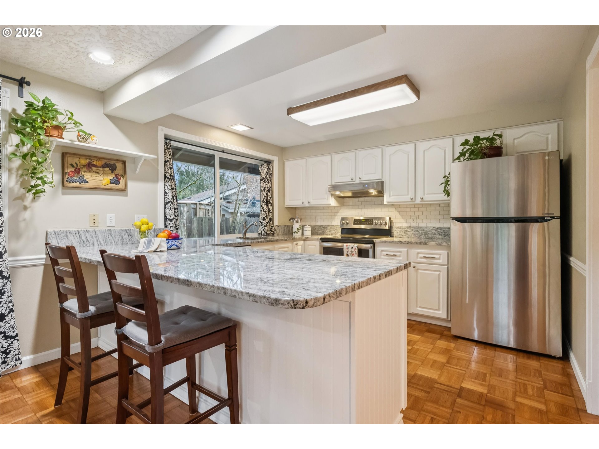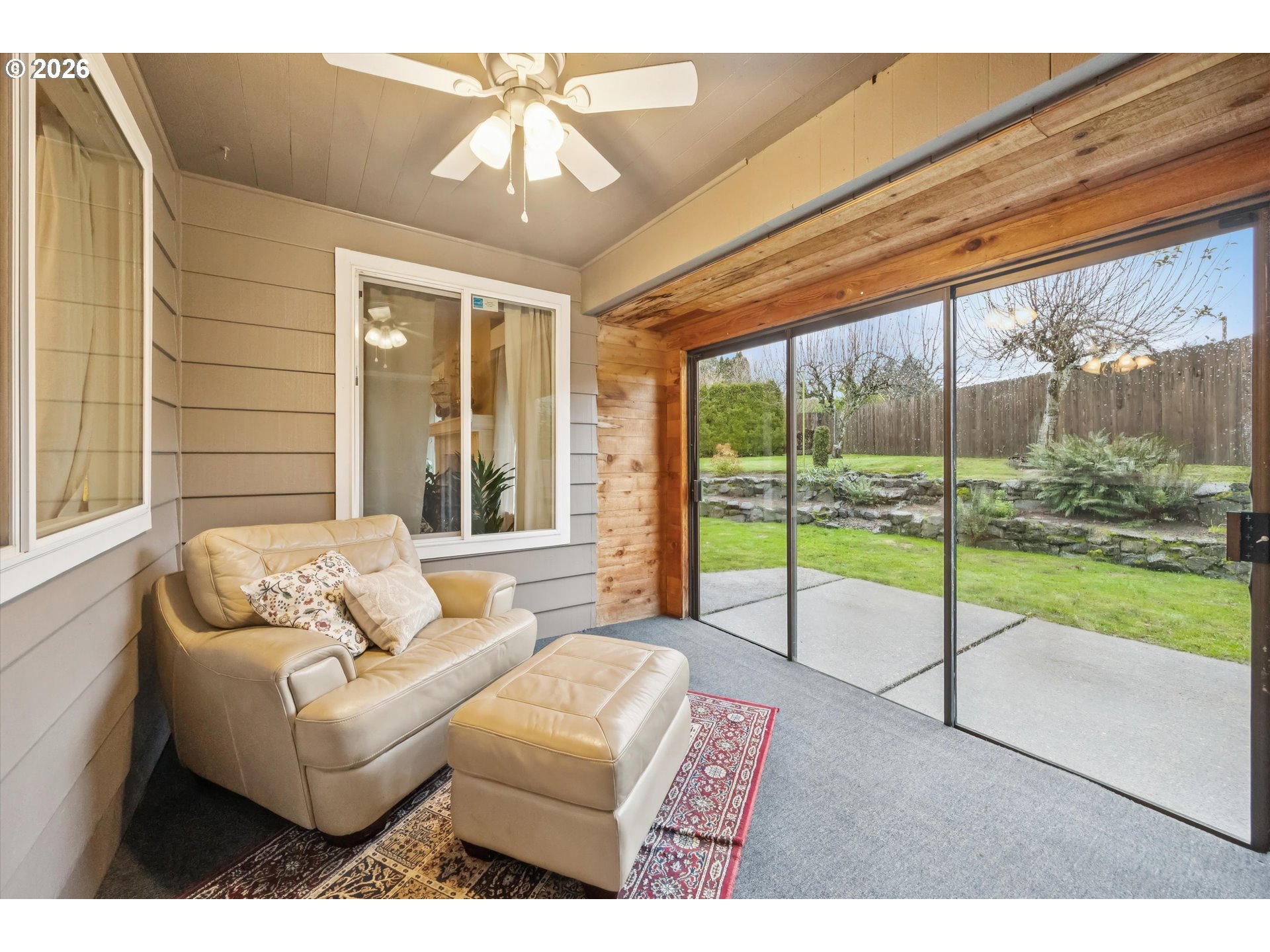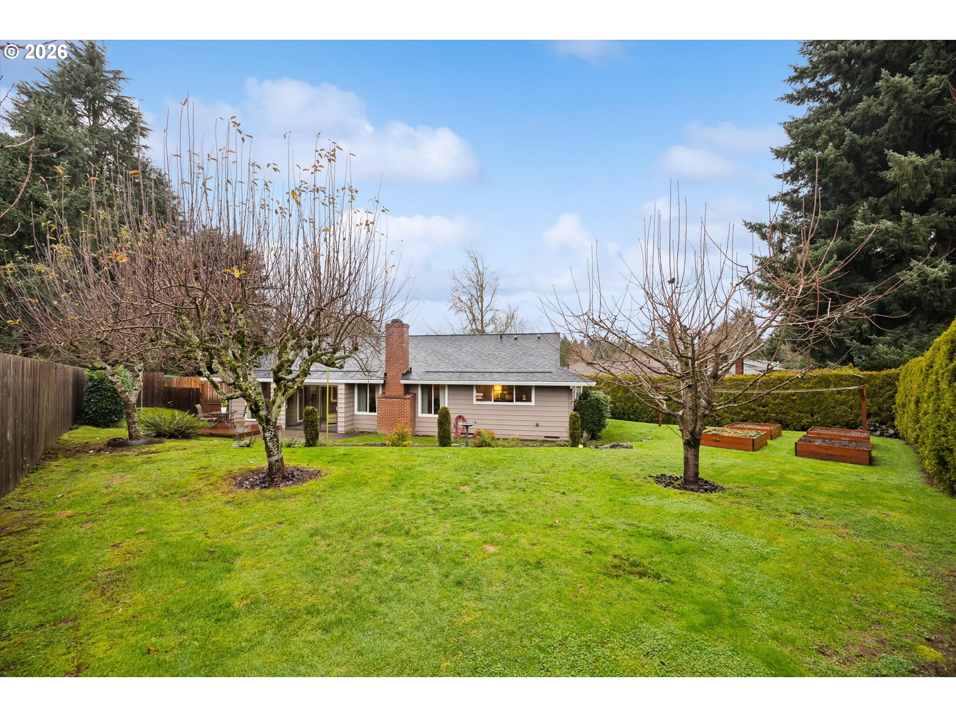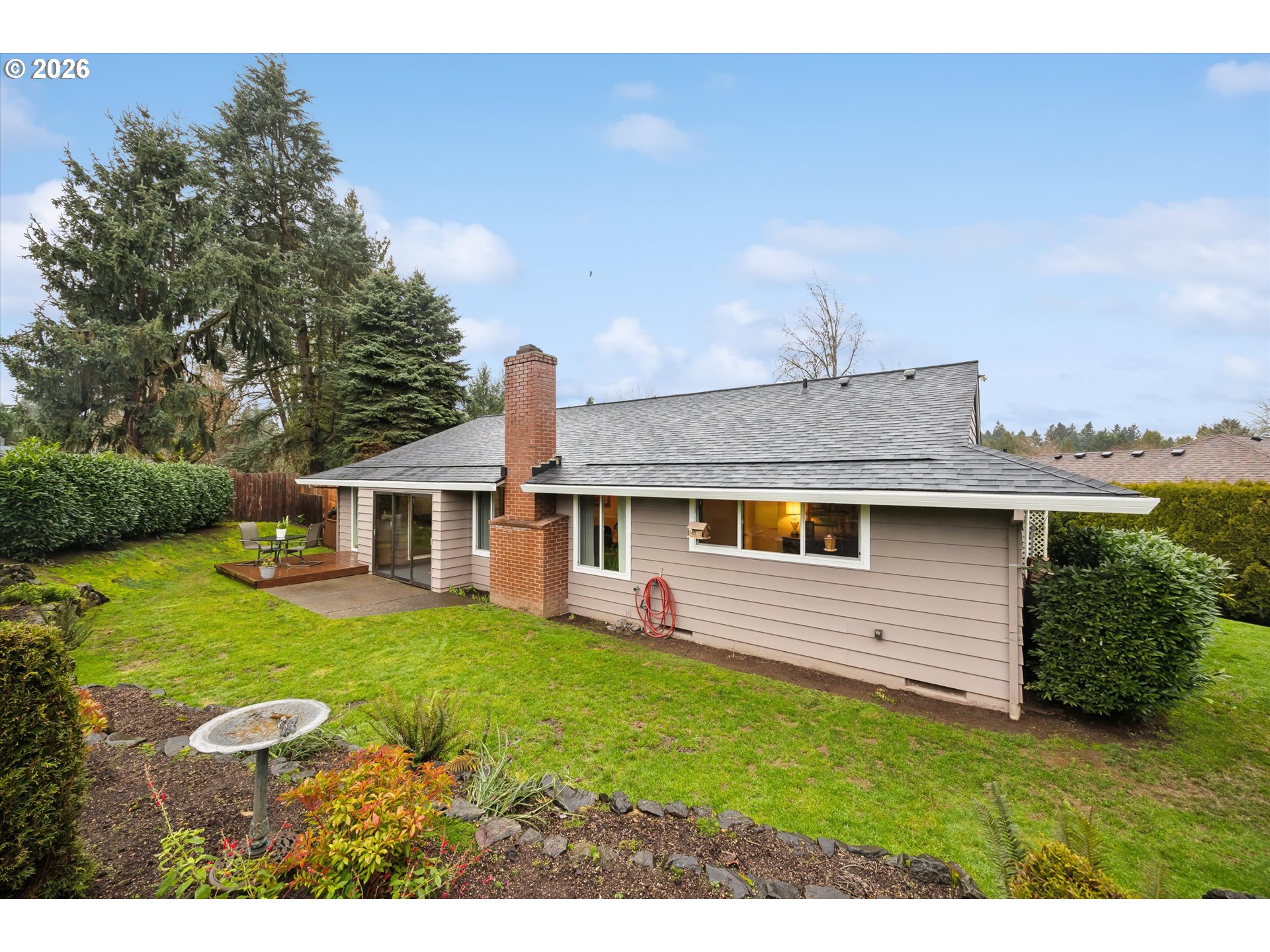 Discover the perfect blend of timeless character and thoughtful updates at 10905 SW Mira Ct. This delightful 3-bedroom, 2-bath ranch is nestled on nearly a quarter-acre at the end of a peaceful cul-de-sac in sought-after Derry Dell. The single level 1,604 sq ft gem welcomes you with gorgeous parquet floors and a perfect living area for gathering with family and friends. Enjoy the cozy, sunken living room with wood-burning fireplace flowing seamlessly into a formal dining area. The updated kitchen features granite countertops, stainless-steel appliances, and a breakfast bar open to the family room. From there, step through to the enclosed sunporch offering year-round enjoyment or head directly outside to your patio and private backyard oasis. Fully fenced with mature plantings, terraced landscaping, and trees placed perfectly to hang your hammock, this private and spacious yard is ready for your every need. Back inside, the primary suite offers an ensuite bath, while the spacious two-car garage provides ample storage. Recent improvements include a brand-new Malarkey Vista roof (2025) with transferable warranty, updated electrical panel (2023), and a freshly paved driveway. Enjoy incredible access to the Pathfinder-Genesis Trail, Fanno Creek, Woodard Park, and the Bull Mountain Farmer's Market. Minutes from downtown Tigard with easy access to Pacific Hwy and Washington Square Mall and located within Tigard, Fowler, and Tualatin High (with IB Program) school district. This home has something for everyone and is primed and ready for its next chapter.