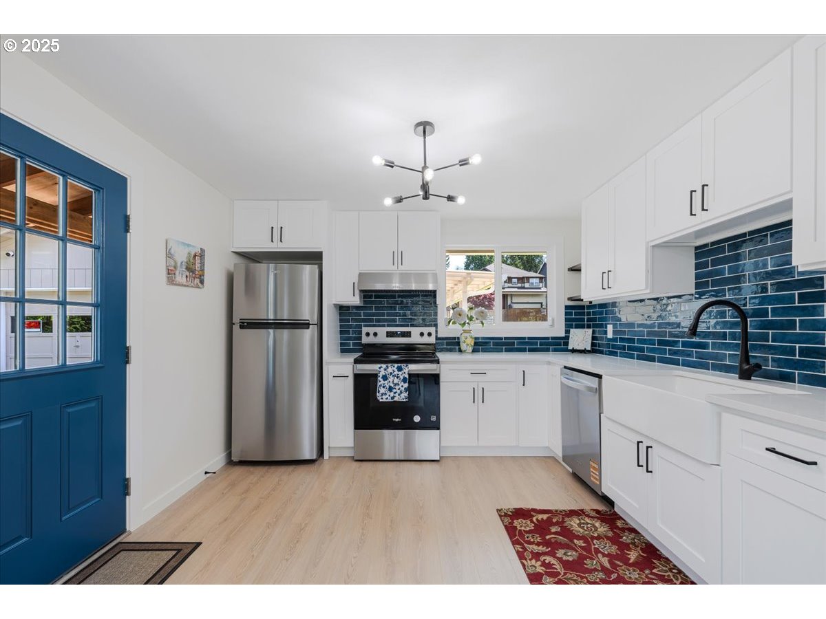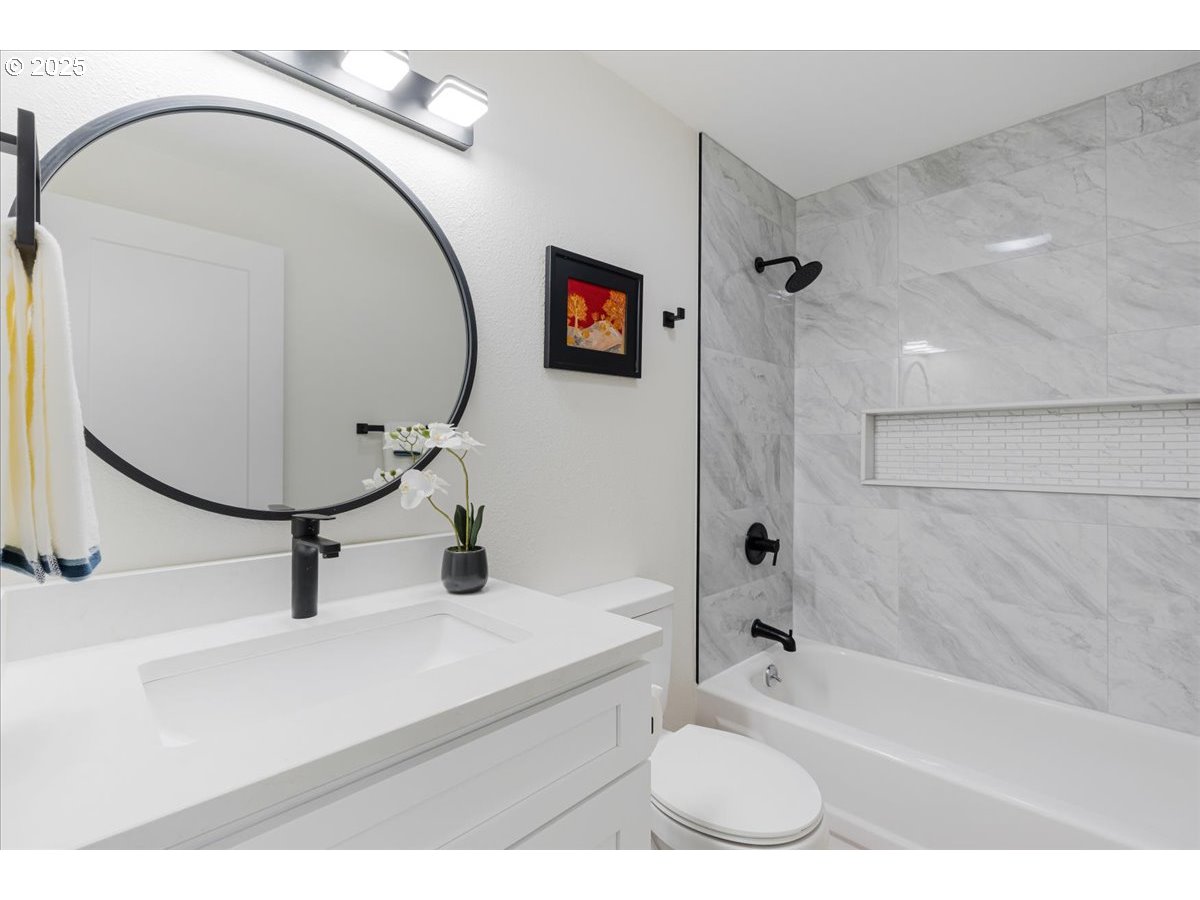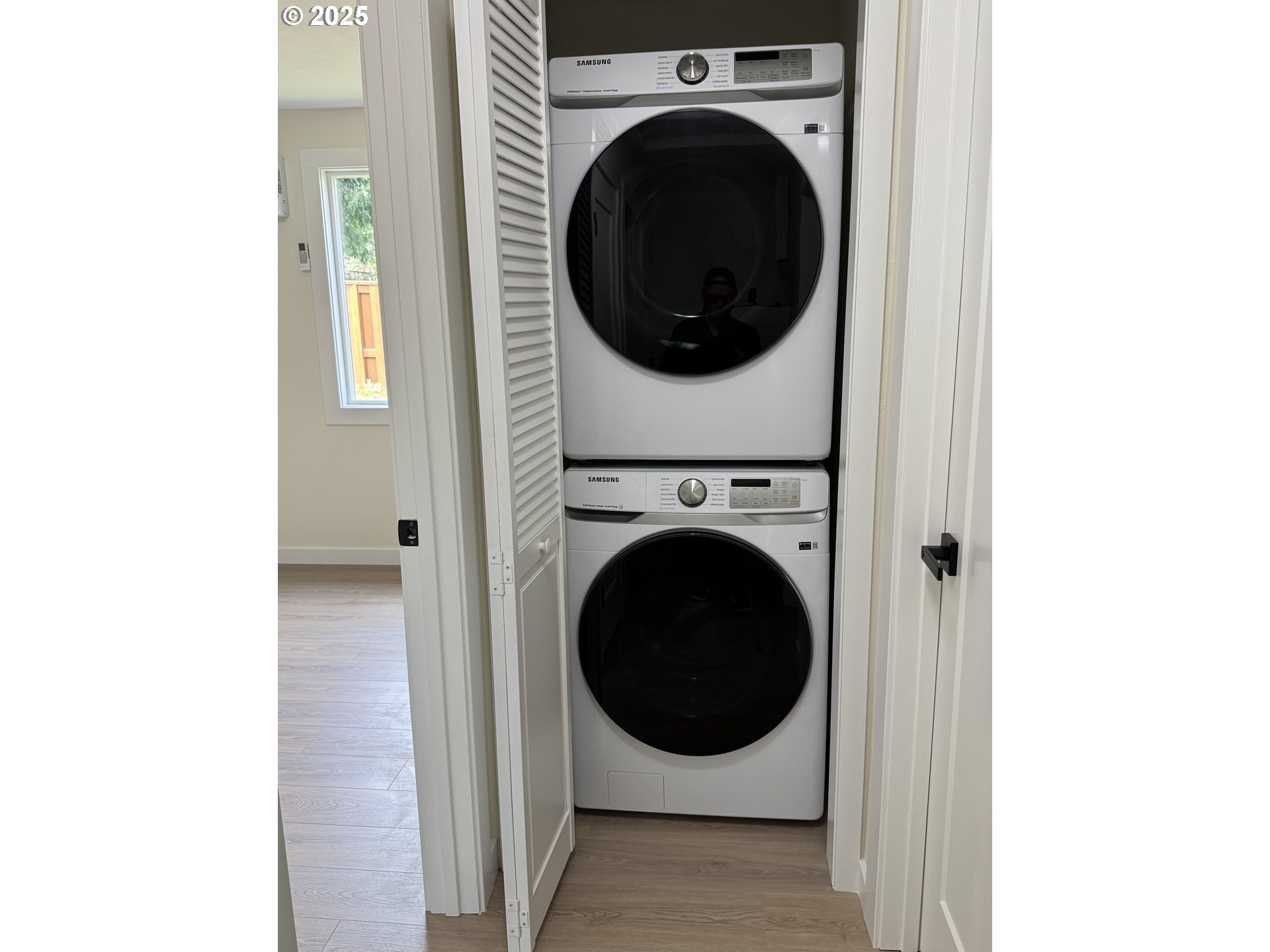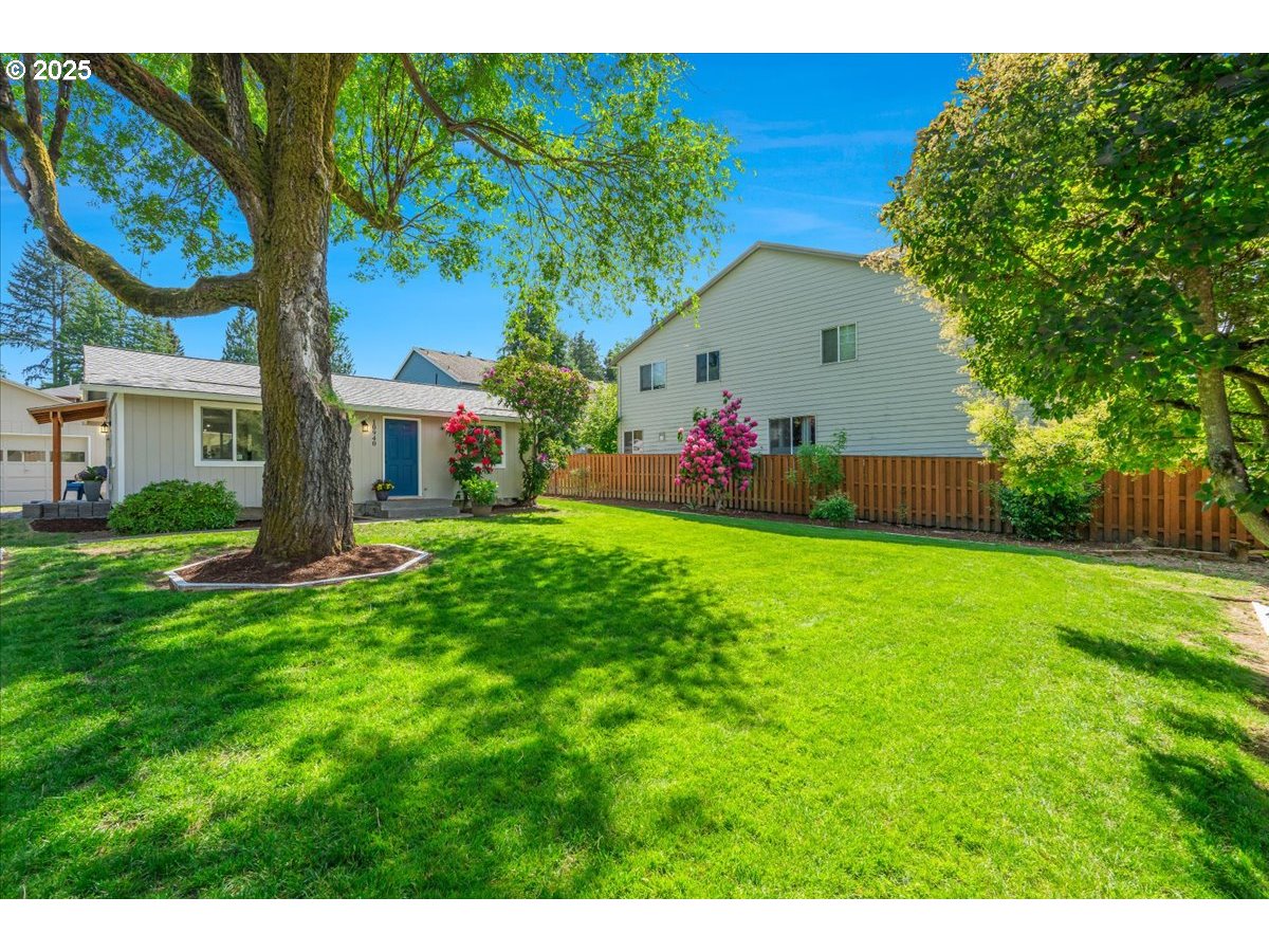 This beautifully remodeled bungalow with detached garage sits on a huge 17,000 sq foot lot. Come and see this special 2-bed, 1-bath home located in a sought-after Tigard neighborhood. Bring your dreams....add a swimming pool, or pickle-ball court, or luxury pergola for your BBQ Island. Wait.....don't build one, there is room to build it all. Check with Tigard City. Every detail of the home has been thoughtfully updated: new roof, new windows and trim on both the home and the detached 800 sq ft garage. Inside, enjoy new light oak luxury vinyl plank flooring, energy-efficient mini-split heating and cooling, and fresh interior/exterior paint throughout. The kitchen is complete with shaker cabinets, quartz countertops, and a farmhouse sink. All offset by a striking sapphire blue tile backsplash. The bathroom features custom tilework, a rain shower/tub, and a quartz-topped vanity. New kitchen appliances include a stainless steel Whirlpool fridge, stove and dishwasher. Add the new Samsung washer/dryer and this home is move in ready. The expansive detached garage was freshly painted on the interior and exterior. Garage conversion potential for an office, art studio, or gym. (buyer to verify). New R38 insulation installed in the Attic of the home. New 6 mil Crawl Space Vapor Barrier. Unbeatable location: just minutes to Washington Square shopping/restaurants, Whole Foods, New Seasons, Safeway, and Fanno Creek walking trails. This property delivers. Come and see a beautifully finished home and detached garage on an expansive property in a great location.