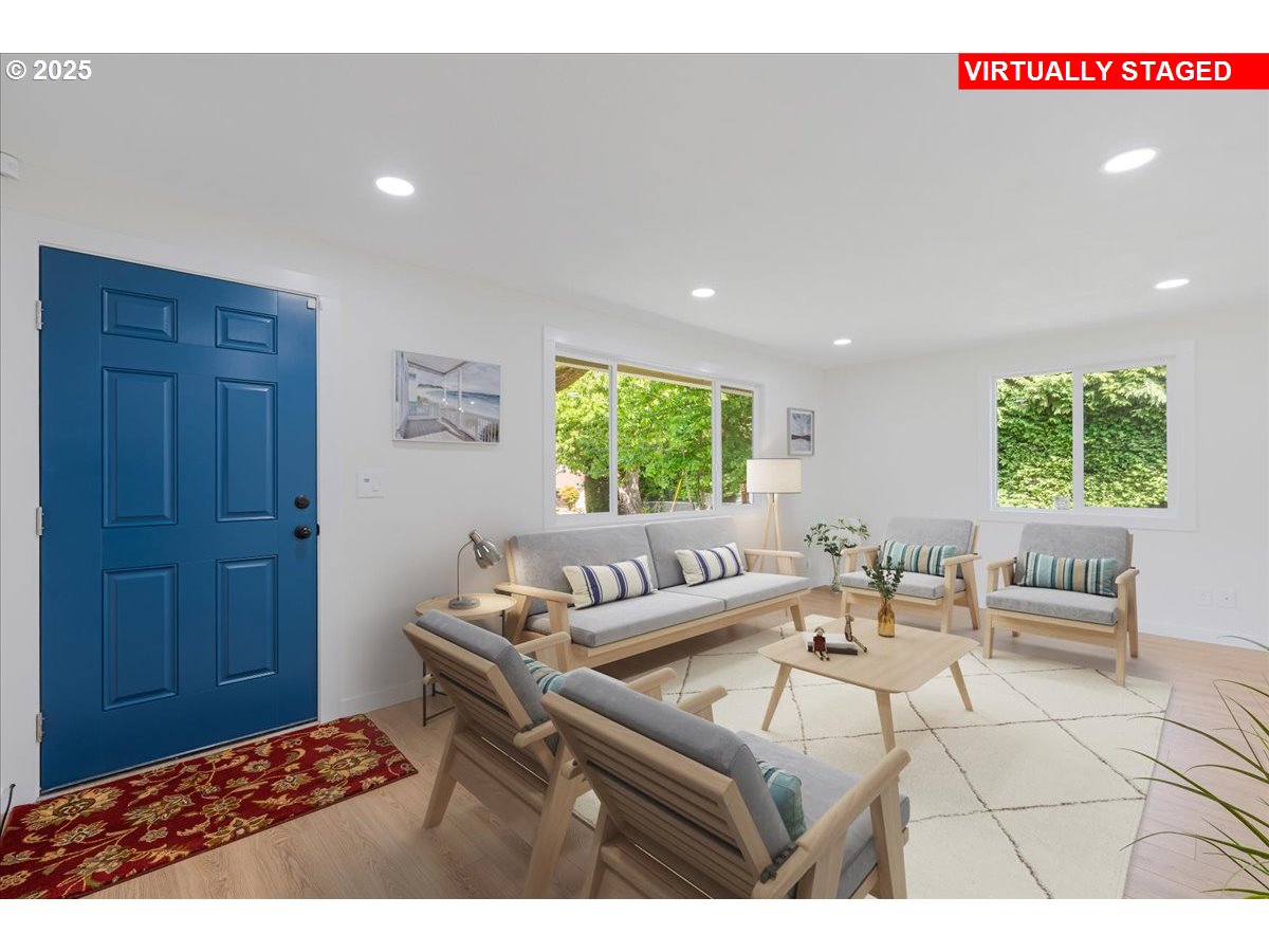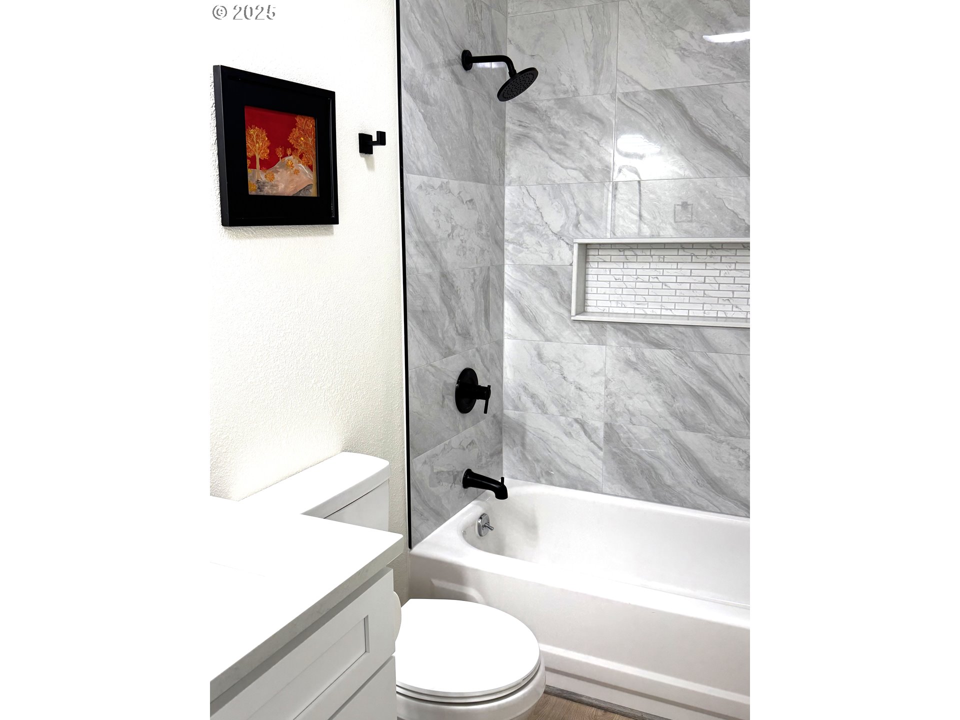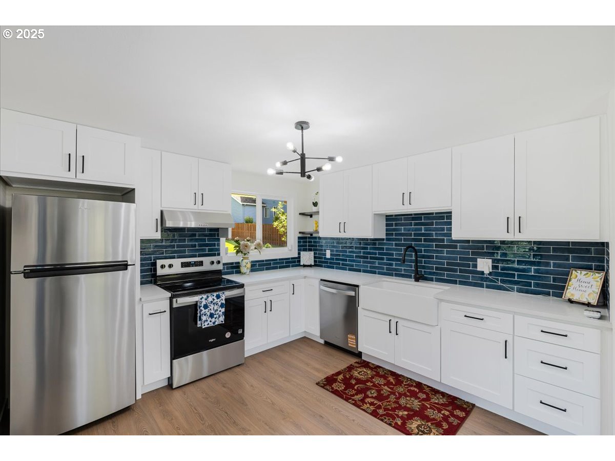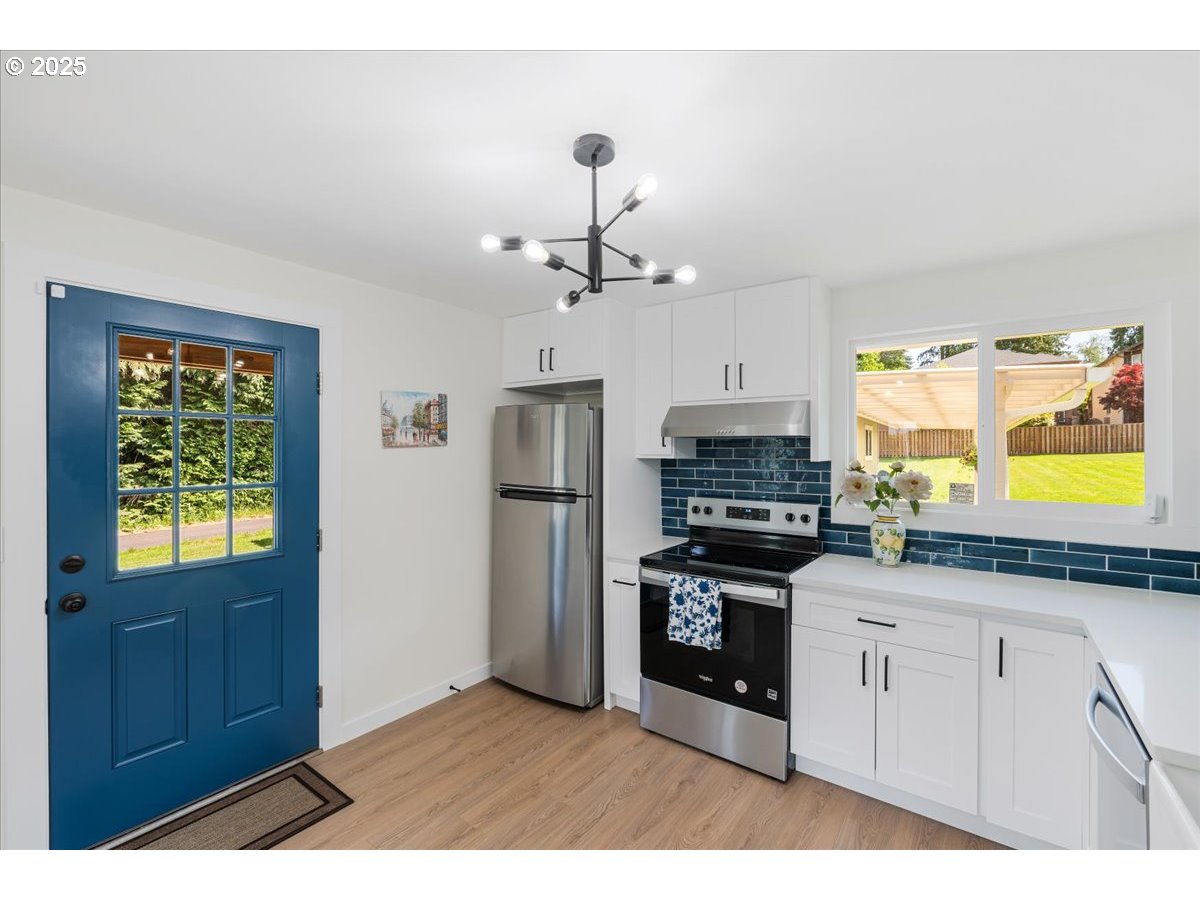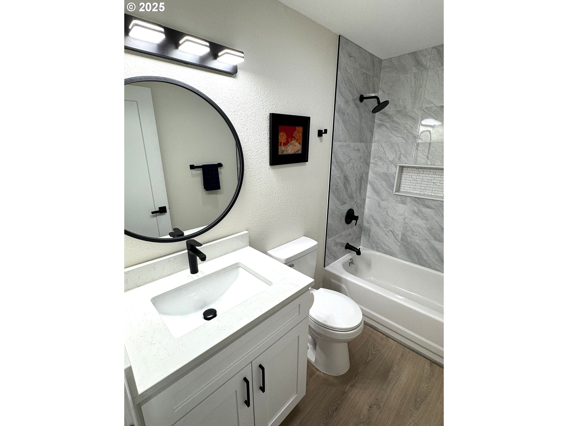 This beautifully remodeled bungalow with detached garage sits on a huge 17,000 sq foot lot. Come and see this special 2-bed, 1-bath home located in a sought-after Tigard neighborhood. Bring your dreams....add a swimming pool, or pickle-ball court, or luxury pergola for your BBQ Island. Wait.....don't build one, there is room to build it all. Check with Tigard City. Every detail of the home has been thoughtfully updated: new roof, new windows and trim on both the home and the detached 800 sq ft garage. Inside, enjoy new light oak luxury vinyl plank flooring, energy-efficient mini-split heating and cooling, and fresh interior/exterior paint throughout. The kitchen is complete with shaker cabinets, quartz countertops, and a farmhouse sink. All offset by a striking sapphire blue tile backsplash. The bathroom features custom tilework, a rain shower/tub, and a quartz-topped vanity. New kitchen appliances include a stainless steel Whirlpool fridge, stove and dishwasher. Add the new Samsung washer/dryer and this home is move in ready. The expansive detached garage was freshly painted on the interior and exterior. Garage conversion potential for an office, art studio, or gym. (buyer to verify). New R38 insulation installed in the Attic of the home. New 6 mil Crawl Space Vapor Barrier. Unbeatable location: just minutes to Washington Square shopping/restaurants, Whole Foods, New Seasons, Safeway, and Fanno Creek walking trails. This property delivers. Come and see a beautifully finished home and detached garage on an expansive property in a great location.