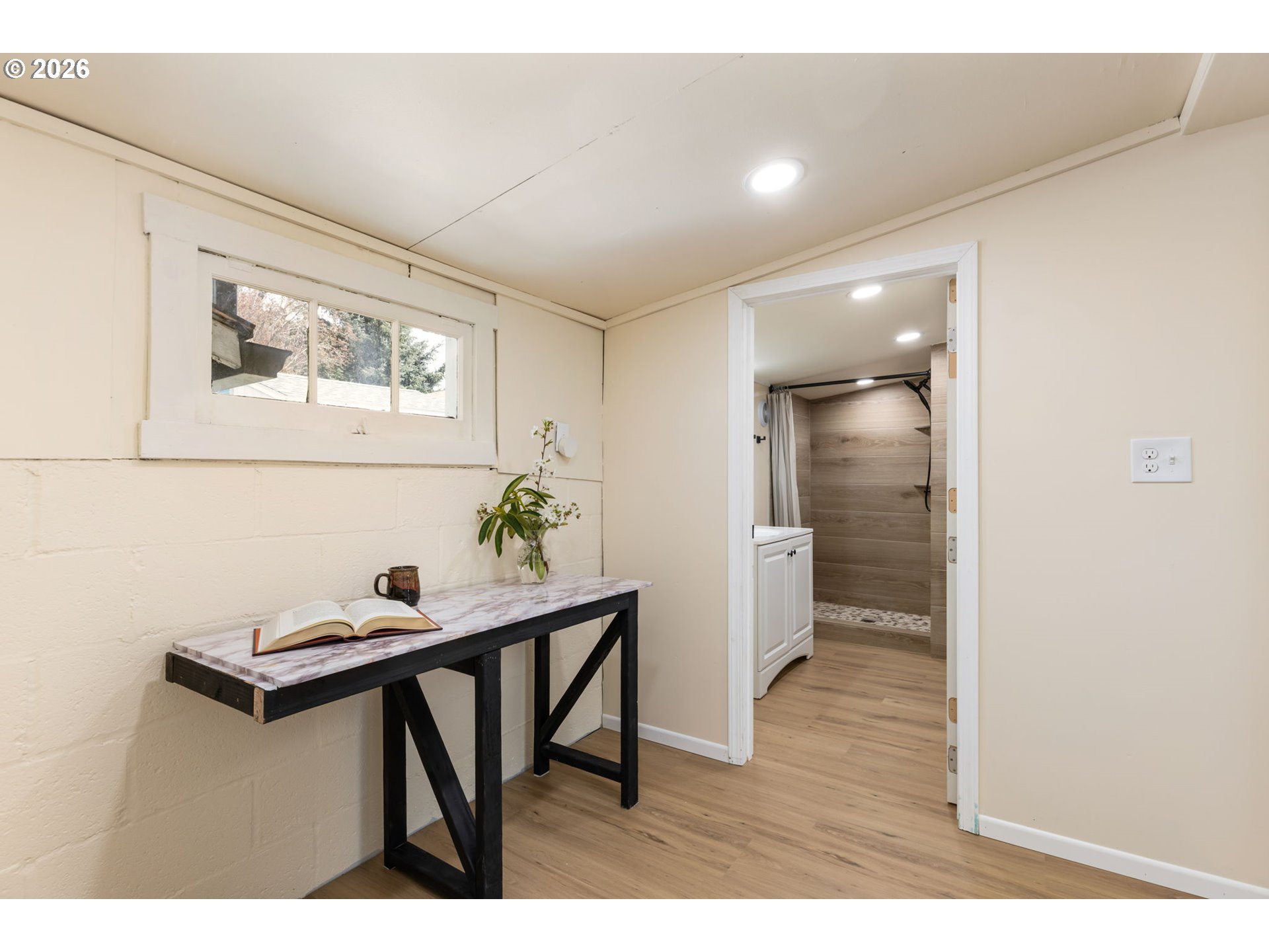 Charming, one level cottage thoughtfully updated and improved! This retro cutie has three bedrooms, two full bathrooms, expanded closets, new LVP flooring, and fresh paint. Bonus room with cozy stove, that looks like a woodstove but with the convenience of gas. Large, fully fenced, level backyard with shed and paver patio. Parking for multiple cars. Excellent location in downtown Hillsboro, close to dining, shopping and commuter routes. [Home Energy Score = 1. HES Report at https://rpt.greenbuildingregistry.com/hes/OR10201885]