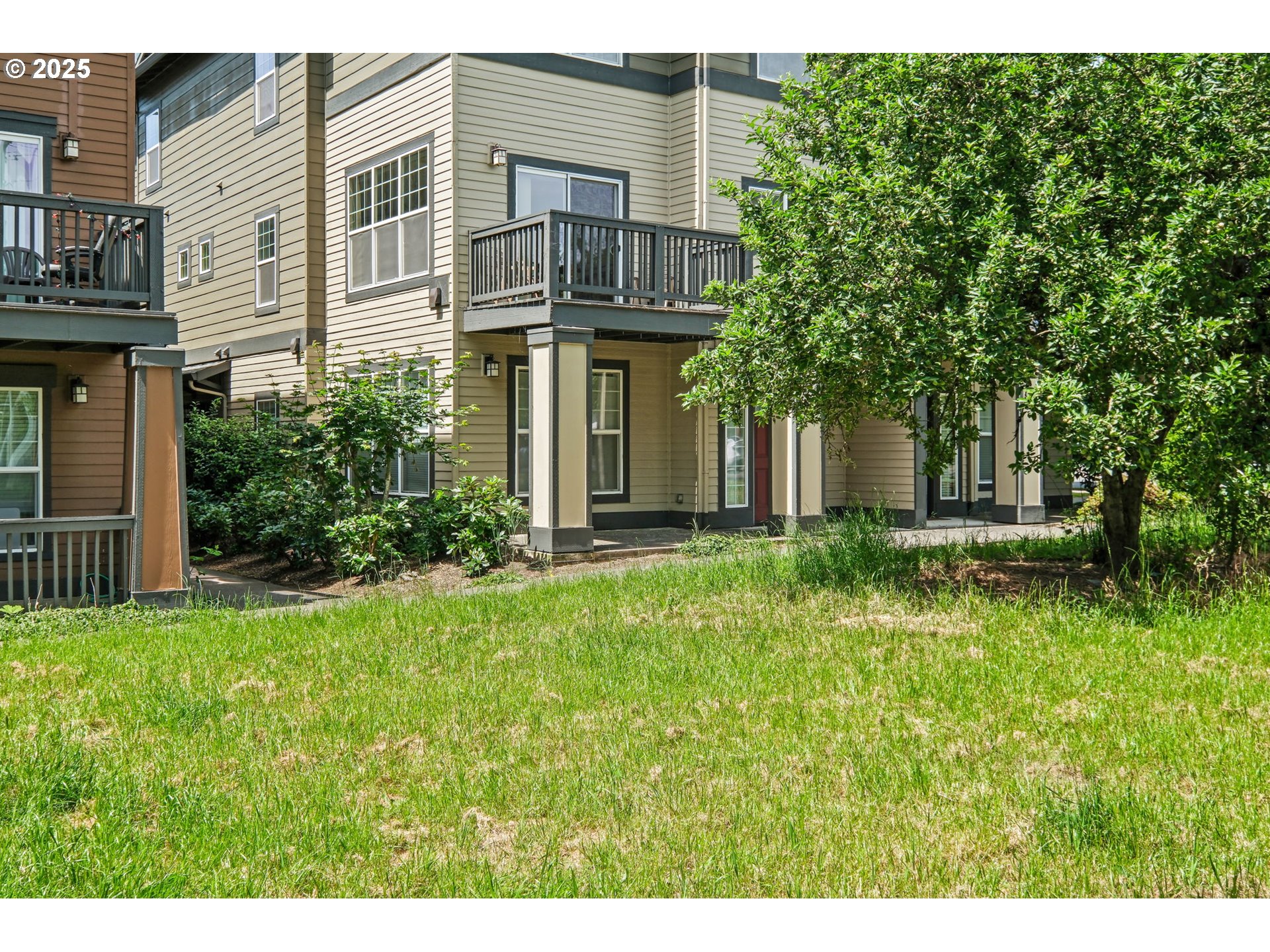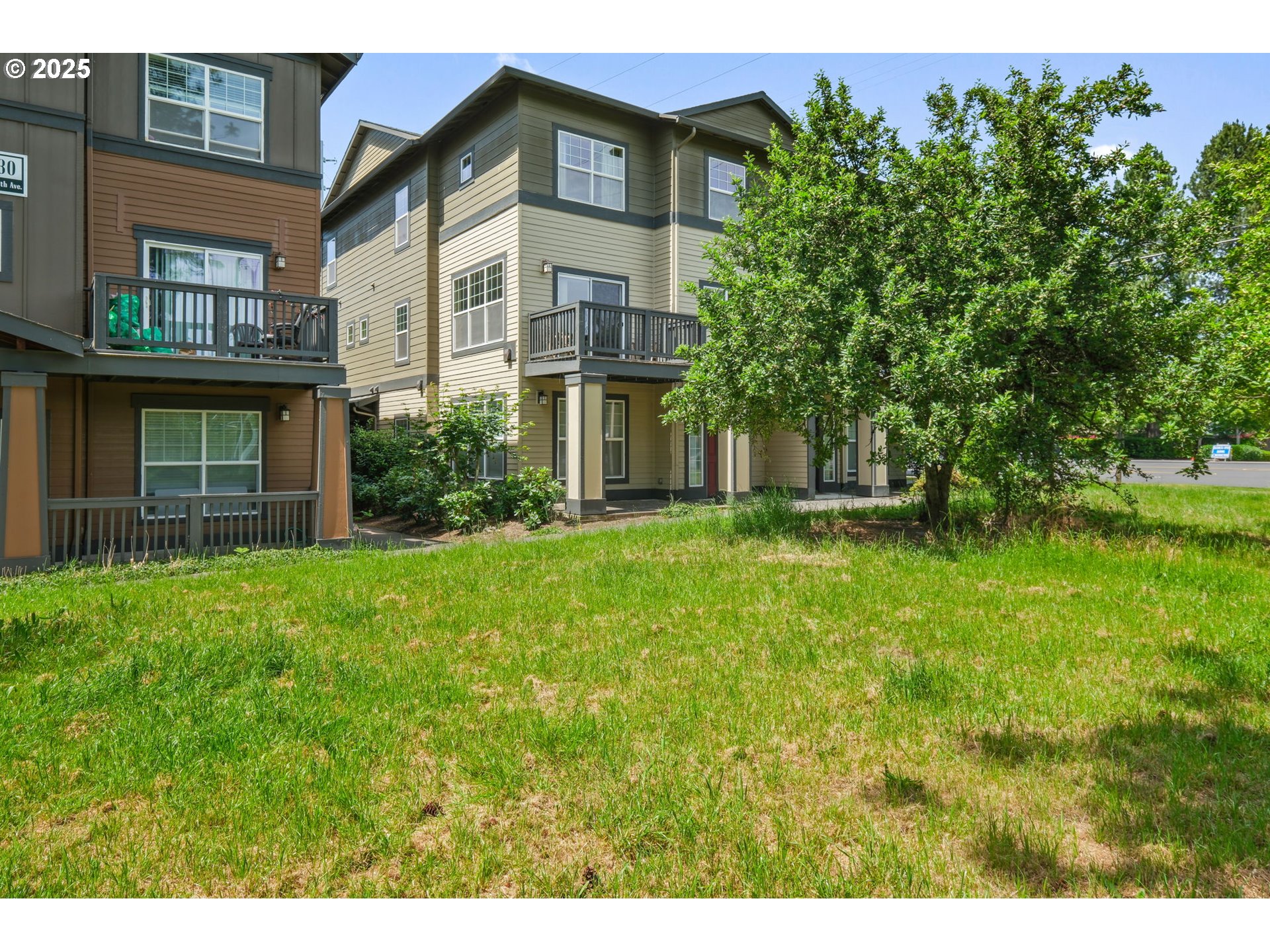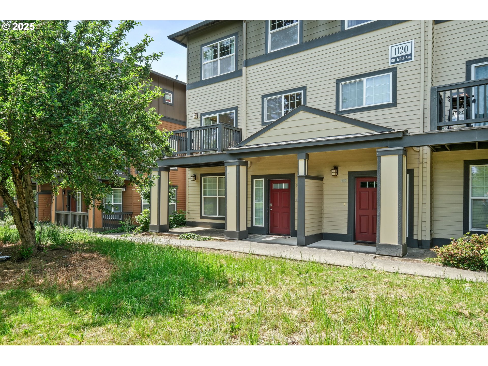 End-unit townhouse-style condo with open floor plan bathed in natural light, highlighting quality finishes and modern comfort. Kitchen has granite tile counters, stainless steel appliances, and a large island. Living room features a gas fireplace and large ceilings. Balcony off the dining room overlooking greenspace. Spacious bedrooms and vaulted ceilings on the upper floor. Conveniently located near MAX station, parks, athletic center, Nike HQ, shops, and restaurants.