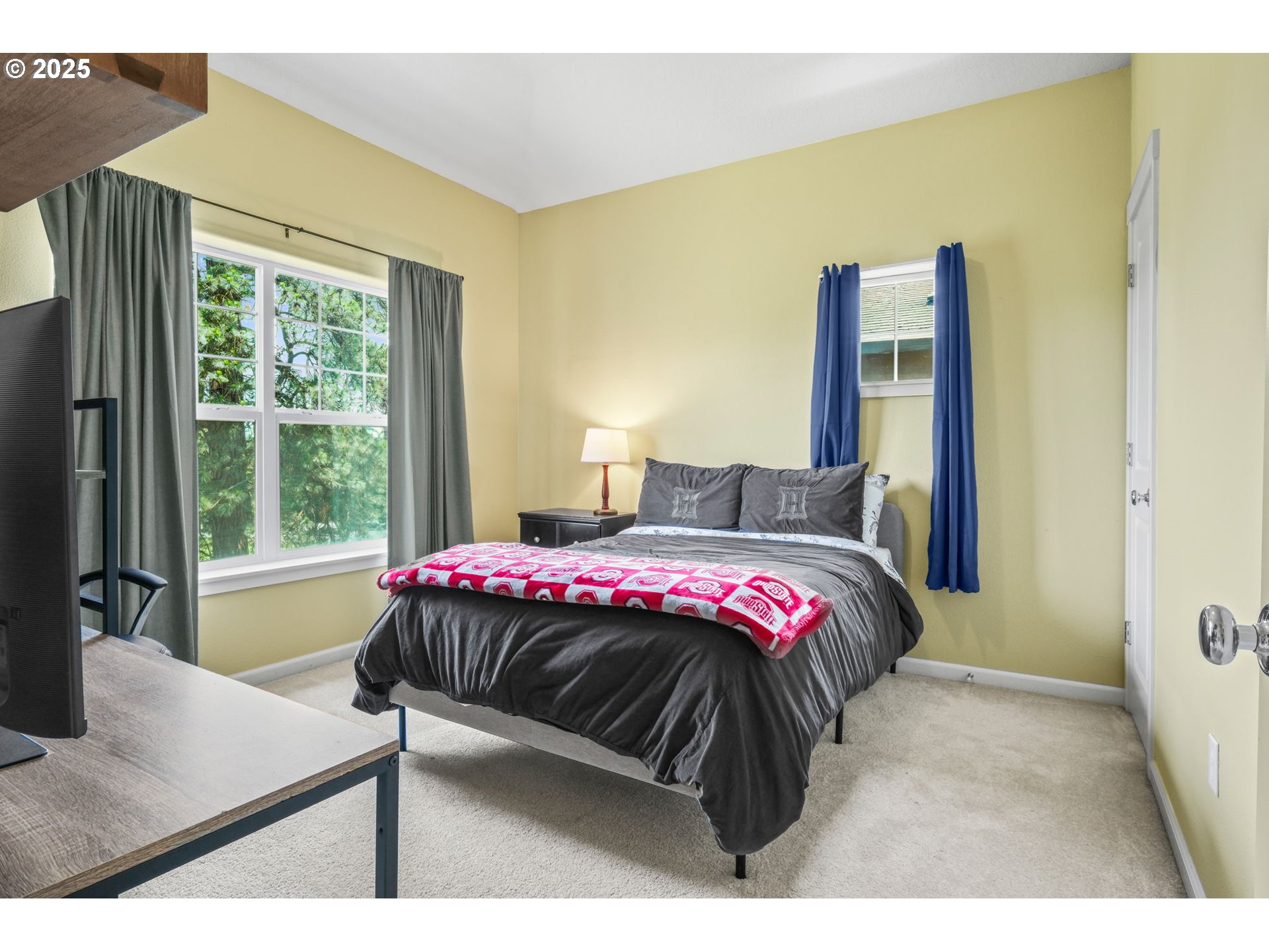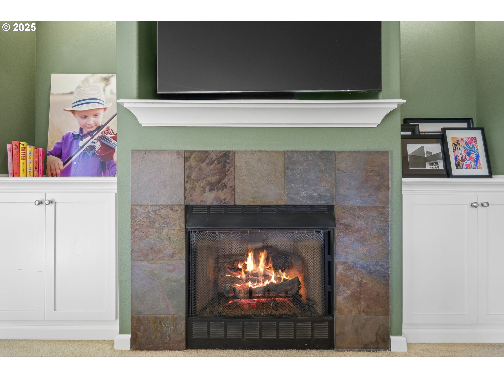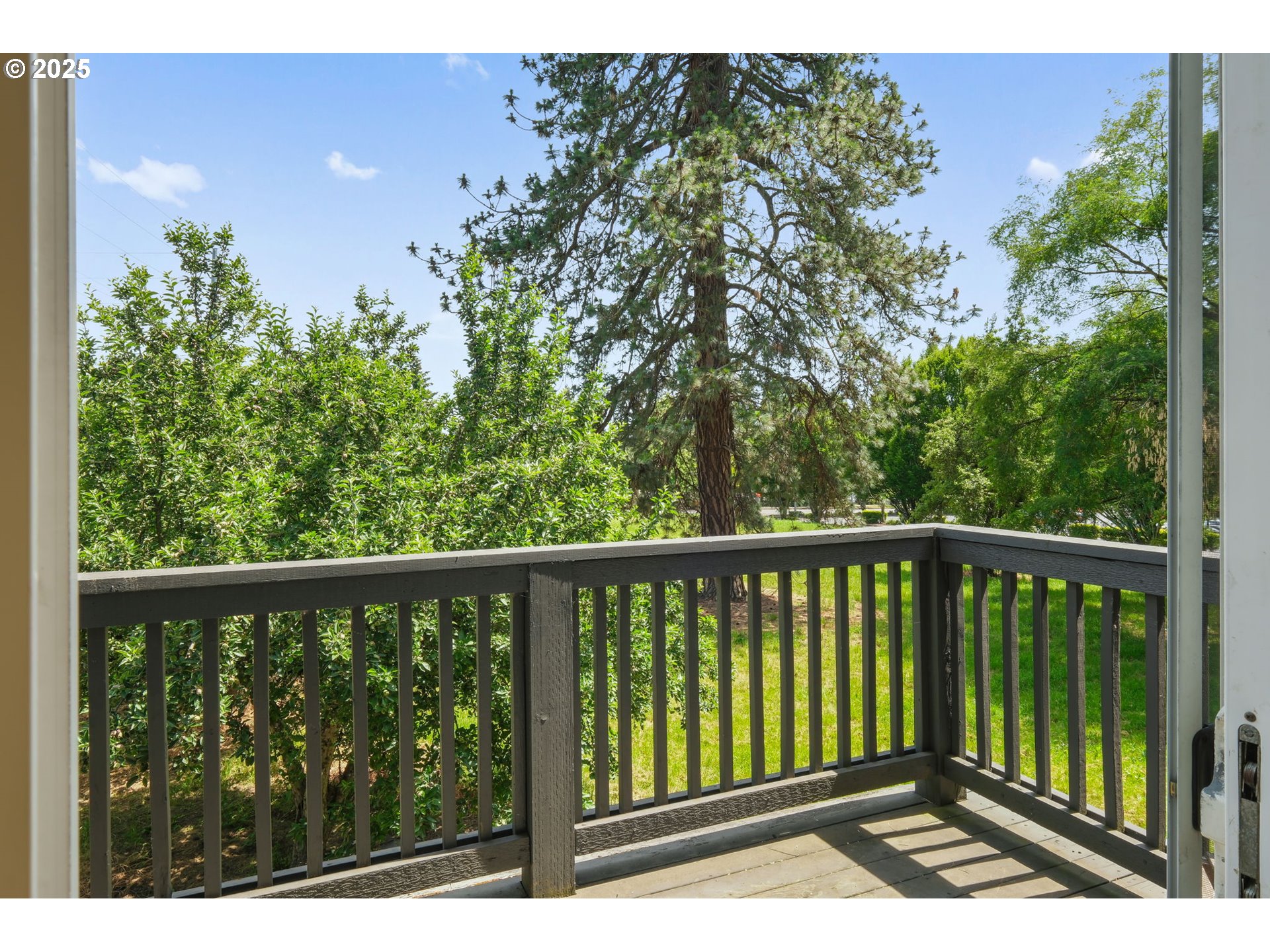 End-unit townhouse-style condo with open floor plan bathed in natural light, highlighting quality finishes and modern comfort. Kitchen has granite tile counters, stainless steel appliances, and a large island. Living room features a gas fireplace and large ceilings. Balcony off the dining room overlooking greenspace. Spacious bedrooms and vaulted ceilings on the upper floor. Conveniently located near MAX station, parks, athletic center, Nike HQ, shops, and restaurants.