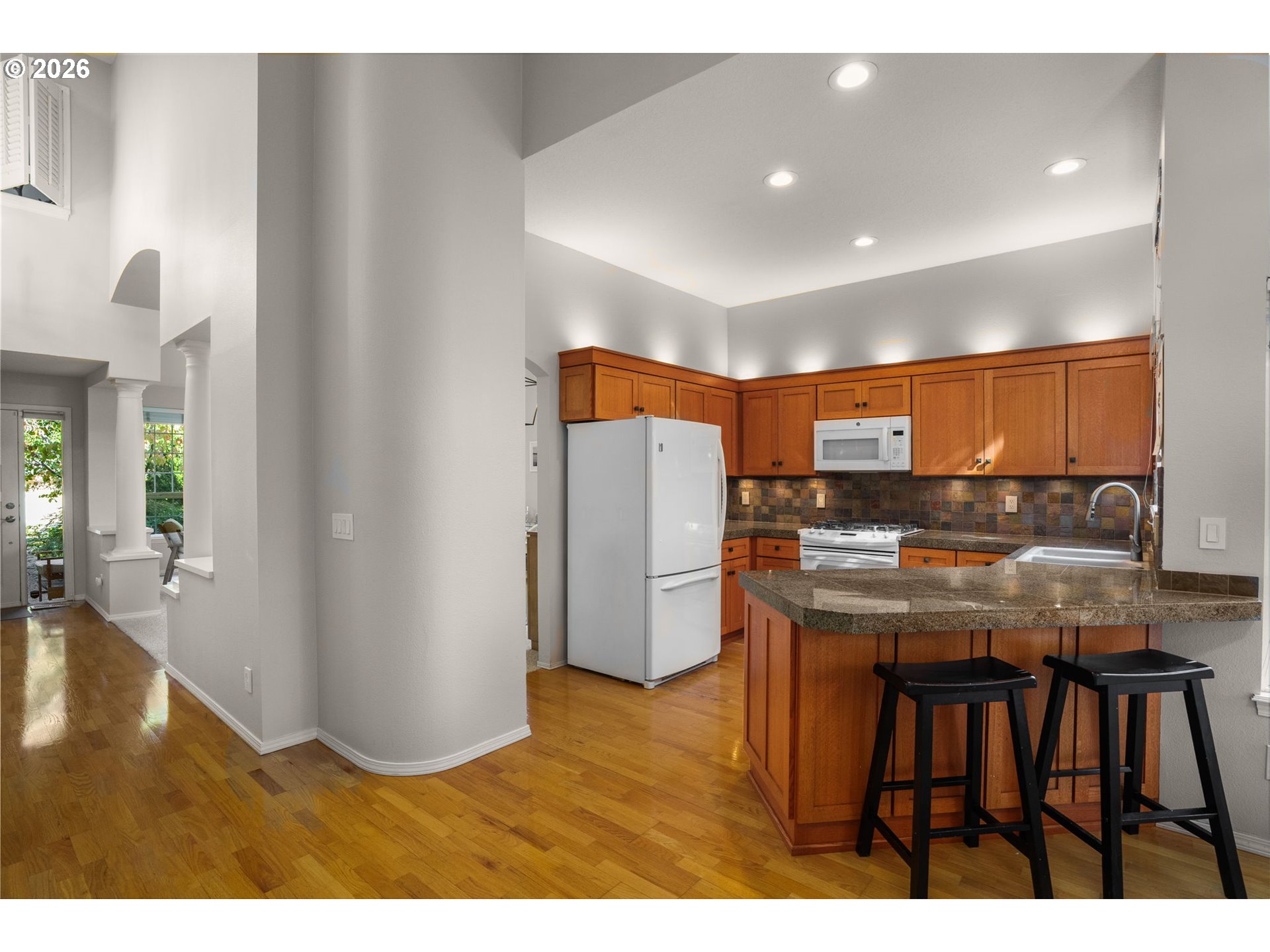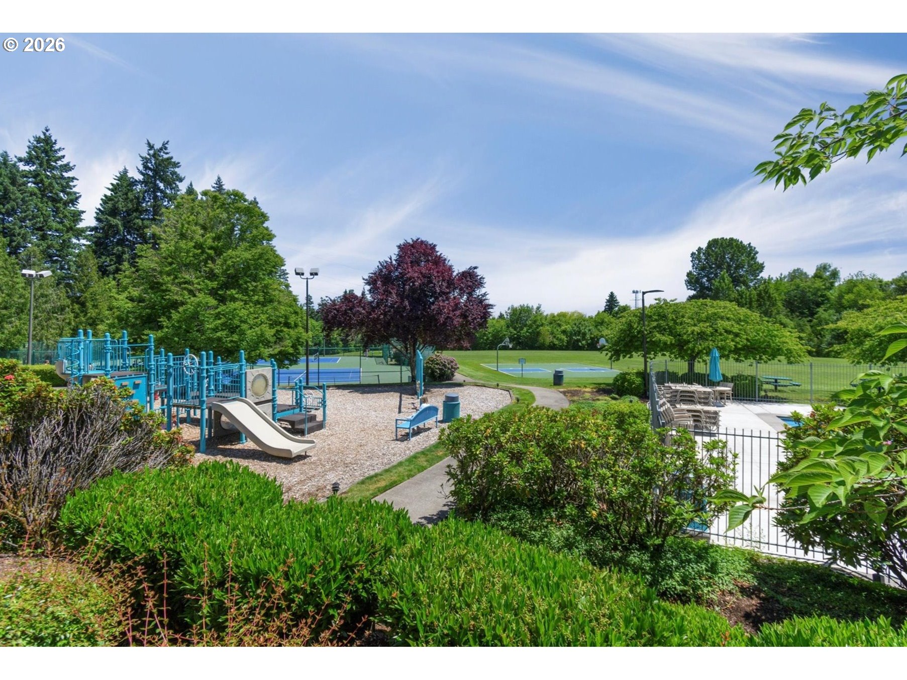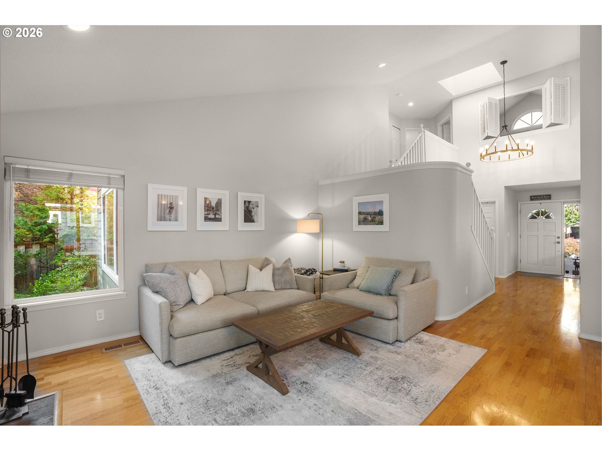 ***OPEN HOUSE - THIS SUNDAY, 4/26 FROM 1-3PM*** Coveted Murrayhill home with a stunning main-level primary suite! This residence lives larger than its square footage with soaring vaulted ceilings, an open floor plan, and abundant natural light. The main level offers a spacious living room flowing into the formal dining area—perfect for entertaining or quiet evenings at home. At the heart of the home, the great room combines a cozy family room with wood-burning fireplace and a well-appointed kitchen featuring granite counters, generous storage, and a breakfast nook. A slider opens to the back deck, ideal for grilling and al fresco dining.mThe private main-level primary suite is a true retreat with vaulted ceilings, tall windows overlooking the backyard, and an updated spa-like ensuite with soaking tub, walk-in shower, and large walk-in closet. Second floor features 1 full bathroom, and 2 nicely sized bedrooms with one of the rooms currently used as a home office. Step outside to your professionally landscaped oasis, inspired by Japanese gardens. Multiple seating areas, a tranquil fountain, and year-round plantings create a low-maintenance yet stunning outdoor retreat. Location is unbeatable—enjoy strolls to restaurants and coffee via neighborhood paths, with quick access to Scholls Ferry for an easy commute. BONUS: The Murrayhill HOA offers swimming pools, pickleball and tennis courts, playgrounds, walking trails, a hot tub, and a recreation room!