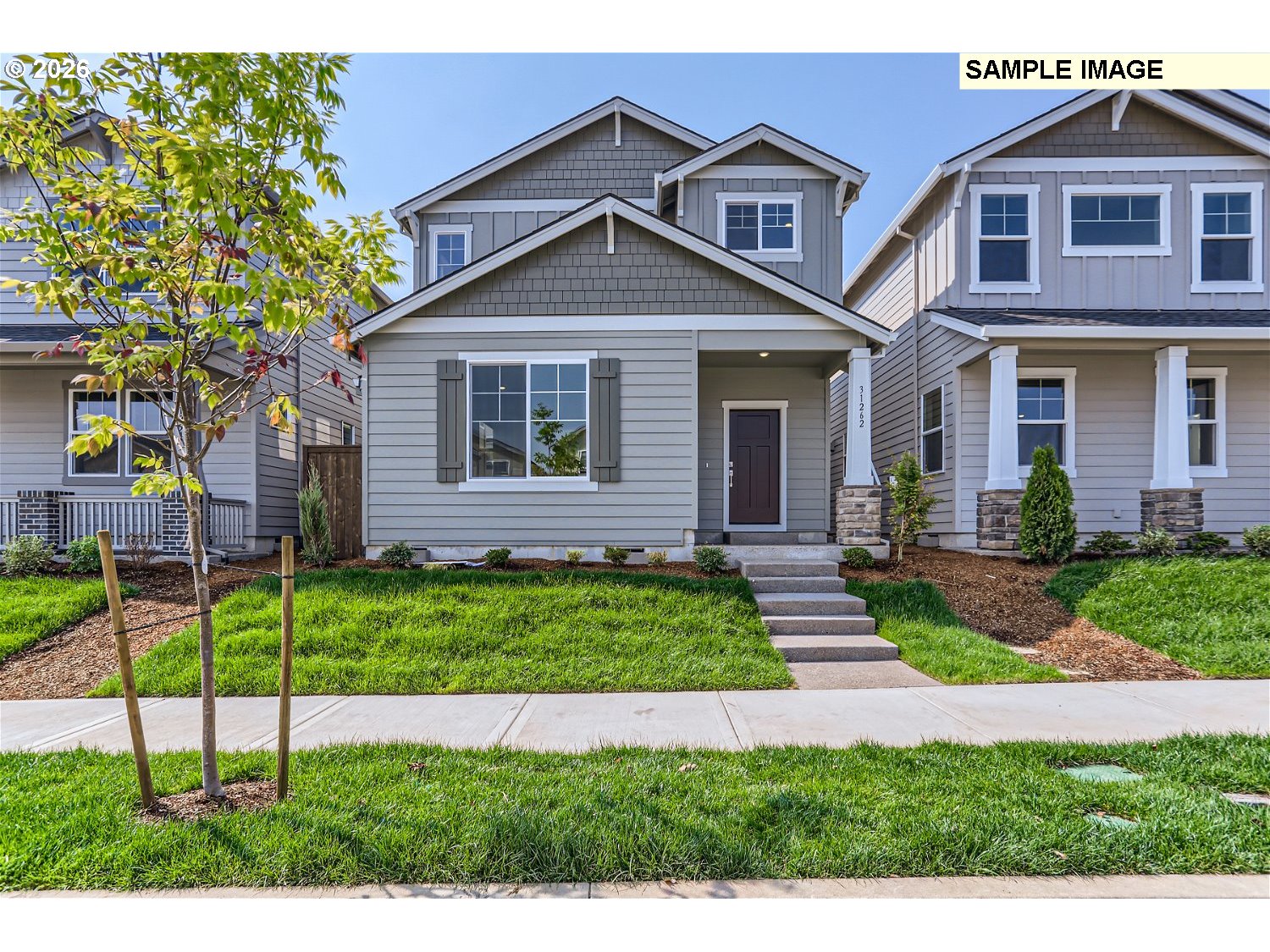 Welcome to Brynhill by Lennar and the Savoie plan in beautiful North Plains. This two-story home features a spacious open floorplan on the first level where the great room with a cozy fireplace, U-shaped kitchen with island, and dining nook create a comfortable gathering space with direct access to a covered patio for outdoor enjoyment. Upstairs are four bedrooms, including a generous primary suite with a private en-suite bath featuring a double vanity, separate shower and soaking tub, and a walk-in closet. Interior highlights include quartz countertops, Shaker-style cabinets, LVP (luxury vinyl plank) flooring in the kitchen and entryway, and LVT (luxury vinyl tile) flooring in the baths. This home also includes central air conditioning, a refrigerator, washer and dryer, and blinds—all at no extra cost! This brand-new community offers multiple onsite parks with pickleball, basketball, a putting green, a cornhole area, playgrounds, and picnic areas. Rendering is artist conception only. Photos are of a similar home, features and finishes will vary. Homesite 450.