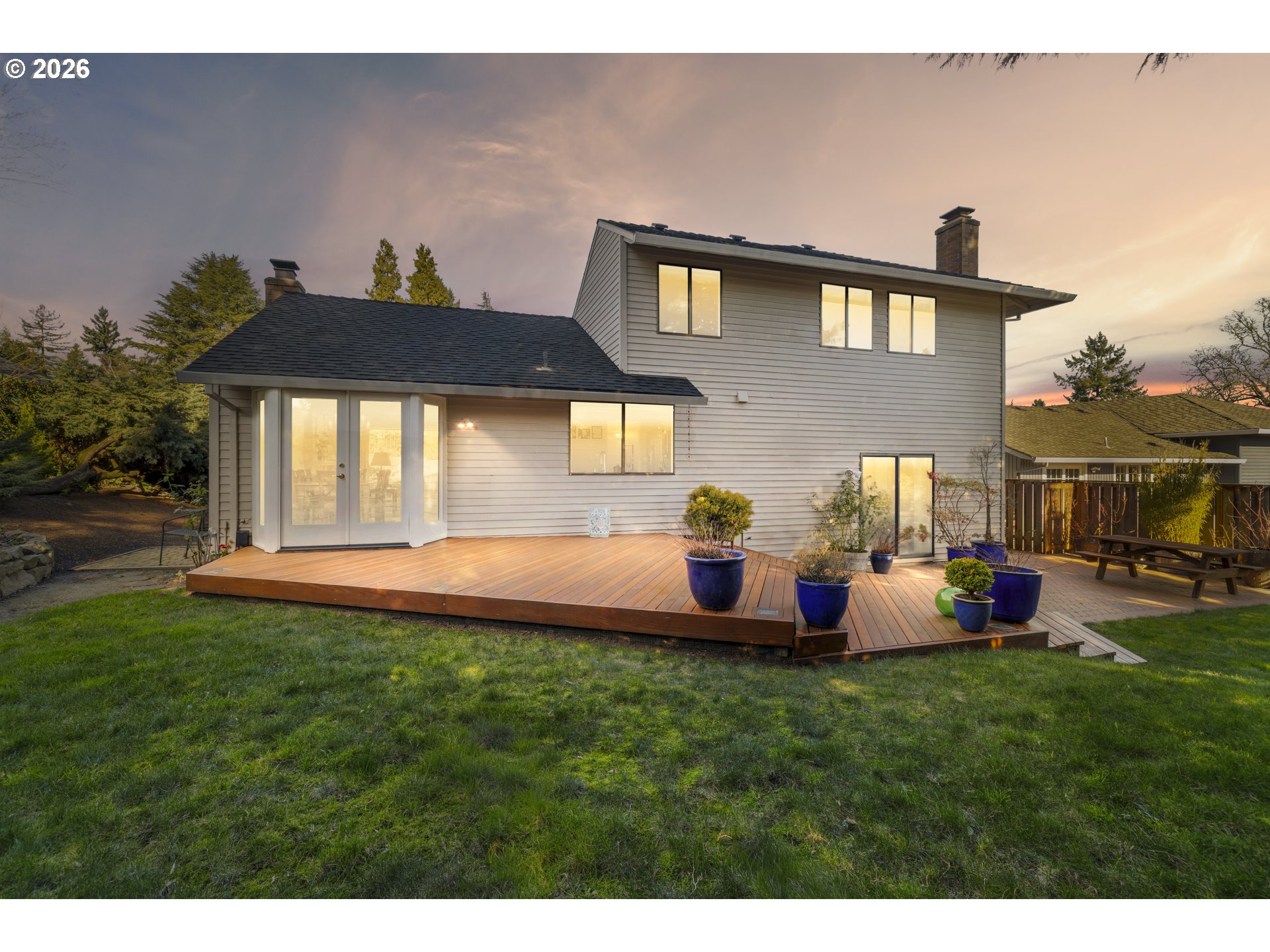(503) 893-8874Located at the end of a cul-de-sac in a desirable Tigard, Oregon neighborhood, this home opens with a wide, vaulted entry that leads into a vaulted living room filled with natural light. Engineered hardwood floors carry through the main living areas and the two fireplaces create comfortable gathering spaces throughout the home. The kitchen features granite countertops, a built-in range, electric cooktop, and a window that looks out to the backyard creating an easy connection between indoor and outdoor living.The home offers 4 bedrooms and 3 full bathrooms, including a spacious primary suite with a walk-in closet and walk-in shower. An updated vinyl door provides easy access to the deck. Out back, a multi-level deck and patio are surrounded by mature landscaping, a decorative rock wall, and a water feature, making it a private and inviting setting. A 50-year roof adds lasting value. This is a well-cared-for home ready for its next chapter.