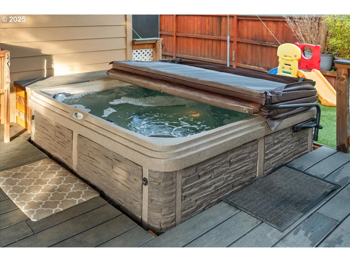 (503) 893-8874OPEN HOUSE SAT 12:00-2:00PM! Discover an exceptional dual-living Craftsman Home where timeless character meets modern comfort. A wide driveway and charming front porch welcome you inside to an airy entryway with soaring ceilings and an open two-story stairwell that fills the home with natural light. The warm, inviting living room features a large picture window and flows effortlessly into the dining area, complete with a stylish bar and beverage fridge—ideal for hosting gatherings. The beautifully updated kitchen is a chef’s dream, offering granite slab countertops, a spacious island, pantry, double ovens, stainless steel appliances, and a cozy dining nook that opens to an expansive covered deck. Just beyond, the family room boasts high ceilings, abundant sunshine, and a delightful corner fireplace. A main-floor bedroom with an adjacent full bath creates a perfect setup for guests or multi-generational living. Upstairs, the wide stairwell leads to a luxurious primary suite with double-door entry, dual-sink vanity, soaking tub, step-in shower, and a generous walk-in closet. The versatile bonus room—finished with wood-laminate flooring, a large storage closet, and designer paint—offers endless possibilities for a playroom, office, or media space. Additional bedrooms are generously sized with ample closet space, and the convenient upstairs laundry room includes a full closet and shelving to keep everything organized.Outdoor living shines in the fully fenced backyard, featuring a basketball area, firepit, and multiple entertainment zones. Relax on the covered Trex deck with a built-in hot tub, or host unforgettable gatherings on the second deck with a built-in bar and gazebo designed for grilling and fun. An oversized three-car garage with EV charging and a workshop area provides abundant space for projects, and the included air compressor is a welcome bonus. The friendly neighborhood offers multiple parks and is just down the road from David Hill Winery.