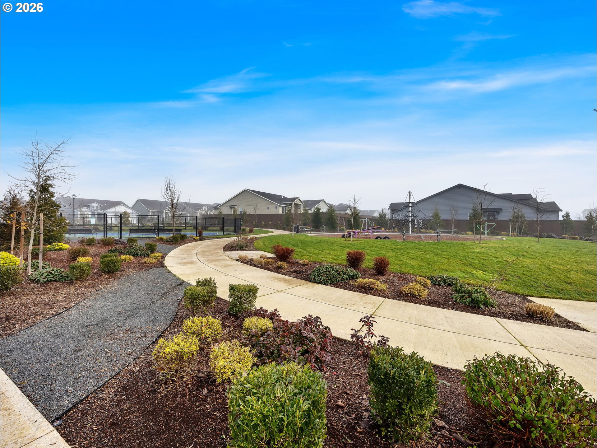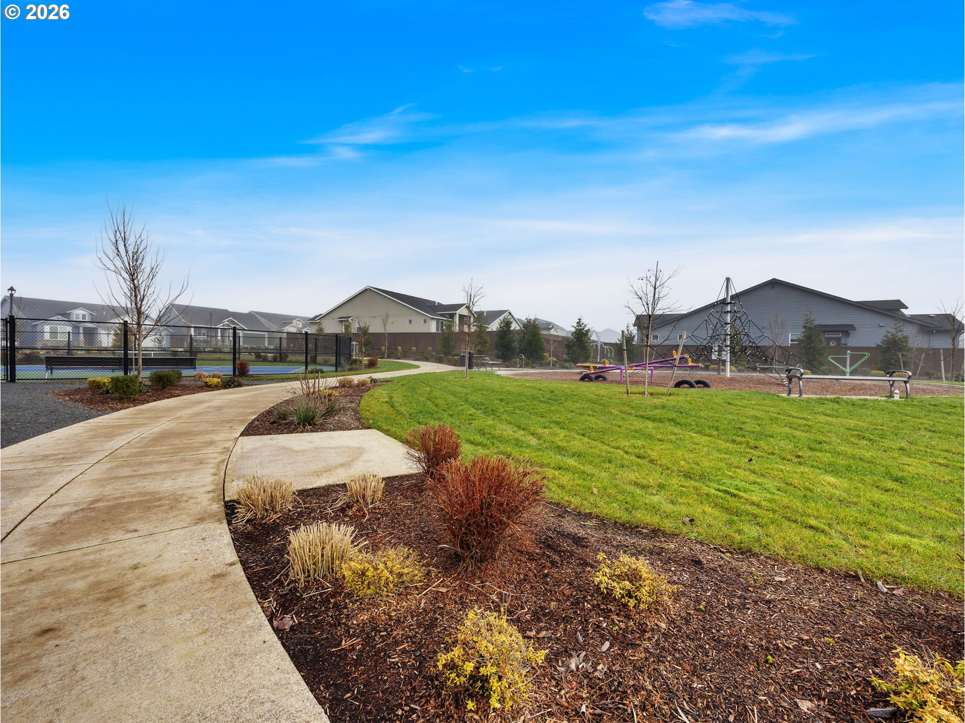 Newer construction, 5 bedrooms, 3 baths, gourmet kitchen features white quartz countertops, upgraded cabinets, multi-seat t-shaped eating bar, walk-in pantry, SS appliances gas range. The kitchen connects to spacious dining area with access to backyard. 5th bedroom on main level works for hosting, multi-generational living or home office. Luxury vinyl plank flooring through out. Upgraded w/w carpeting (throughout) New carpet Jan. 23, 2026, & upgraded padding. Upstairs features include a luxurious primary suite retreat, 3 more bedrooms, full bath, laundry room with extended storage area and a spacious living area for any of your preferred uses. Fenced backyard features covered patio perfect for entertaining or enjoying quiet evenings. Neighborhood amenities include park and pickleball court.