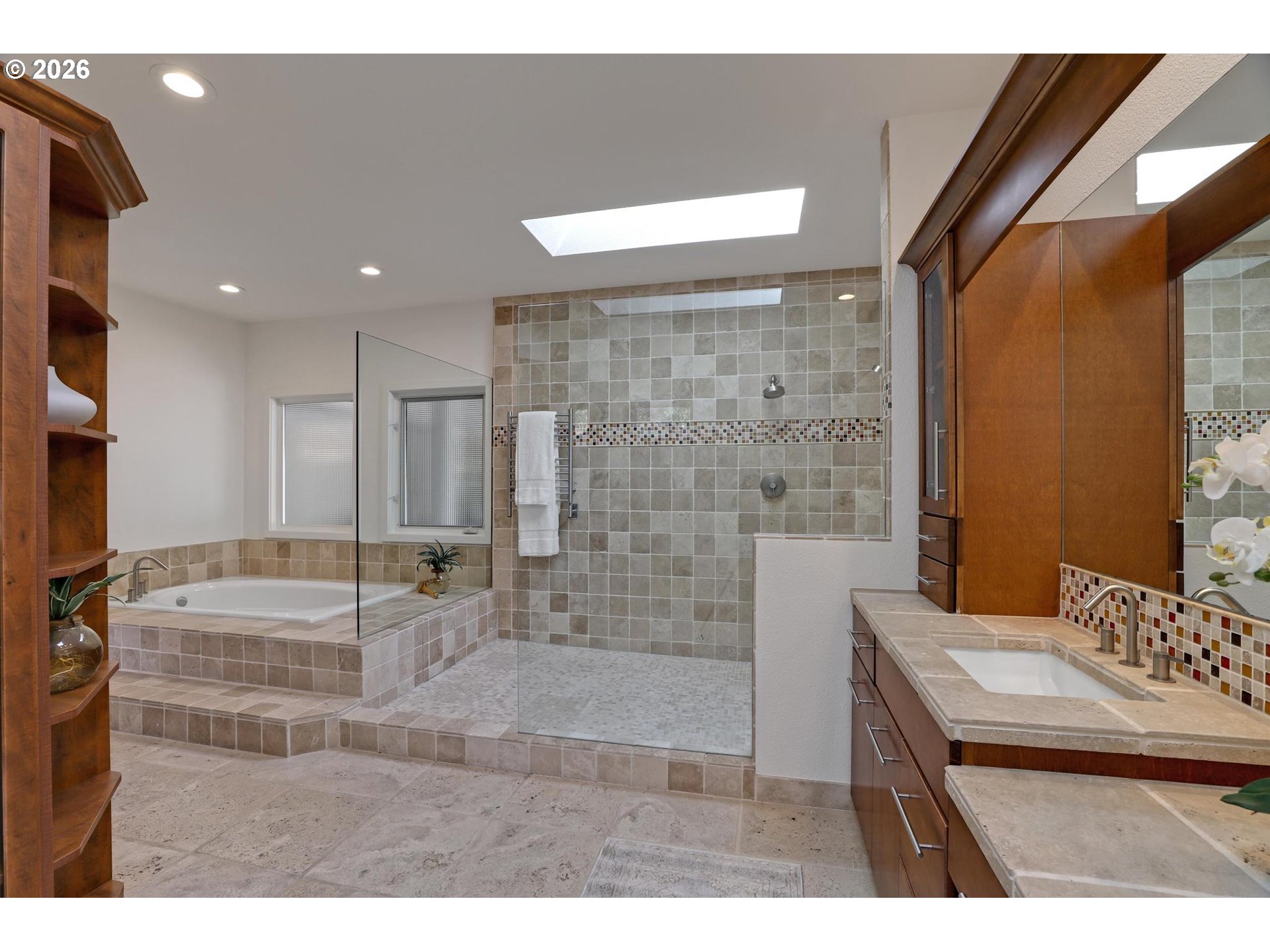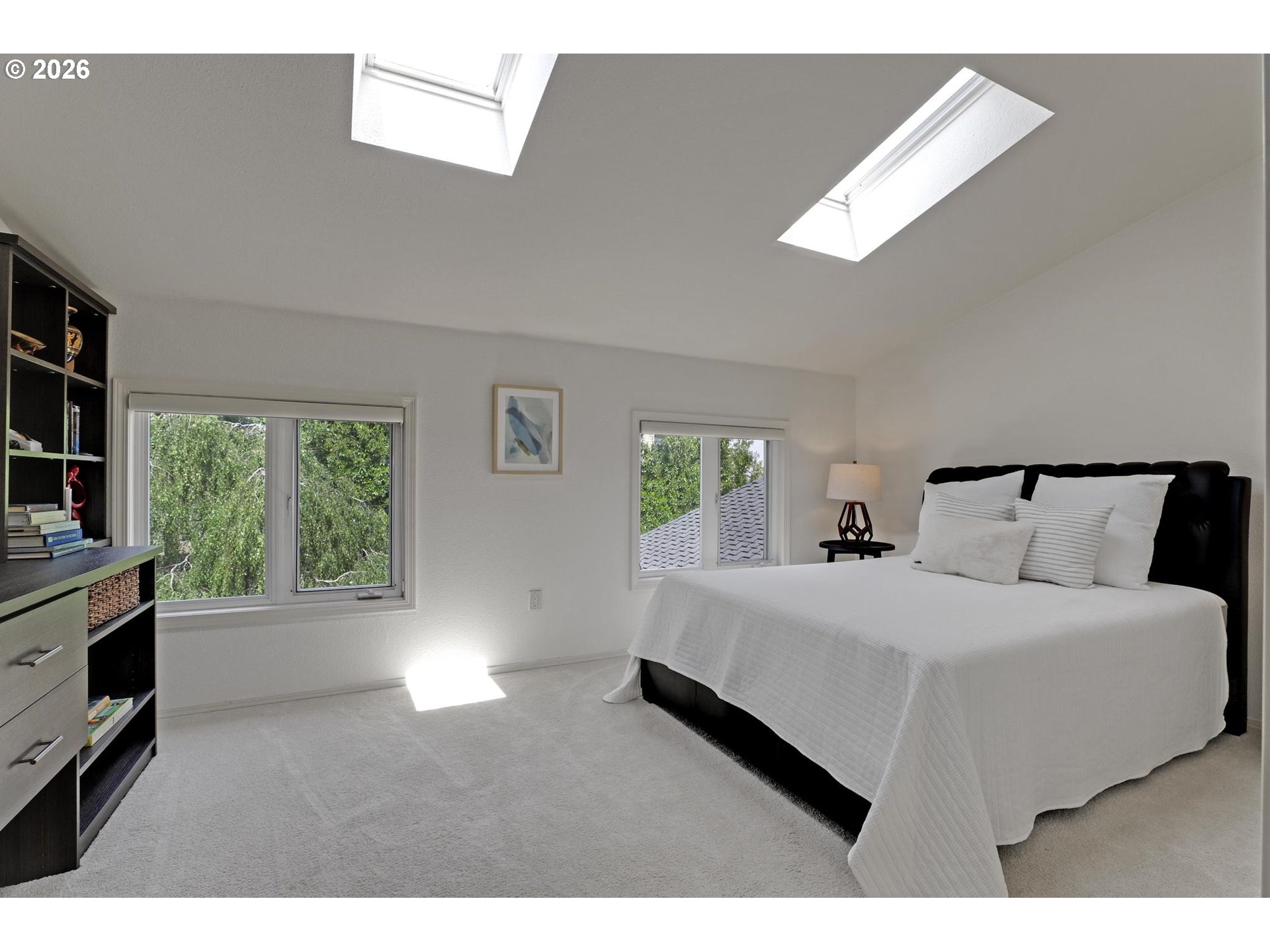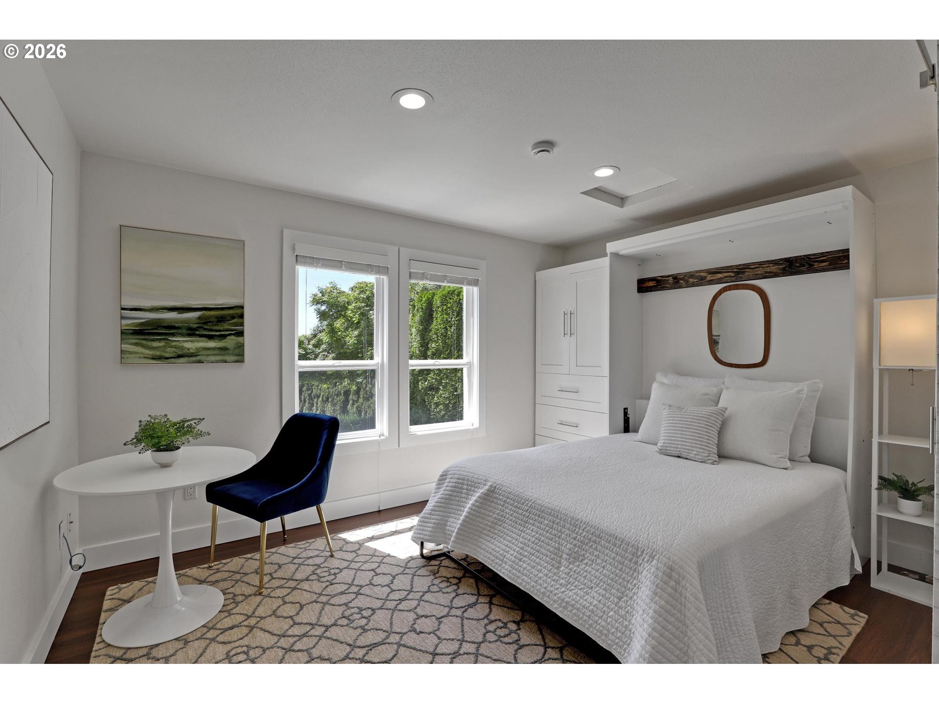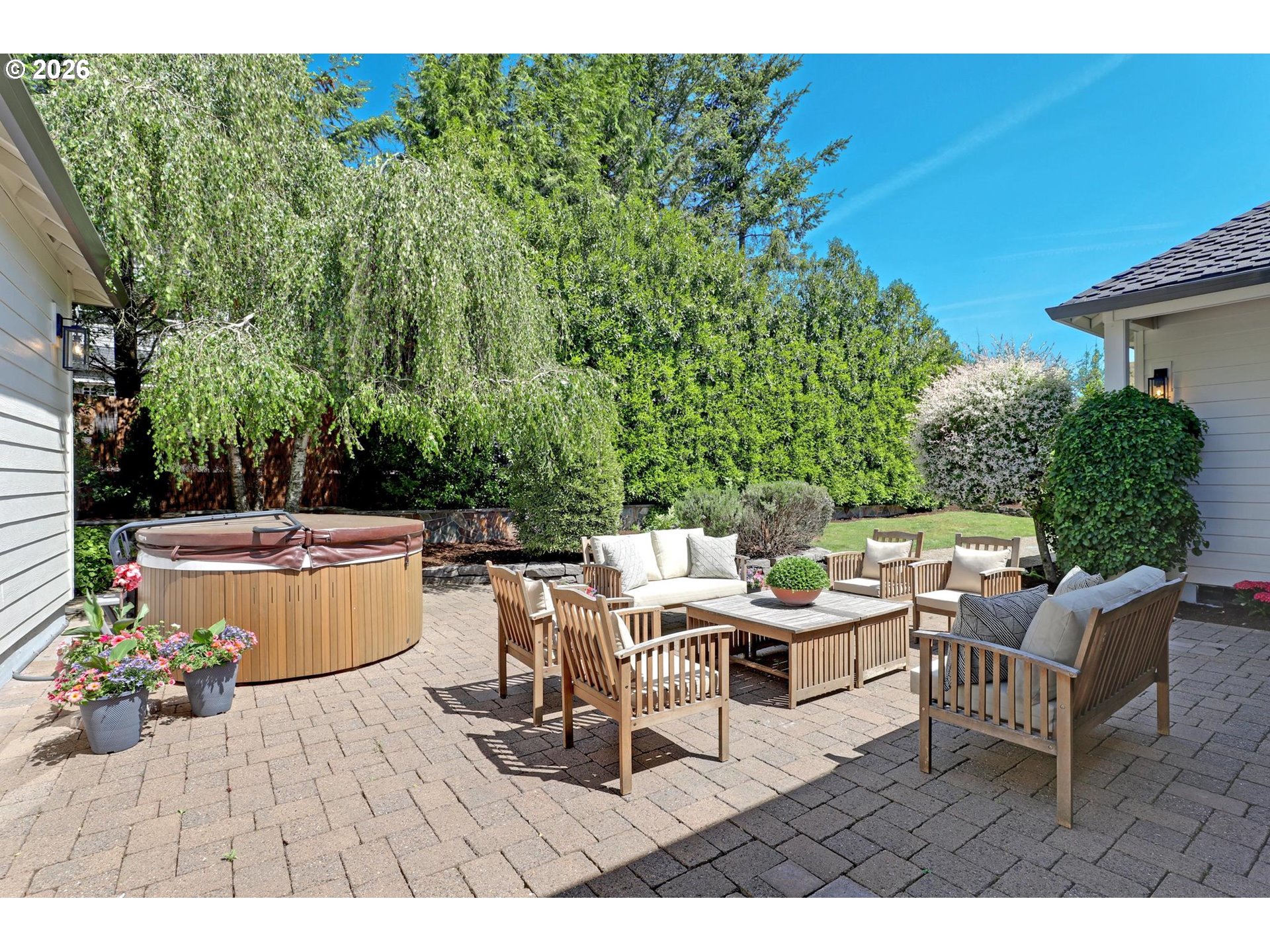 Tucked behind a breathtaking canopy of cherry blossom trees, this extraordinary estate unfolds across a private, manicured 1.01-acre lot in desirable Bonny Slope. Offering 4,100 SF of exceptionally versatile living, this residence features 4 bedrooms, a library, office, loft, 3½ bathrooms, and a charming casita/guest house — thoughtfully designed for both elegant entertaining and everyday comfort. The main level flows effortlessly between living spaces, anchored by a stunning living room with high ceilings and walls of windows. The chef's kitchen is equipped with a Viking Professional 6-burner gas cooktop, Fisher & Paykel double dishwasher drawers, double convection ovens, a walk-in pantry, and custom built-in seating. The main-level primary suite is a true sanctuary, featuring a stacked stone fireplace, private patio, and spa-inspired bathroom with radiant-heat flooring and a skylit shower. Upstairs, three spacious bedrooms and a loft offer flexible space for family, guests, or a dedicated workspace. The private casita completes the picture with a Murphy bed, kitchenette, and full bathroom — ideal for extended stays or rental potential. Outside, the grounds are nothing short of spectacular: lush lawns, meandering stone pathways, a custom paver patio, a covered cedar-ceiling deck for year-round enjoyment, and a sport court. Abundant parking accommodates the car or boat enthusiast with ease. Top-rated schools — Bonny Slope Elementary, Tumwater Middle, and Sunset High. This is truly a special property.