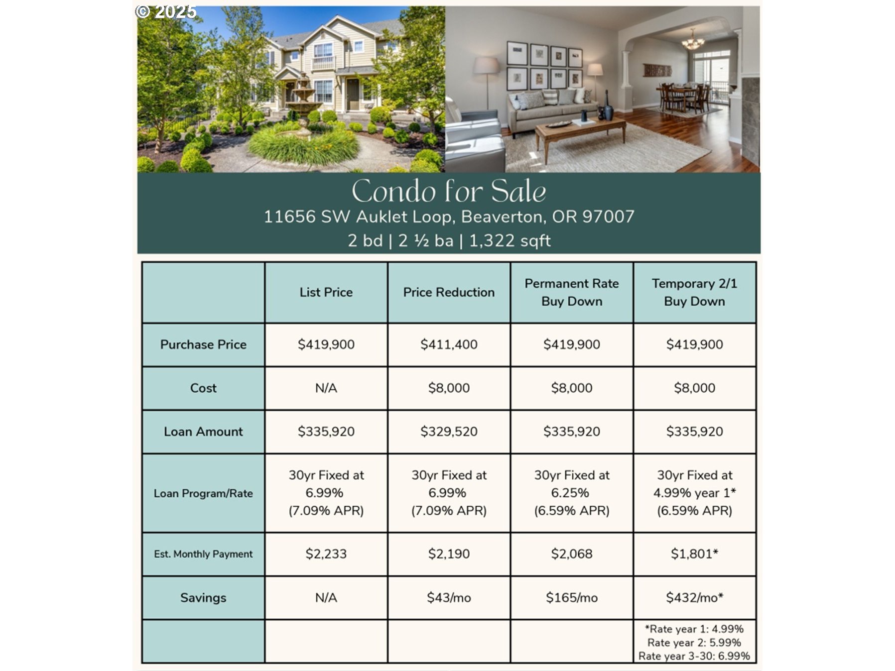 (503) 893-8874Hurry, before this one is gone, too! Rare find in this highly sought after Fountain Court neighborhood. Beautifully landscaped courtyards featuring a refreshing water fountain will greet you as you approach the front porch. Once you enter the home, your eyes are drawn up by the 9' ceilings making it feel so grand. On the main floor is a wonderful great room space allowing you to expand your comfort while entertaining your guests and family. On those cold winters, cozy up with a blanket near the gas fireplace to warm your toes. Open to the great room is a gorgeous kitchen with all NEW stainless steel appliances. Adorned by light spice hickory cabinets, this kitchen is perfect for the chef at heart. Beautifully updated marble tiled counters and 12" sq flooring tiles in bathrooms and kitchen. This home welcomes a lot of natural light throughout, with expansive windows around. Your very own private deck with wrought iron railing, great for BBQ'ing or taking in a cool summer breeze. Enjoy fresh NEW paint throughout. Quality rounded sheetrock corners on walls and windows. NEW flooring throughout. NEW carpet and padding upstairs for barefoot comfort. The Primary suite offers a true retreat within the home. It's a very large bedroom 13'x 12' with a walk-in closet. The primary bathroom is also quite large w/double sinks, NEW walk-in shower and a very large soaking tub to enjoy after a long day or run. Another bedroom conveniently located across the open flex space that could be used for an office, study or play area. A full guest bath completes the upper level. Offering plenty of space for family or guests. Included are a washer & dryer. Double car garage sf is (26.3 x 18.8) and there is extra storage space for all your toys as well, just drive on in. The exterior is HOA maintained and irrigated, with professional landscaping that provide you with maintenance-free ease of living. Exposed aggregate walkways circle a glorious fountain out front. All furnishings are negotiable.
