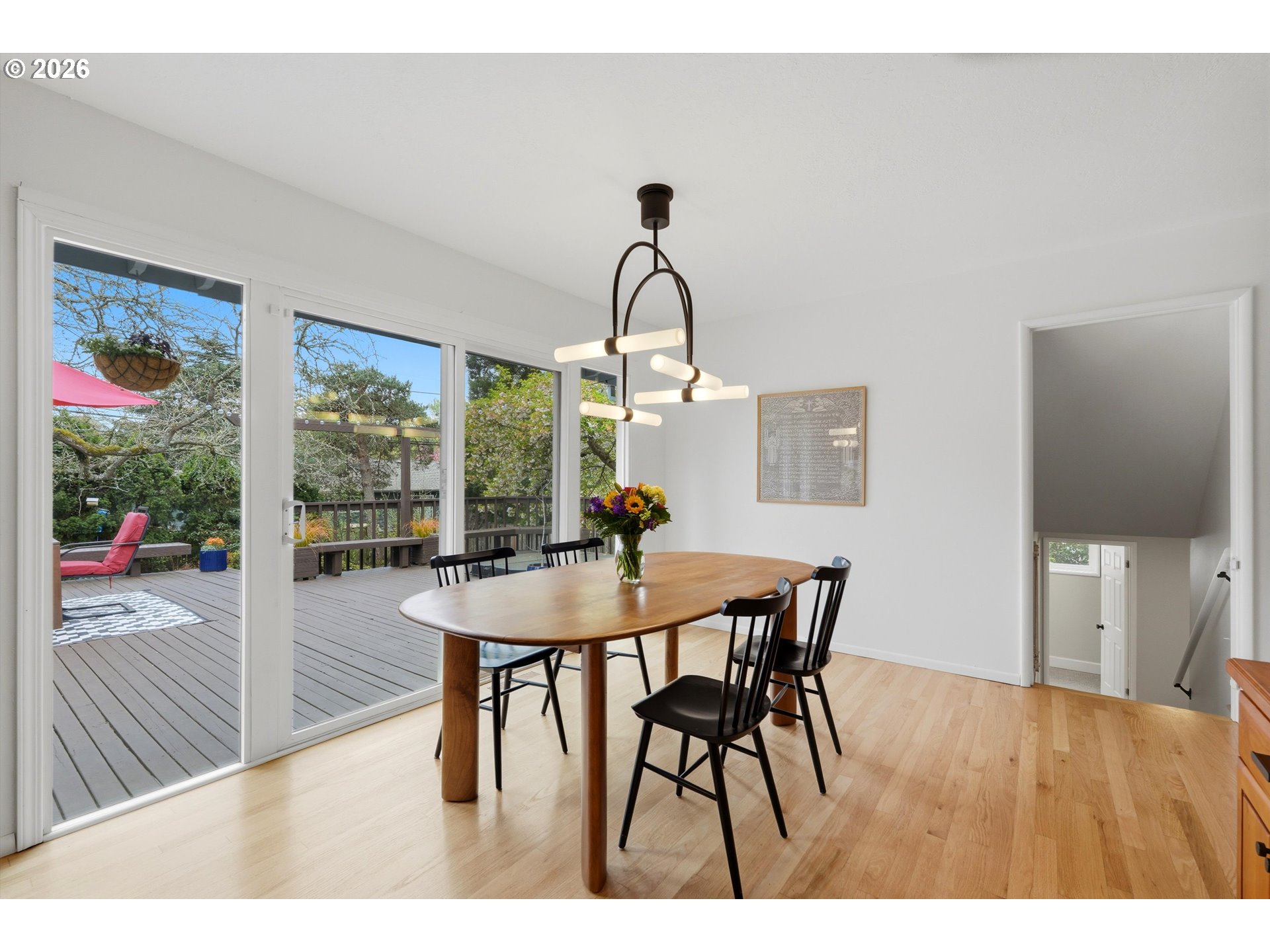 Beautifully updated, light-filled tri-level home in sought-after Cedar Hills. Features modern refinished hardwood floors, new carpet, wood-burning and gas fireplaces, updated appliances throughout, and two gorgeous backyards with a large patio—perfect for entertaining. The primary bedroom features hardwoods and a slider to a private deck, while a spacious 4th bedroom with its own bathroom offers ideal privacy for guests. The giant family room in the basement serves as both a late-night retreat and a perfect playroom. Extensive updates include 6.8kW solar panels, low VOC paint, recessed lighting, new furnace, AC, water heater, plumbing, seismic bracing, insulated/drywalled garage, updated sewer line, and generator connection. The kitchen features granite counters and updated stainless steel appliances and fixtures, complemented by beautifully updated bathrooms with marmoleum and tile flooring, plus a tile shower. Additional highlights include a den or home office with built-ins, a lower living room with dry bar and cedar paneling, mudroom with sink, and an oversized yard with deck, fruit trees, and garden. Ideally located close to Nike and Intel with easy freeway access. Walk to trails, parks, and Commonwealth Lake, and enjoy quick access to shopping, dining, and healthcare. Highly rated school district. Open House Saturday, 4/11 from 2pm to 4pm.