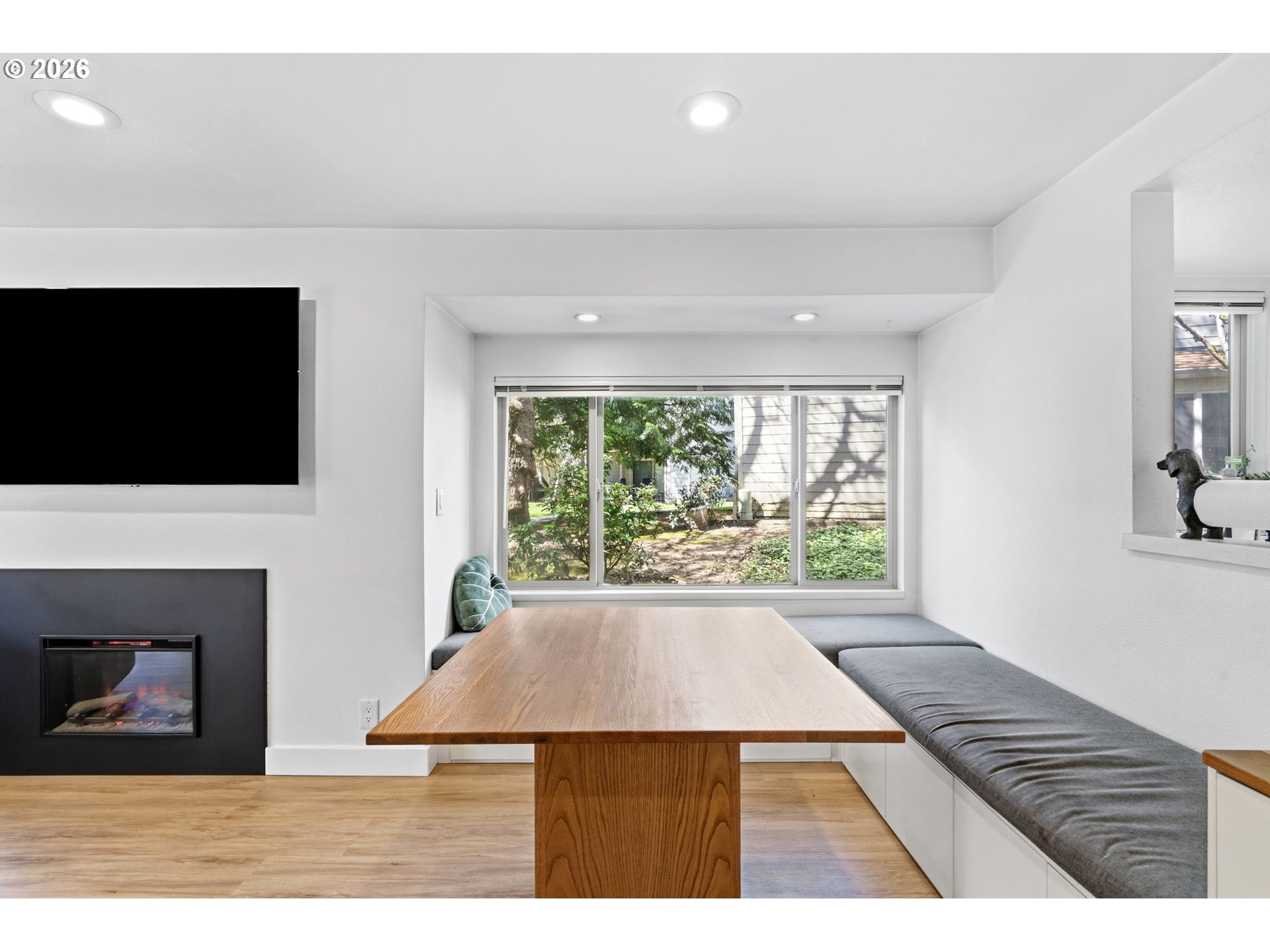 (503) 893-8874Beautifully updated 2-bedroom, 1-bath, ground level, single-level condo offering 1,016 square feet in a well-maintained Beaverton community. Inside, you’ll find newer flooring throughout and a functional layout with a fresh, modern feel. The open concept living room offers plenty of space for furniture and features a built-in bookshelf and electric fireplace. The dining area includes a charming built-in bench with added storage, creating a practical and inviting space for everyday meals and casual gatherings. The bathroom is conveniently located between the two bedrooms.Set among mature trees and landscaped grounds, this community offers low-maintenance living with the HOA covering all exterior maintenance. Residents enjoy access to two swimming pools and a tennis court. The large trees help keep the unit cool in the summer. The covered patio includes extra storage and provides a comfortable outdoor space to relax and enjoy the natural surroundings. The community also offers plentiful guest parking, with the option to rent additional storage space for an RV or boat.Located in Beaverton, this home is close to shopping, dining, parks, and everyday services, with convenient access to major commuter routes and the greater Portland metro area. A great opportunity for buyers seeking an updated 2-bedroom, 1-bath home in a convenient location.