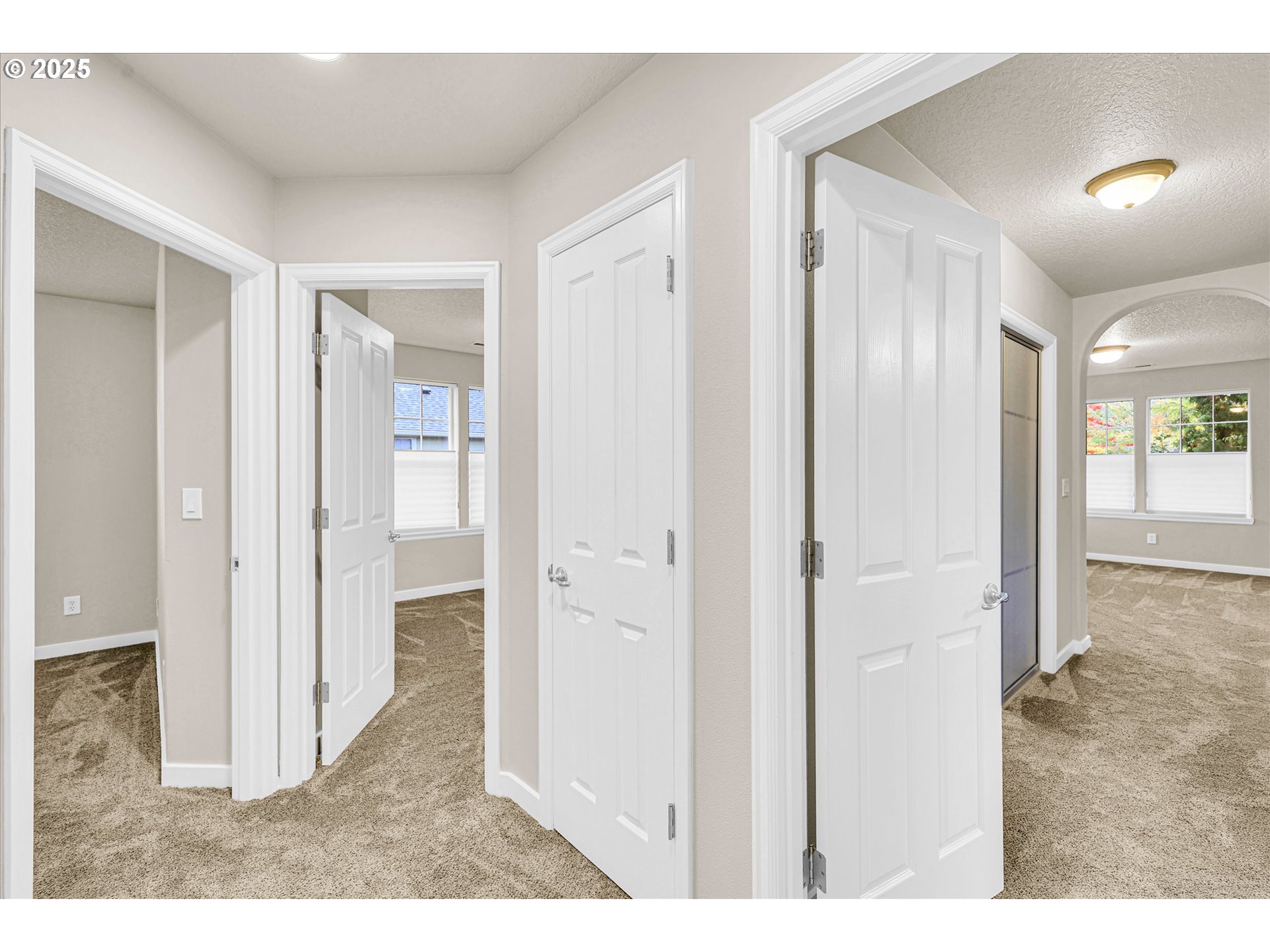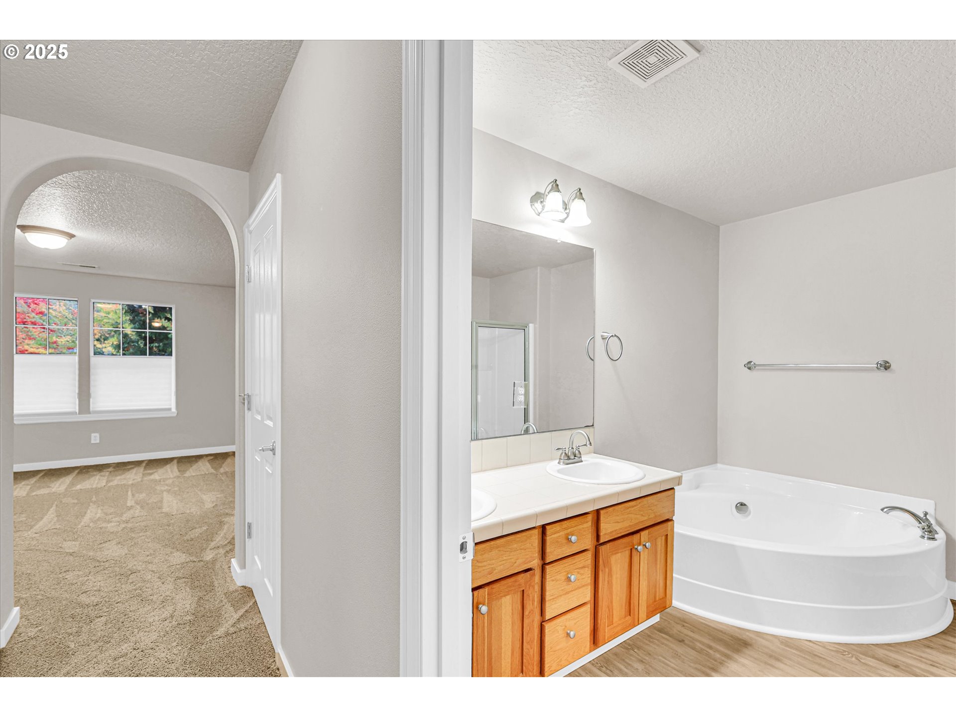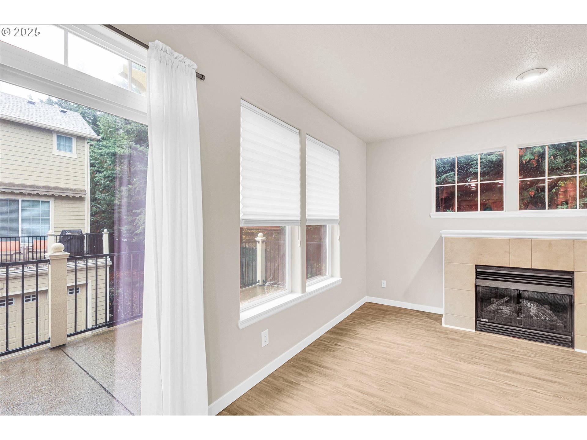 Beautiful Fountain Court neighborhood! This unit was completely gone through floors to ceilings early 2025. Main floor kitchen and breakfast bar adjacent to relaxation space with gas fireplace for chilly days. Kitchen includes stainless steel appliances and sink all new in 2025. Light wood cabinets complete a space the most discerning chef will enjoy. All flooring, carpet and paint in this home done in the last year. NEW AC and exquisite up down window shades throughout. A private deck is concrete-surfaced with wrought iron railing, great for BBQ'ing or taking in a cool summer breeze. Primary suite bedroom with a walk-in closet and 2nd closet for ease. Primary bathroom large w/double sinks, walk-in shower and extra large soaking tub. 2 more bedrooms upstairs conveniently located across, and down the hall and a full guest bath complete the upper level, offering plenty of space for family or guests. The attached oversized double car garage sf is 638 (21 x 29) and there is extra storage space for all your toys. The exterior is maintained with beautiful irrigated grounds with professional landscaping. Entry door is insulated, as is the garage door.