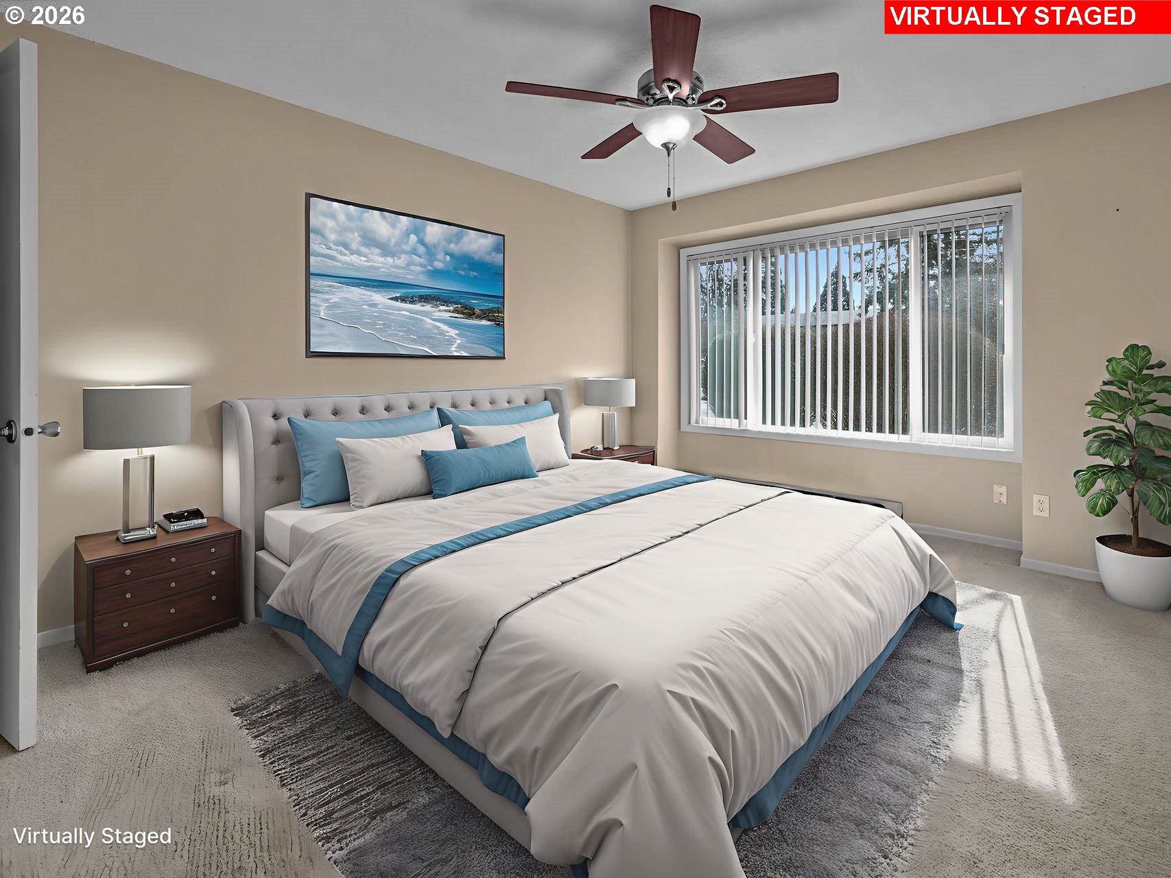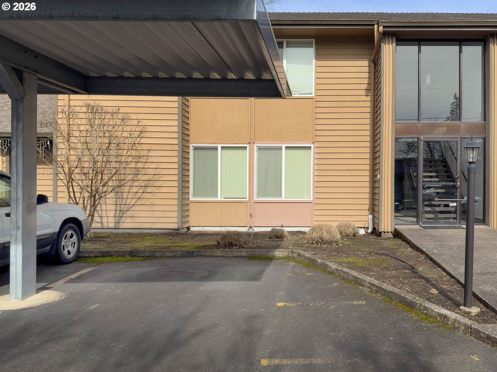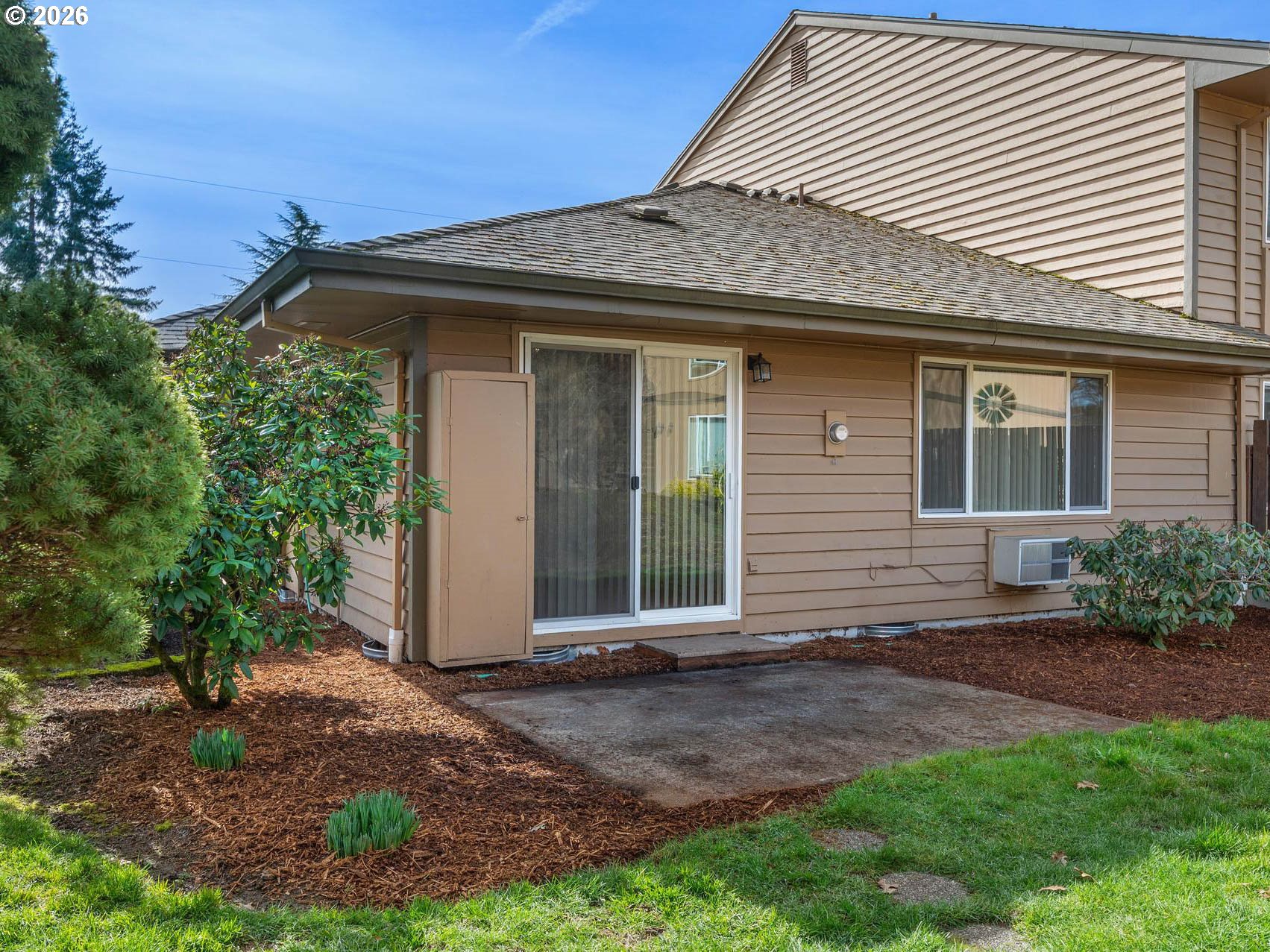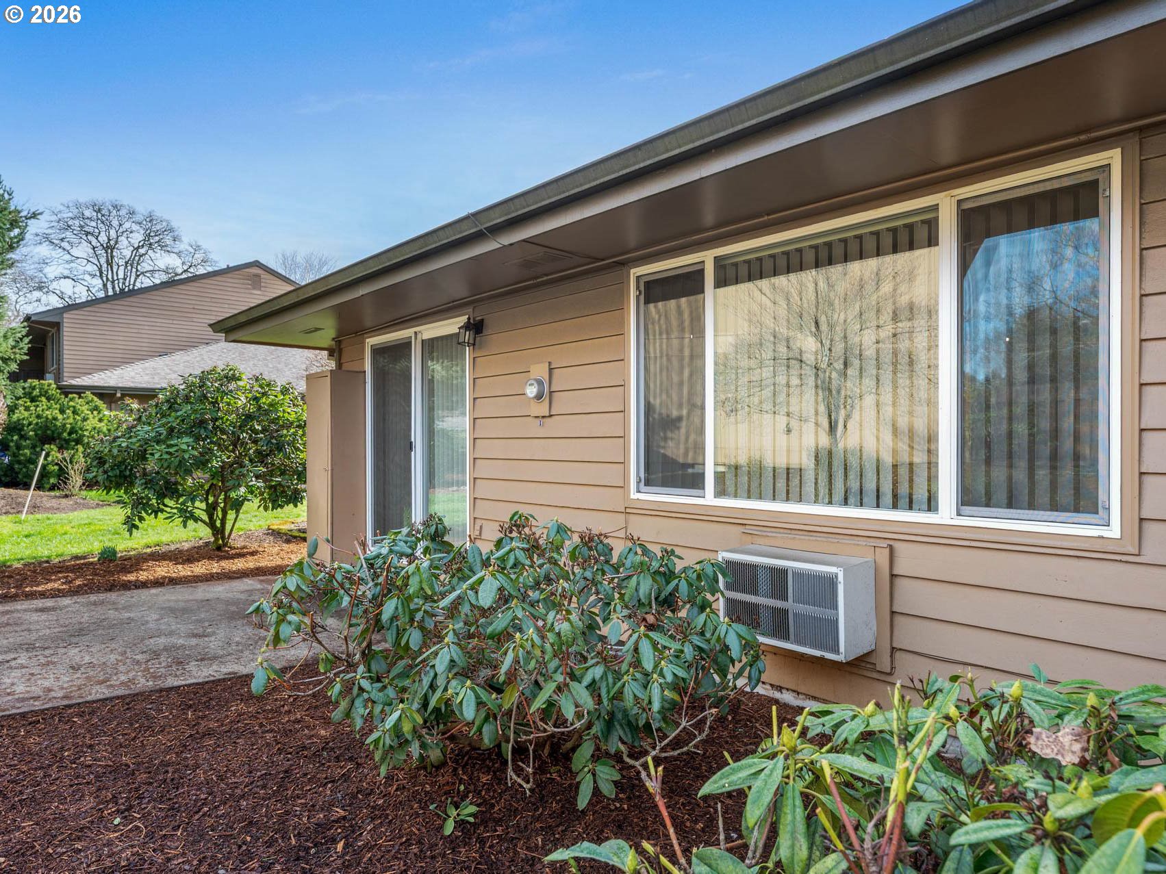 This well-maintained one-level end unit at Grant Park Condominiums offers two bedrooms and a Jack-and-Jill bathroom, complete with a private entrance and outdoor space. Originally built in 1976 and thoughtfully remodeled during the 2008 condo conversion, the home features updated paint, flooring, countertops, and appliances. Exterior improvements include a new roof (2010) and exterior paint (2015).Tucked into a beautifully landscaped, park-like setting, this community offers a quiet and private atmosphere. Pets are welcome, and there is no rental cap — a rare and valuable opportunity for both homeowners and investors. One of only four one-level end units in the complex, this home also includes two parking spaces: a covered carport and an additional deeded space steps to the front entrance. Inside, you’ll find spacious living areas, abundant storage, baseboard heating, stainless steel appliances, and a private washer and dryer.The bathroom was fully remodeled in 2016 and features a large walk-in tiled shower with glass door, built-in bench, hand shower faucet, updated toilet and sinks, new countertops and backsplash, updated flooring, modern lighting, and a humidity-sensing fan. Minutes to the vibrant downtown Hillsboro scene, enjoy easy access to Tuesday night and Saturday farmers markets, Friday night Bites, parks, restaurants, the Max/bus lines and more!