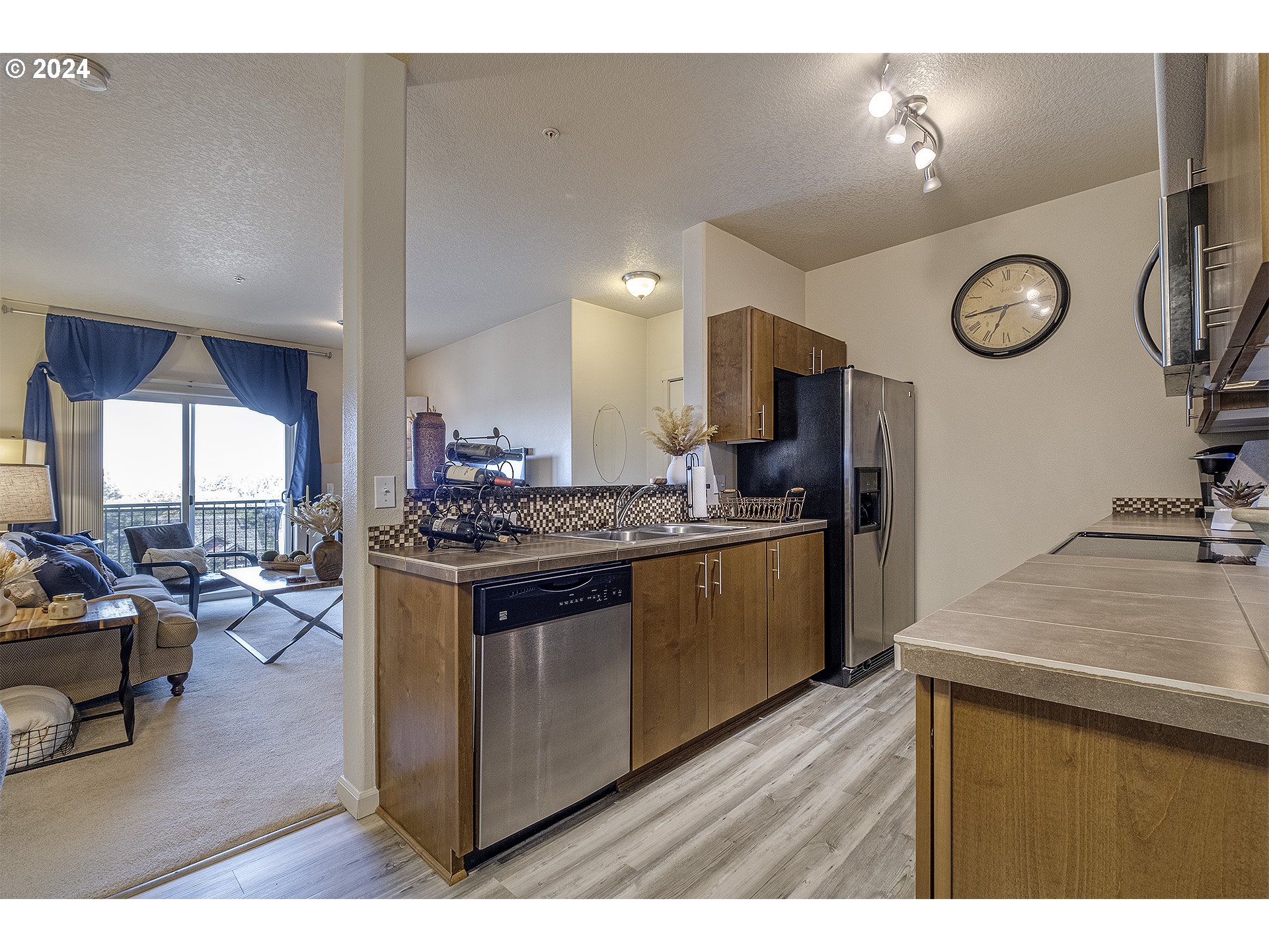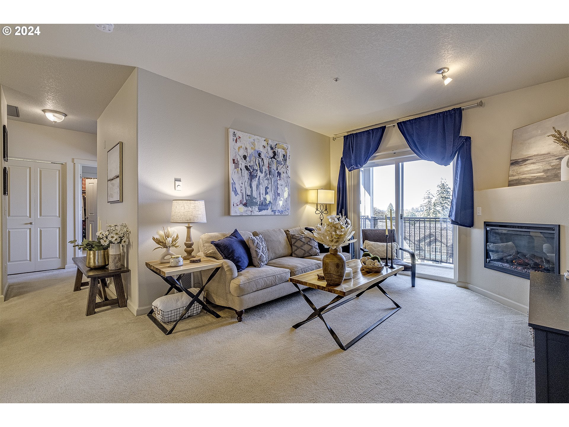 Beautiful Craftsman style Townhouse Condo in the incredible Timberland community. Must see this Rare west facing Patio Balcony with Unobstructed Views, the sunsets are truly breathtaking! Spacious 2 bedrooms and 2 baths with master bedroom and walk-in closet. Light-filled open concept with electric fireplace, elegant tile countertops, stainless steal appliances & maple cabinets. The detached garage provides secure parking and has shelving for storage. Additional storage off the balcony offering plenty of room for bikes & gear. Outstanding location minutes to shopping, dining, parks and walking to Timberland Town Center - Market of Choice, Barre 3, Orange Theory and more. Don't miss this one!