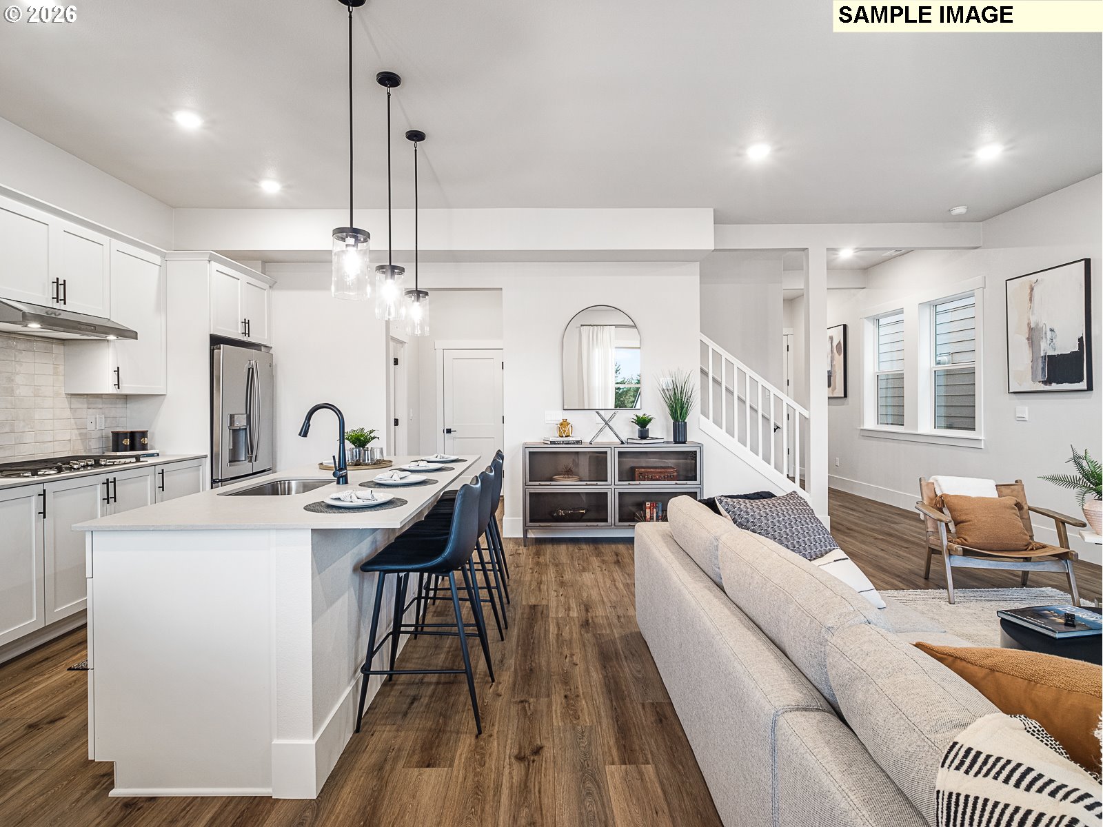 Come explore the beautifully designed 4-bedroom Navarra floorplan featuring a versatile main-level bonus room with a spacious covered front deck perfect for relaxing or entertaining. Inside you’ll find soaring 10' ceilings on the main level and 9' ceilings upstairs creating a light-filled, open atmosphere throughout. The gourmet kitchen is a chef’s dream complete with a wall oven, built-in microwave, gas cooktop with hood, and a stunning quartz island ideal for gathering and entertaining. Distinct dining area for hosting memorable meals. The interior design details can still be selected, but the cutoff is quickly approaching. Enjoy the outdoors year-round with a covered back patio and fully fenced yard—great for pets, play, or privacy. The community is rich with walking and biking trails, and offers convenient access to Progress Ridge shopping, local dining, and major freeways. Located just a 5-minute walk to Mountainside High School, this home blends suburban comfort with everyday convenience. Tour daily - walk-ins welcome. A similar home is available for viewing.