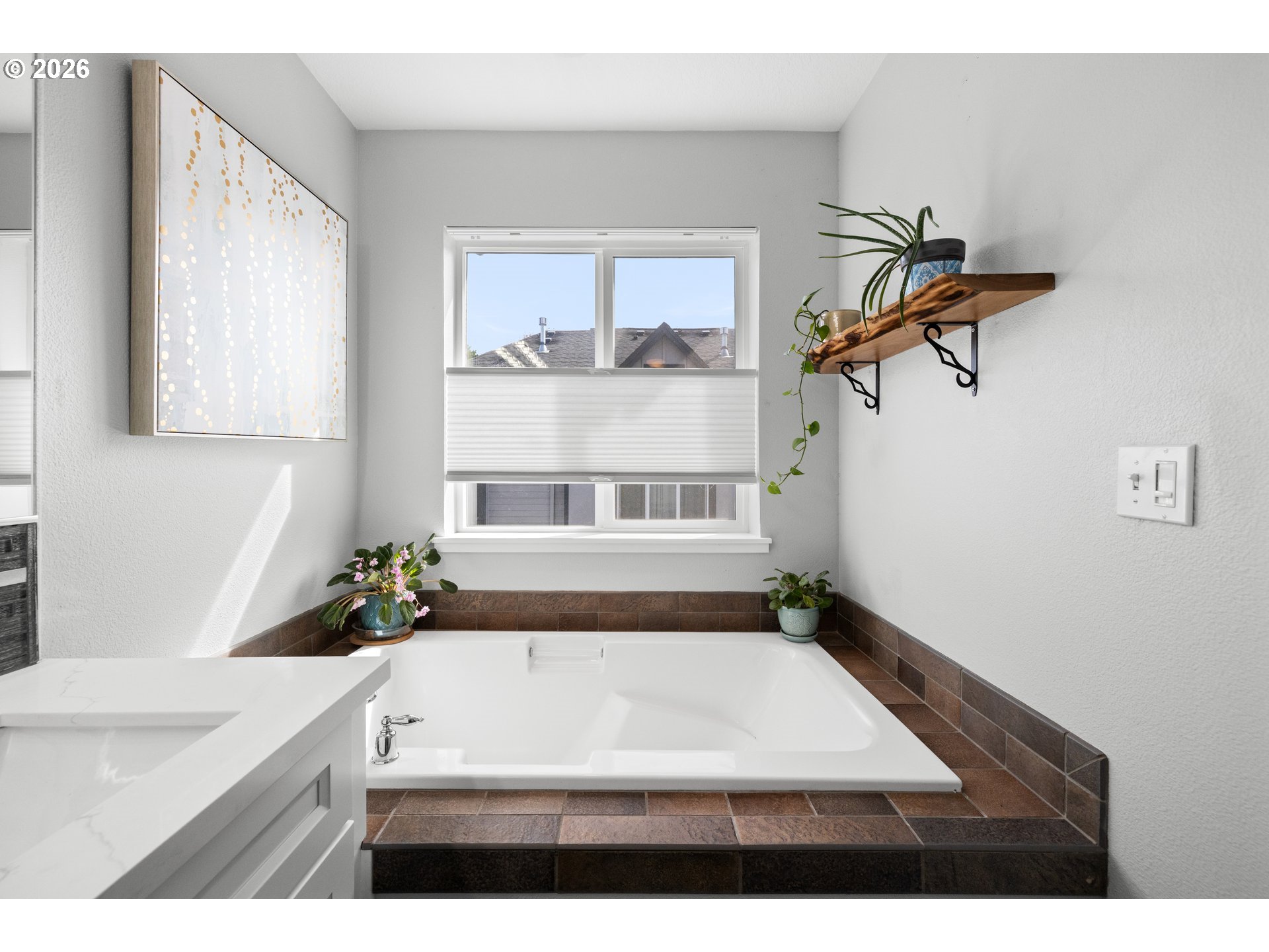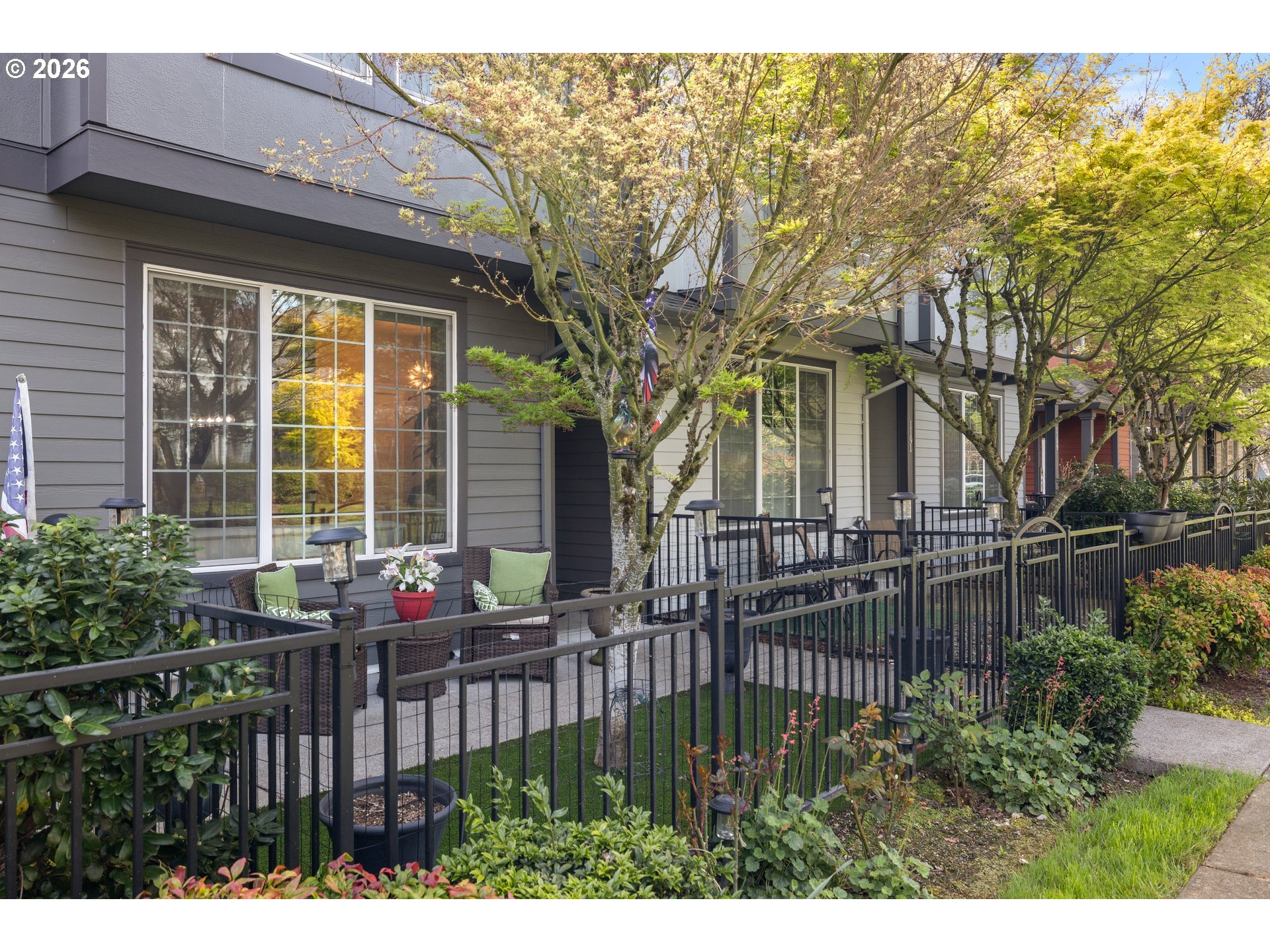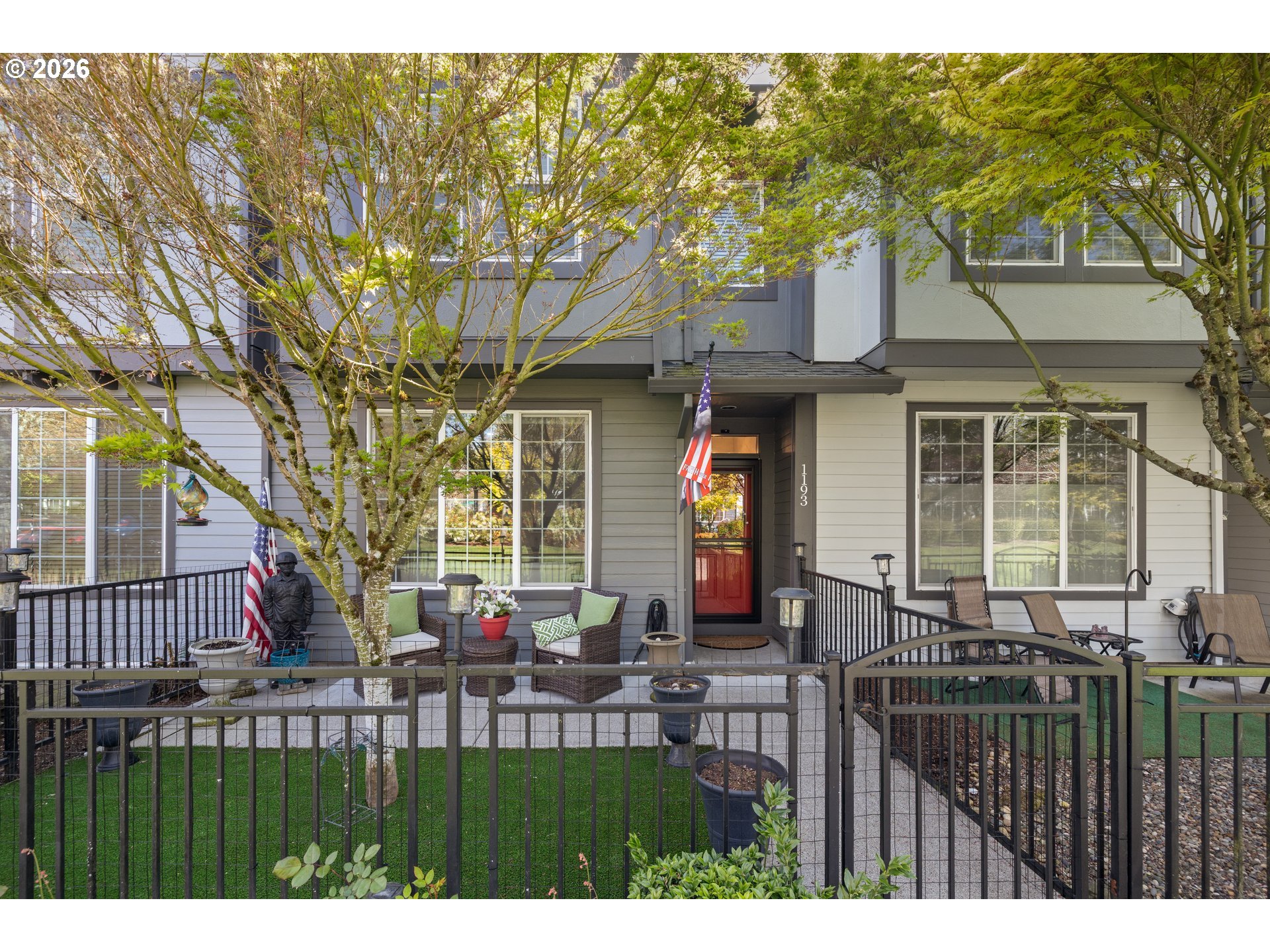 (503) 893-8874OPEN HOUSE Sat 4/11 1-4p. WOW come see this stylishly remodeled and truly move-in ready townhome in the desirable, lifestyle Arbor Roses Community in the heart of Hillsboro. Enjoy your morning coffee or relaxing in the evening twilight in your fully fenced front courtyard with patio and easy-care turf lawn. The living room features a new electric fireplace gorgeous hearth and tiles, and large window with electric blinds. You’ll love this beautifully remodeled kitchen with quartz countertops, tile backsplash, Café’ Series 6-burner gas range/convection oven, Viking microwave/convection oven/hood, plus the extra large pantry offering tons of storage space. Beautiful custom built-in banquet with cushions opens and has drawers to offer extra storage space. Head upstairs to the vaulted loft area with skylight which can be used as second living room, den or home office space. The primary bedroom suite features a beautifully remodeled bathroom with new vanity, double sinks, quartz counters, tile backsplash, tile floor, and new fixtures, plus a walk-in shower and soaking tub. The walk-in closet features a closet organizer system with built-in drawers and shelving. The second bedroom is spacious and offers flexibility featuring a modern queen Murphy bed, built-in bookcases and desk with locking cabinets. Also included is a walk-in closet and newly added linen closet. The upstairs is complete with a laundry room with included washer and dryer. The home is equipped with central air conditioning, and an Air Scrubber providing advanced air purification. The attached two-car garage has built-in storage racks. Homeowner’s Association covers exterior home maintenance, high speed internet, park-like front yard landscaping, club house with fitness center, pool, spa, and playground. This home is ideally located near Shute Park Recreation and Aquatic Center, Jackson Bottom Wetland, shopping, restaurants and easy access to the tech corridor. Schedule your private tour today.