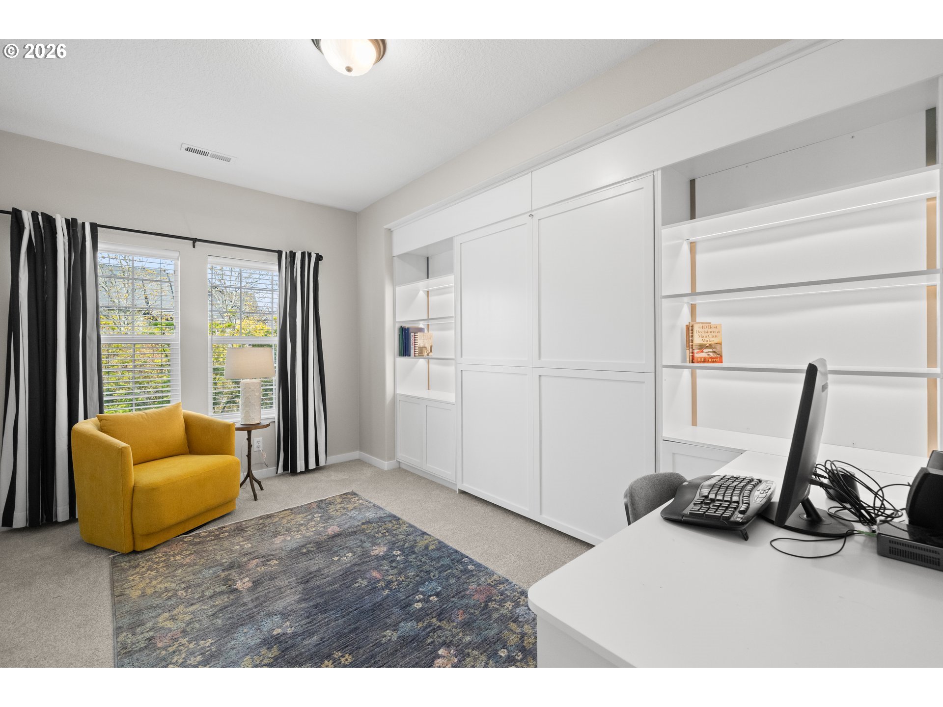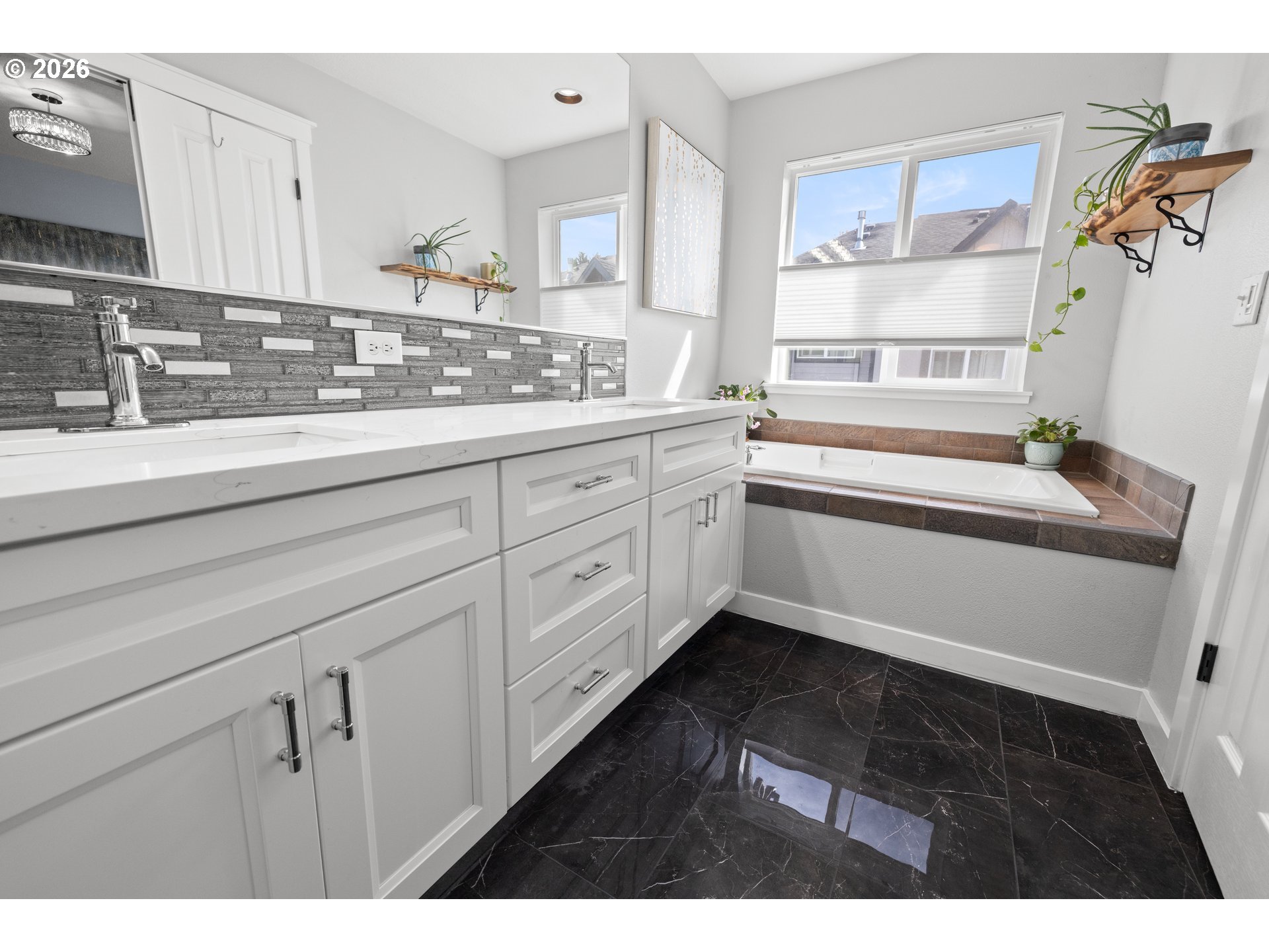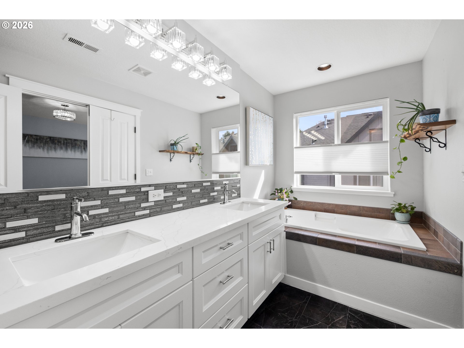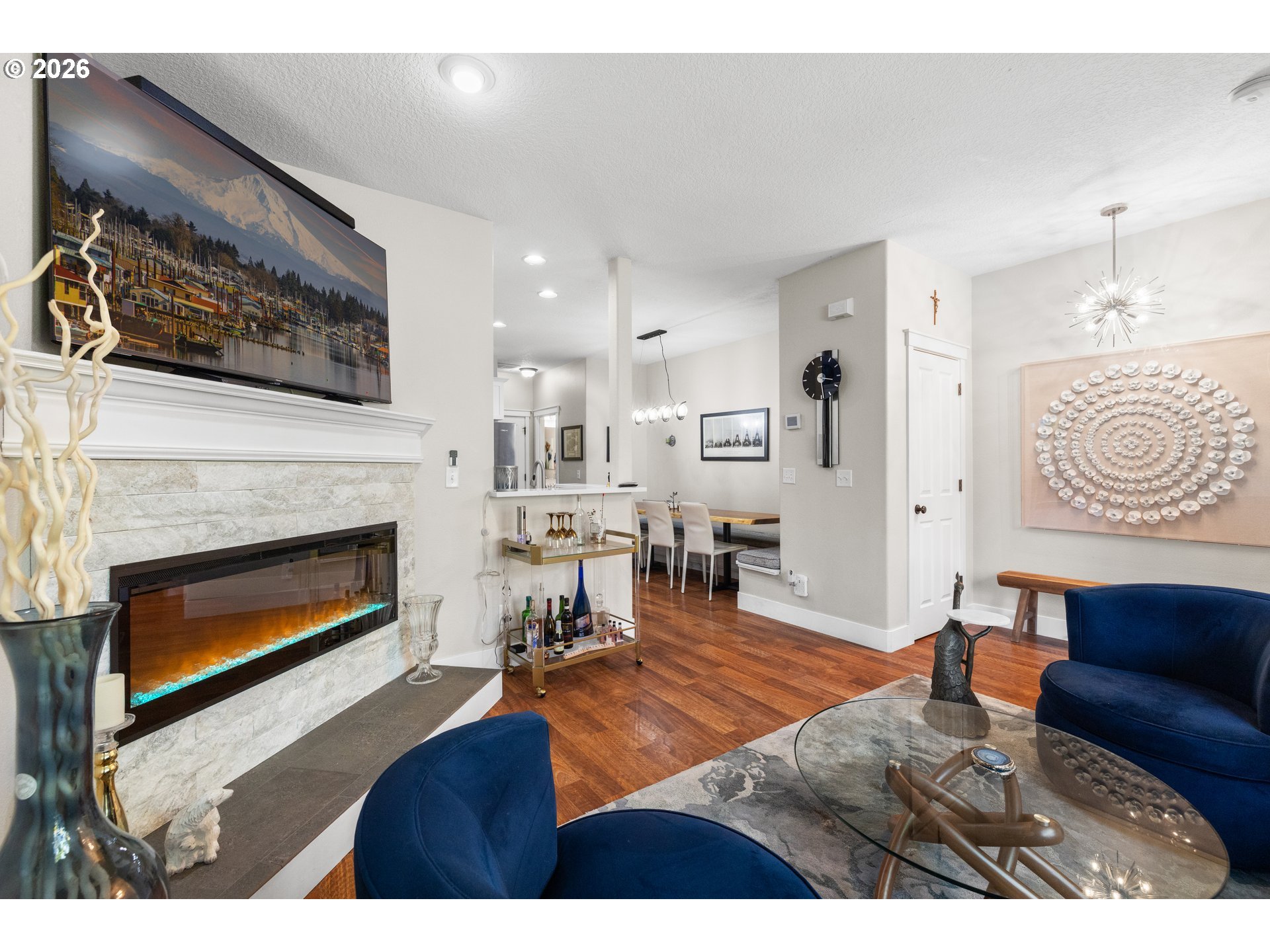 (503) 893-8874OPEN HOUSE Sat 4/11 1-4p. WOW come see this stylishly remodeled and truly move-in ready townhome in the desirable, lifestyle Arbor Roses Community in the heart of Hillsboro. Enjoy your morning coffee or relaxing in the evening twilight in your fully fenced front courtyard with patio and easy-care turf lawn. The living room features a new electric fireplace gorgeous hearth and tiles, and large window with electric blinds. You’ll love this beautifully remodeled kitchen with quartz countertops, tile backsplash, Café’ Series 6-burner gas range/convection oven, Viking microwave/convection oven/hood, plus the extra large pantry offering tons of storage space. Beautiful custom built-in banquet with cushions opens and has drawers to offer extra storage space. Head upstairs to the vaulted loft area with skylight which can be used as second living room, den or home office space. The primary bedroom suite features a beautifully remodeled bathroom with new vanity, double sinks, quartz counters, tile backsplash, tile floor, and new fixtures, plus a walk-in shower and soaking tub. The walk-in closet features a closet organizer system with built-in drawers and shelving. The second bedroom is spacious and offers flexibility featuring a modern queen Murphy bed, built-in bookcases and desk with locking cabinets. Also included is a walk-in closet and newly added linen closet. The upstairs is complete with a laundry room with included washer and dryer. The home is equipped with central air conditioning, and an Air Scrubber providing advanced air purification. The attached two-car garage has built-in storage racks. Homeowner’s Association covers exterior home maintenance, high speed internet, park-like front yard landscaping, club house with fitness center, pool, spa, and playground. This home is ideally located near Shute Park Recreation and Aquatic Center, Jackson Bottom Wetland, shopping, restaurants and easy access to the tech corridor. Schedule your private tour today.