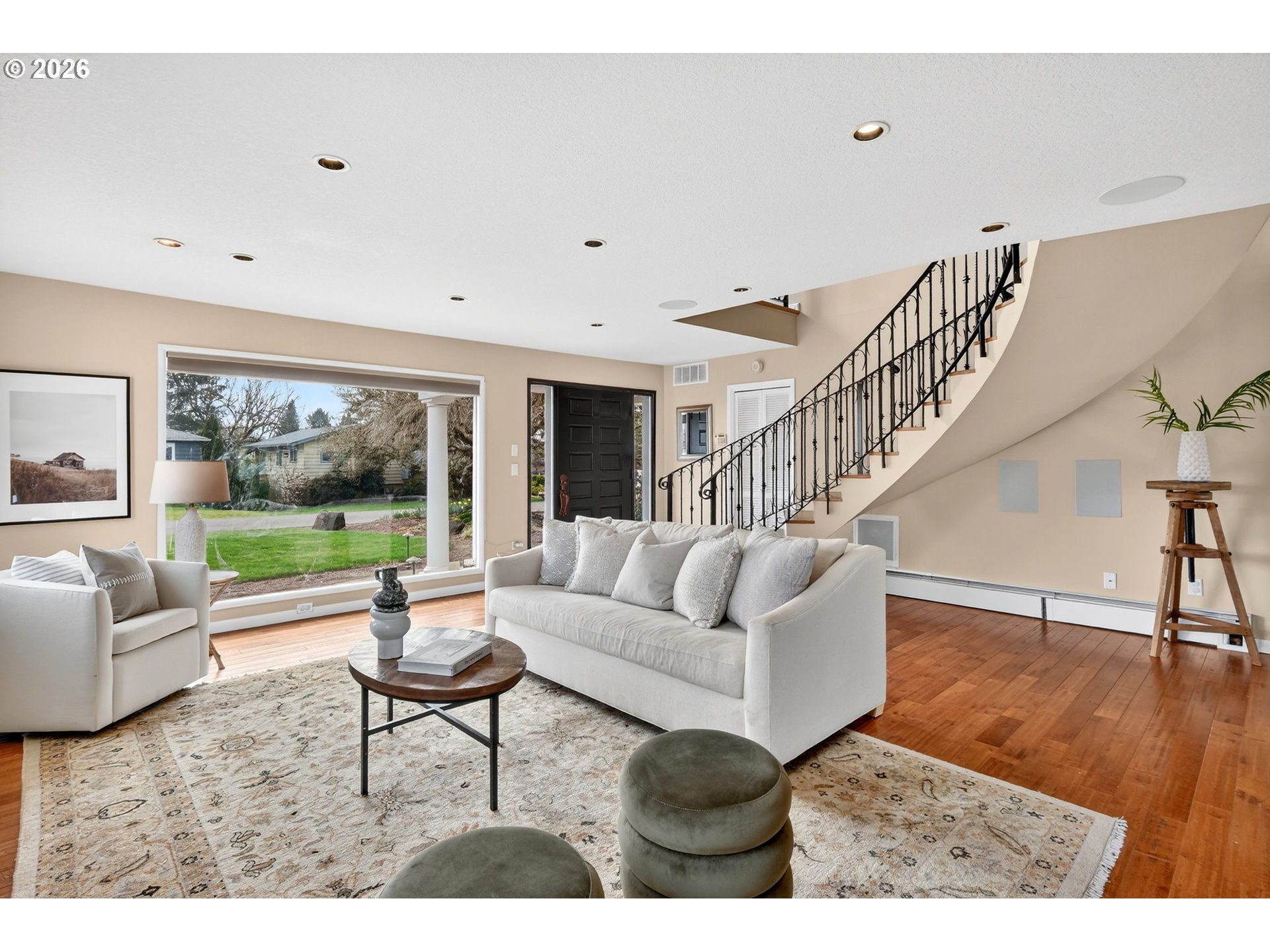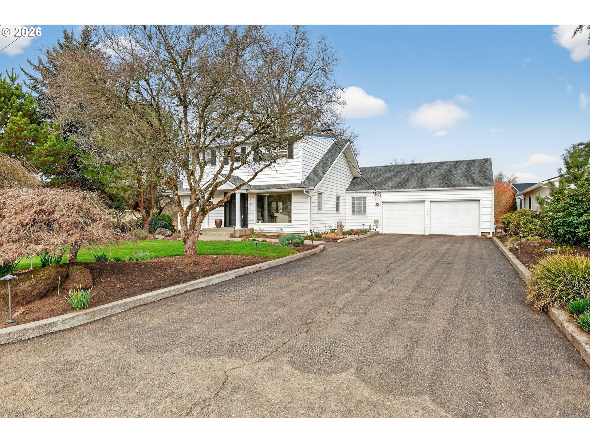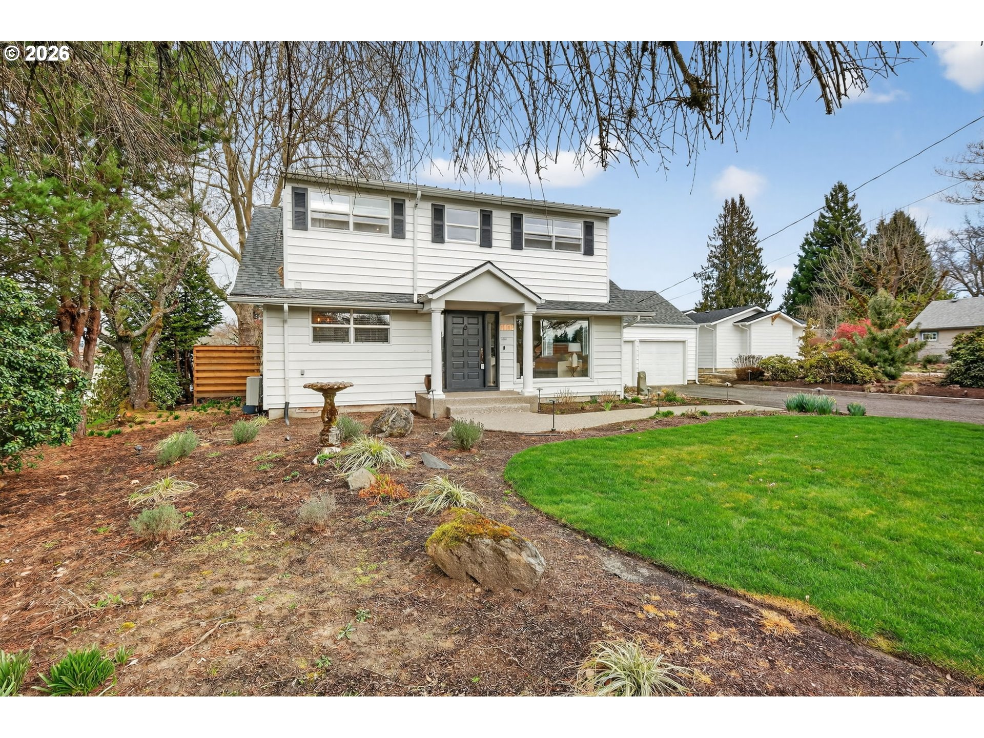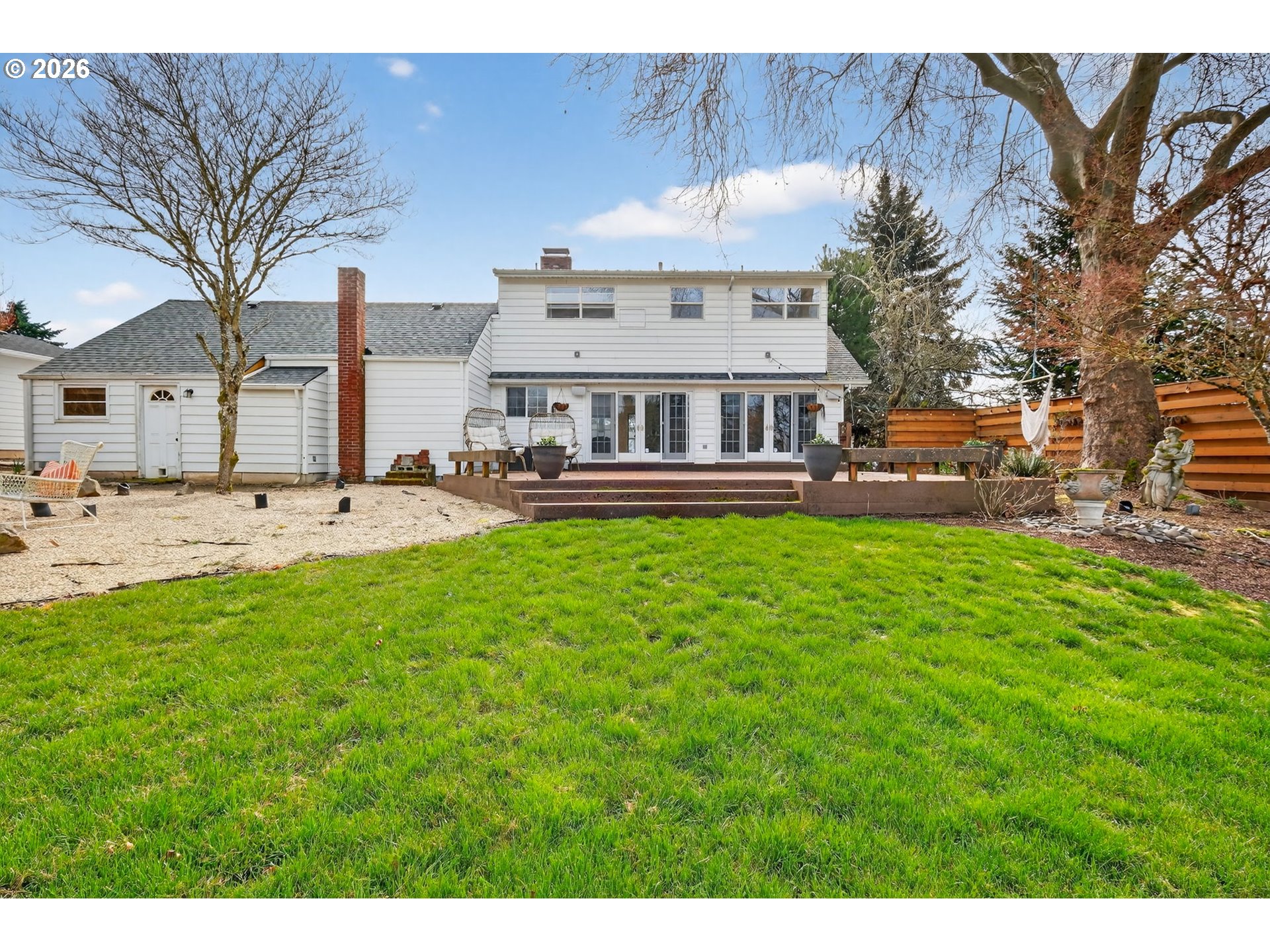 *OPEN SAT & SUN MARCH 7TH & 8TH FROM 2-4 PM* Beautifully updated, light-filled Cape Cod farmhouse with modern open floor plan on a serene .55-acre lot. Covered front porch opens to tiled foyer with wooden staircase and decorative wrought iron railing. Open living room features hardwood floors, large picture window, fireplace, electronic blinds, and surround sound. Formal dining room with hardwood floors, wall of windows, and double sliders to expansive deck and backyard. Adjacent den/bar with built-ins. Main-level bath remodeled with heated tile floors, soaking tub, chevron tile walls, and linen closet. Kitchen remodeled with Quartz counters, white subway backsplash, heated tile floors, stainless steel appliances, and wall of storage with built-in pantry/laundry pull-outs. Spiral staircase leads to upper-level with new carpet. Primary bedroom with ample walk-in closet and built-ins; two additional bedrooms plus lofted office nook upstairs. Hall bath remodeled with tile floors, shower, and dual vanity. Exceptional outdoor living: large deck with built-in seating, patio with fire pit, raised garden beds, powered studio/storage building, all overlooking yard. Attached two-car garage with epoxy floors and extra laundry. Upgrades include attic insulation, on-demand water heater, Vantage lighting, exterior landscape lighting, smart thermostat and garage doors, and new roof (2024). [Home Energy Score = 7. HES Report at https://rpt.greenbuildingregistry.com/hes/OR10240092]