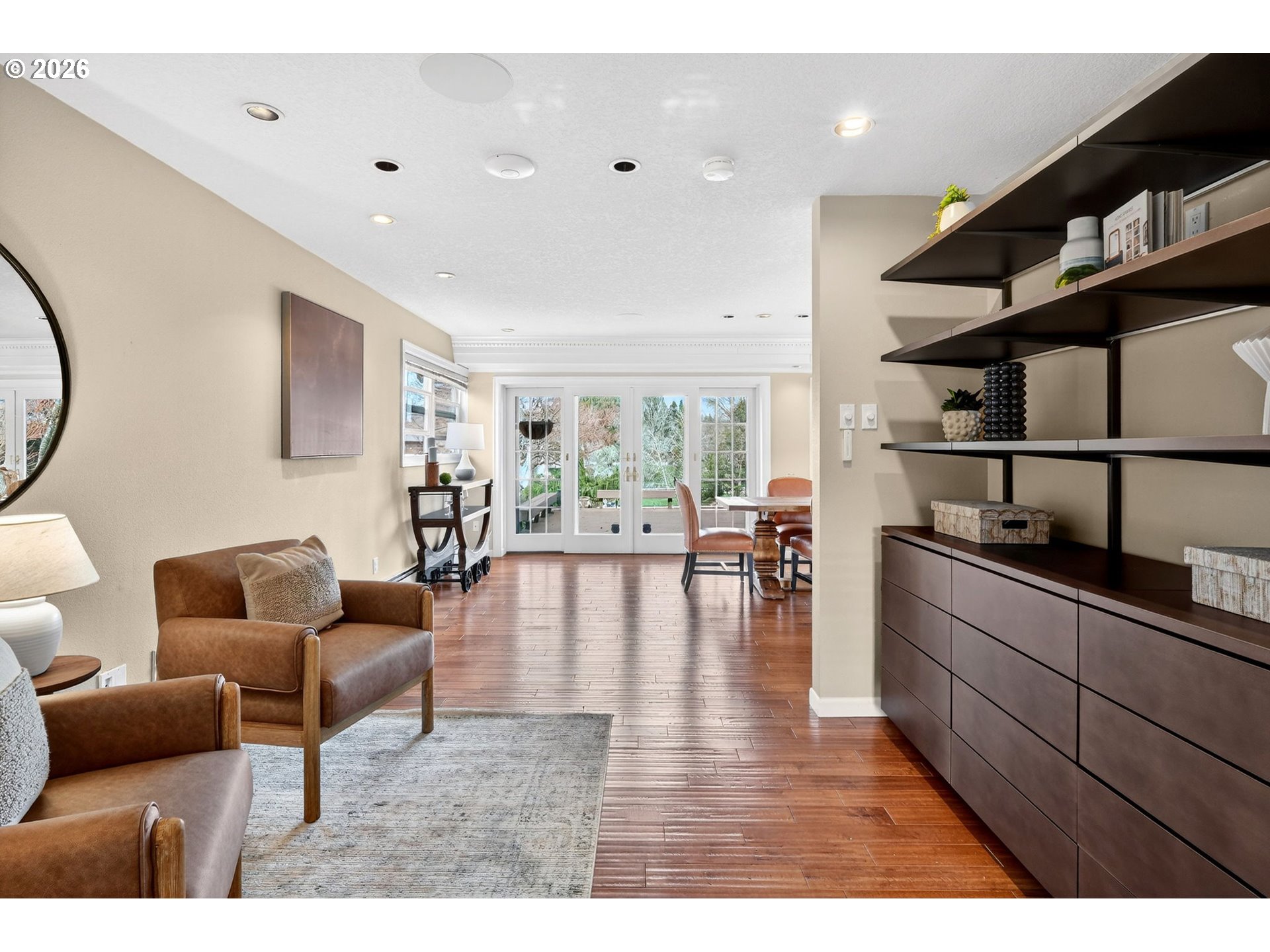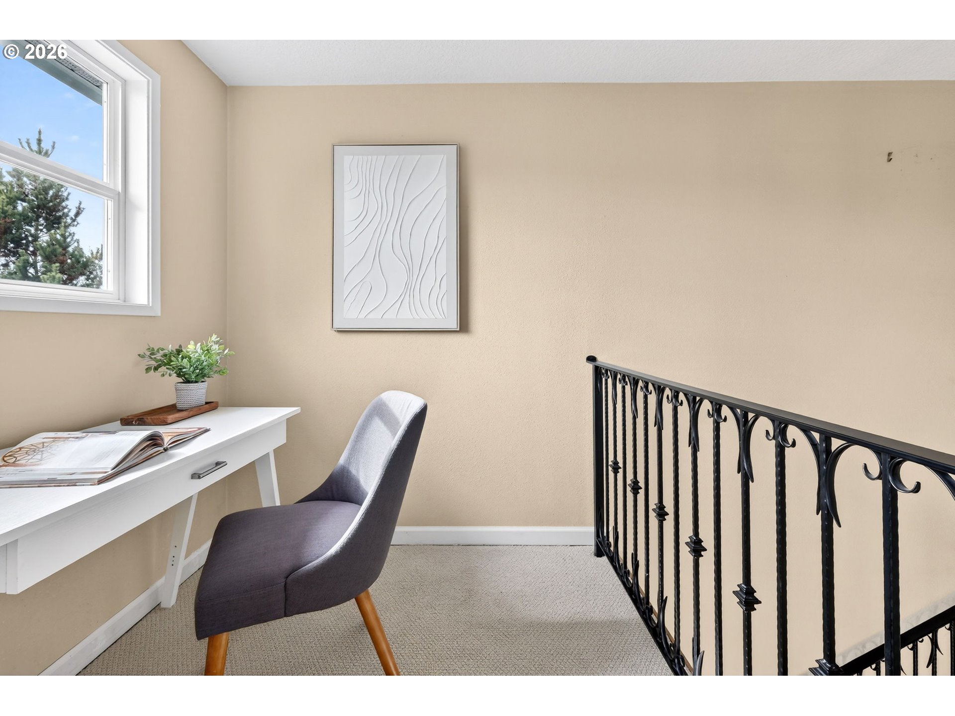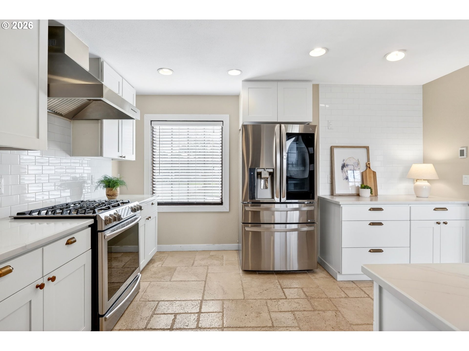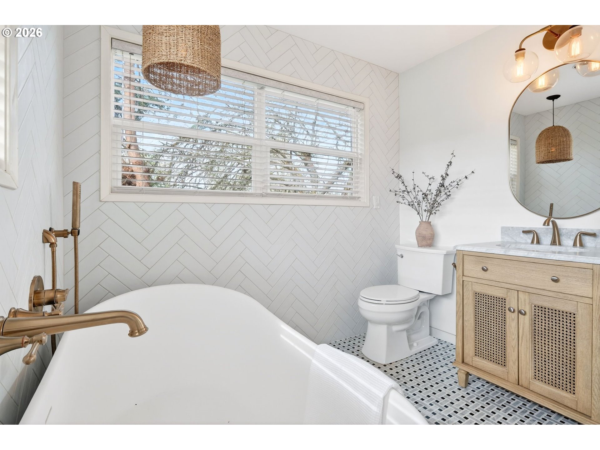 *OPEN SAT & SUN MARCH 7TH & 8TH FROM 2-4 PM* Beautifully updated, light-filled Cape Cod farmhouse with modern open floor plan on a serene .55-acre lot. Covered front porch opens to tiled foyer with wooden staircase and decorative wrought iron railing. Open living room features hardwood floors, large picture window, fireplace, electronic blinds, and surround sound. Formal dining room with hardwood floors, wall of windows, and double sliders to expansive deck and backyard. Adjacent den/bar with built-ins. Main-level bath remodeled with heated tile floors, soaking tub, chevron tile walls, and linen closet. Kitchen remodeled with Quartz counters, white subway backsplash, heated tile floors, stainless steel appliances, and wall of storage with built-in pantry/laundry pull-outs. Spiral staircase leads to upper-level with new carpet. Primary bedroom with ample walk-in closet and built-ins; two additional bedrooms plus lofted office nook upstairs. Hall bath remodeled with tile floors, shower, and dual vanity. Exceptional outdoor living: large deck with built-in seating, patio with fire pit, raised garden beds, powered studio/storage building, all overlooking yard. Attached two-car garage with epoxy floors and extra laundry. Upgrades include attic insulation, on-demand water heater, Vantage lighting, exterior landscape lighting, smart thermostat and garage doors, and new roof (2024). [Home Energy Score = 7. HES Report at https://rpt.greenbuildingregistry.com/hes/OR10240092]